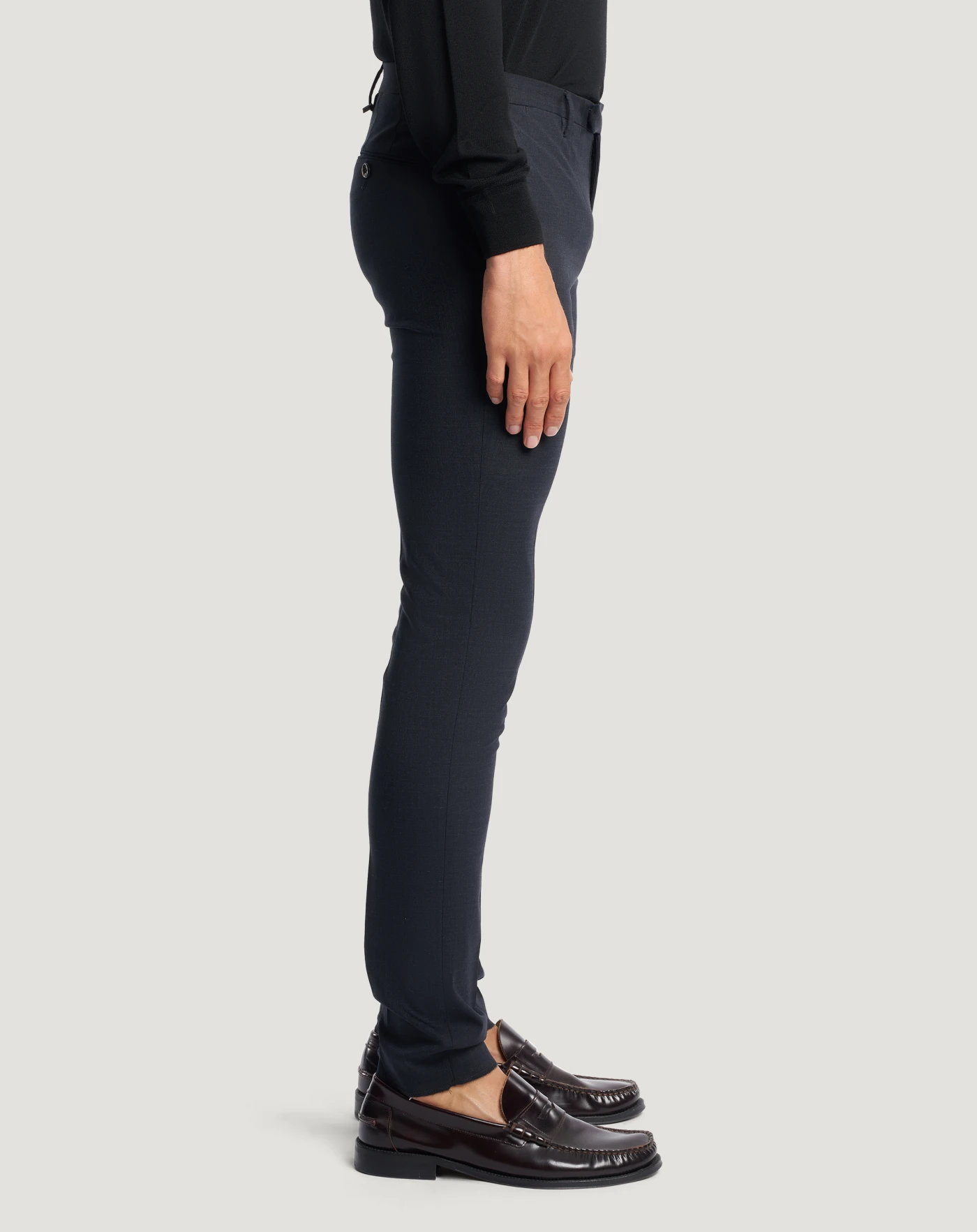 Trousers in lightweight, advanced technology stretch wool that is washable and durable.The garment is delivered unstitched, so that it can be finished to suit your length and style through simple tailoring.With a skinny fit and smooth front they are designed for dynamic, everyday elegance.