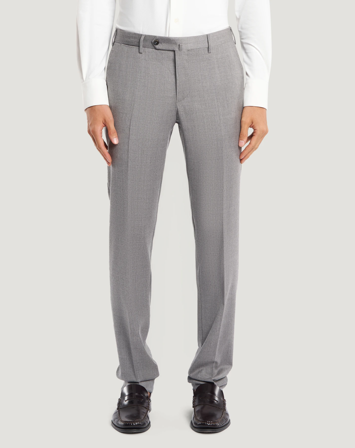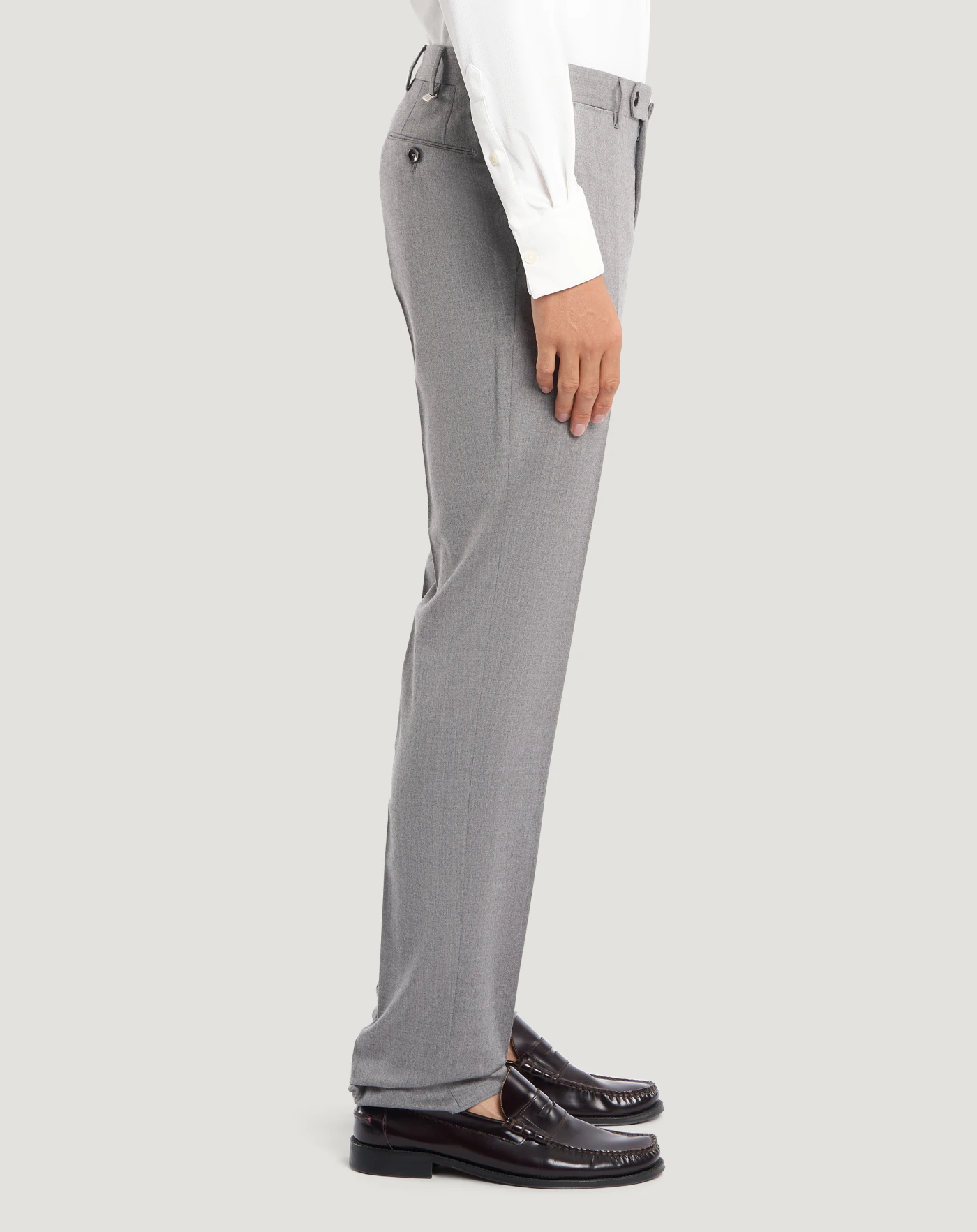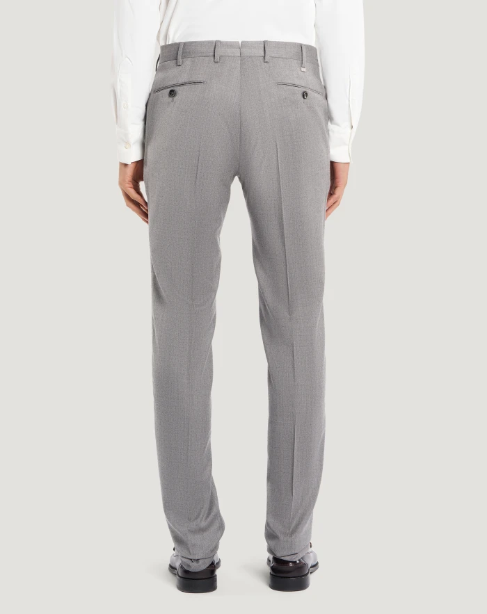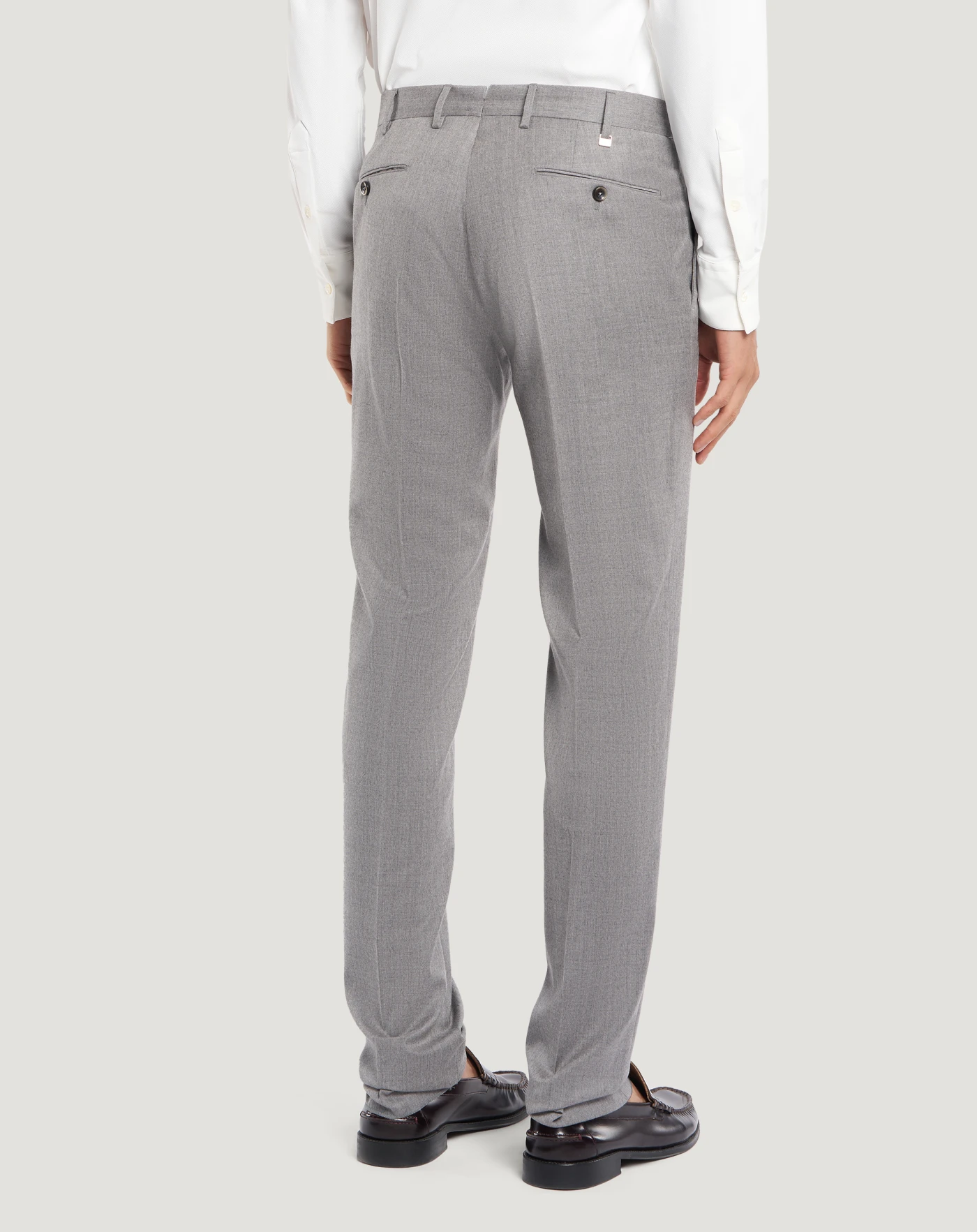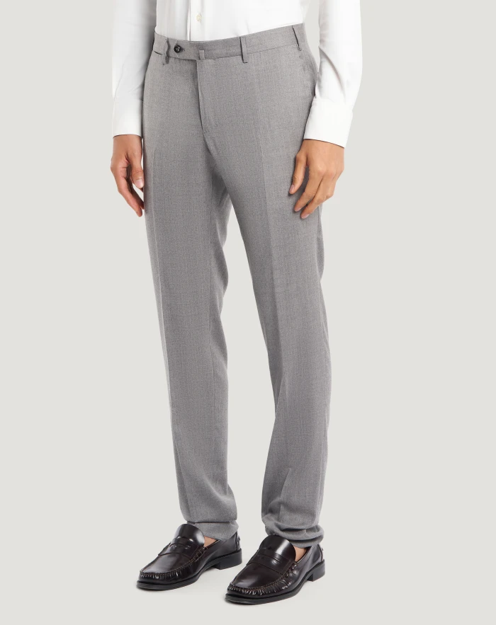 Flannel trousers in lightweight, Super 110 wool with a soft and refined hand. Added stretchiness makes it comfortable and flexible, perfect for tailored garments with a formal yet contemporary style.The garment is delivered unstitched, so that it can be finished to suit your length and style through simple tailoring.In grey-light blue for refined elegance.