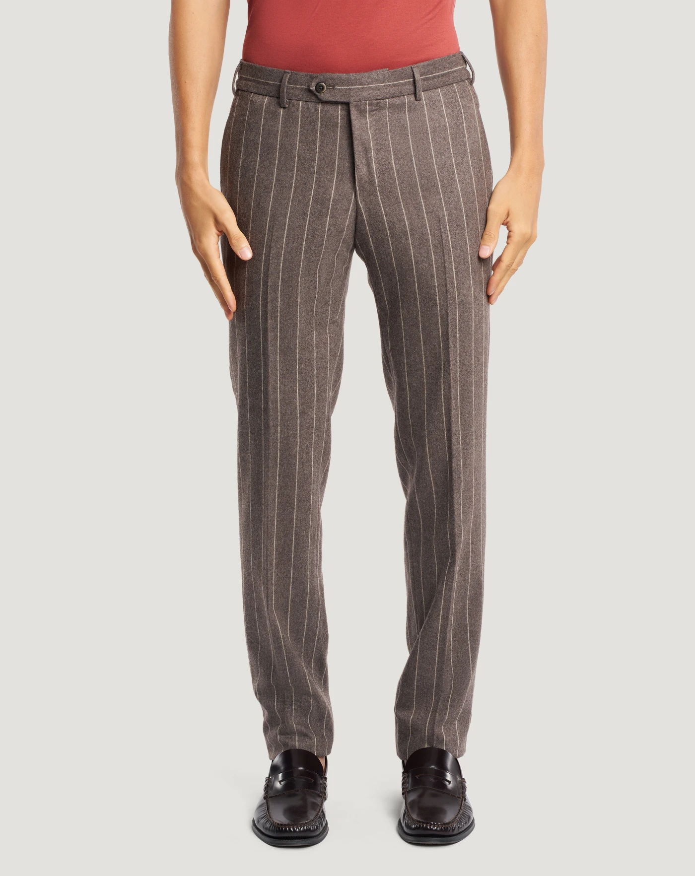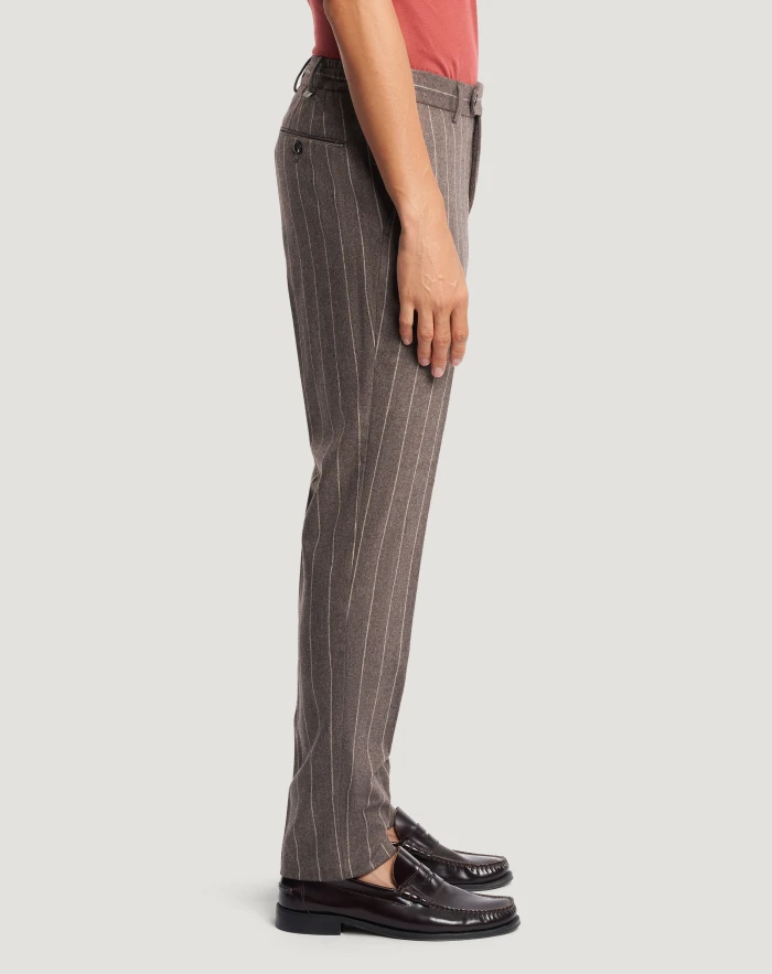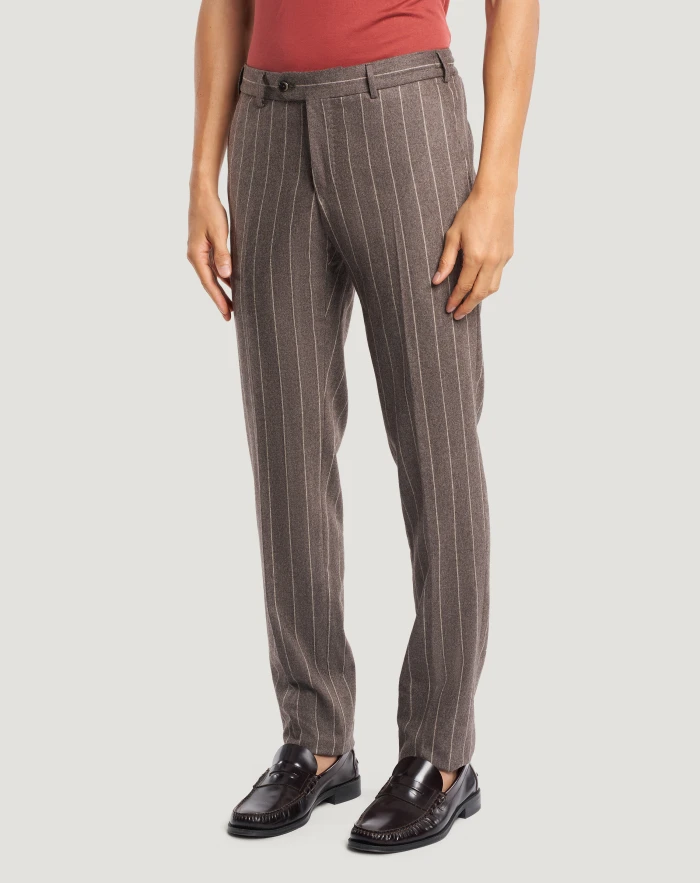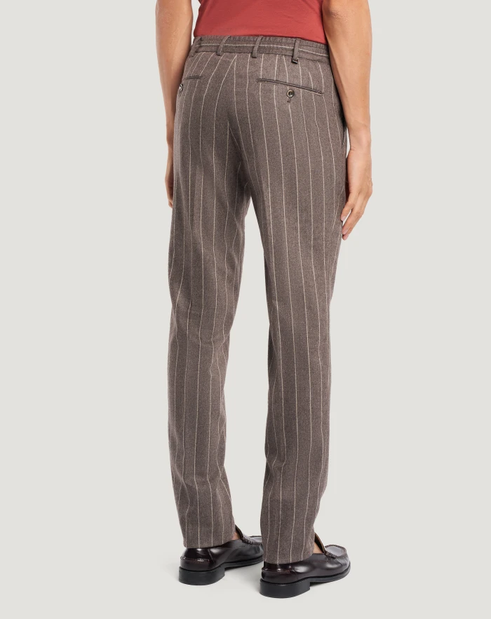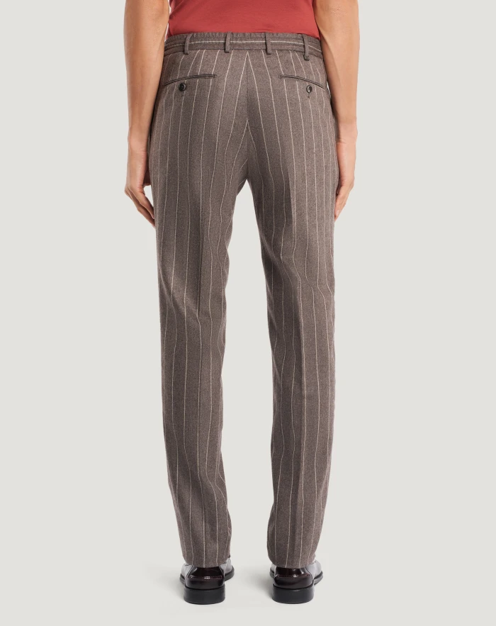 Trousers in wool and cashmere flannel, a fine, comfortable fabric with a pattern that adds a graphic touch to your style.The garment is delivered unstitched, so that it can be finished to suit your length and style through simple tailoring.With a smooth front and elasticated waist at the back, for a contemporary utility design.
