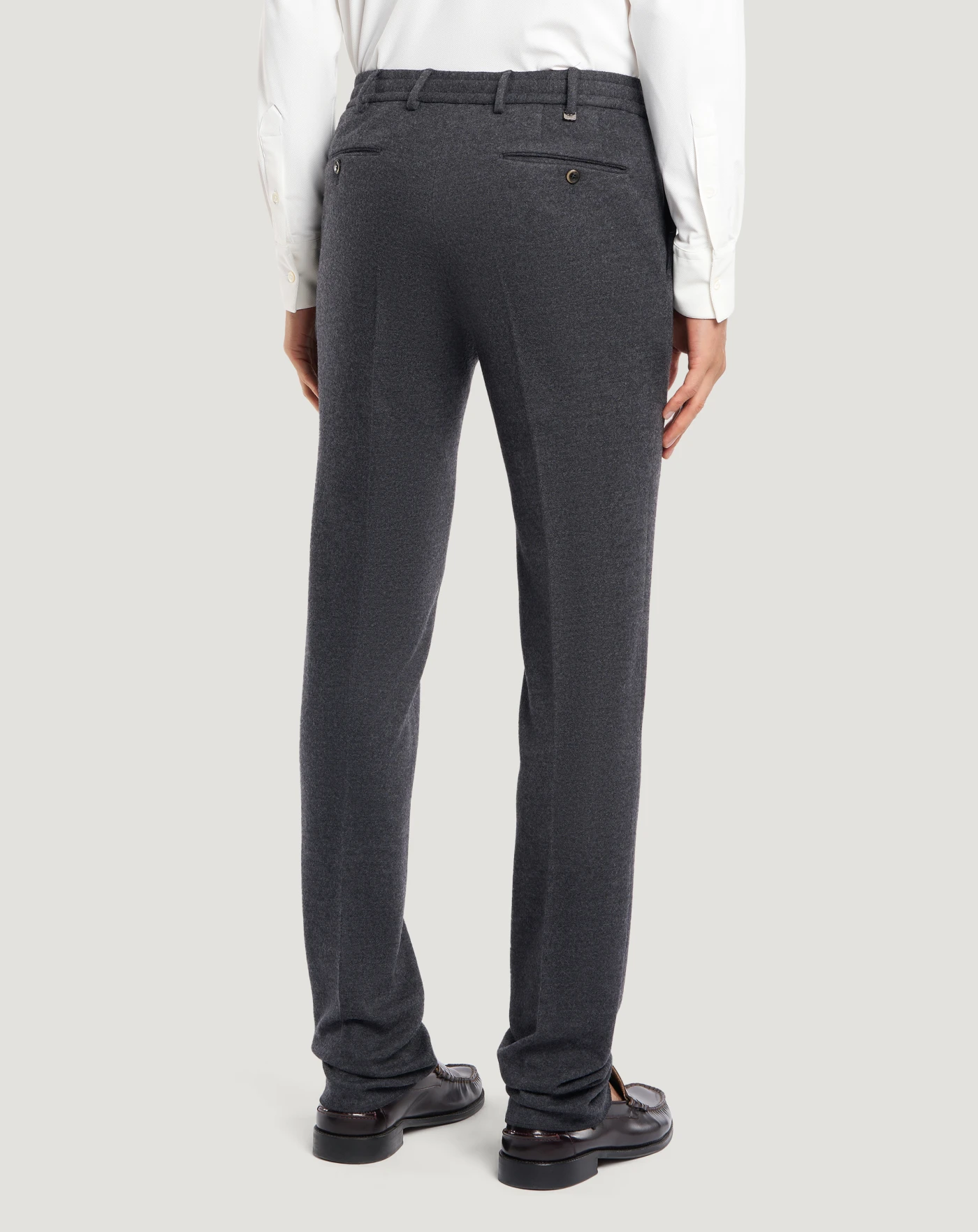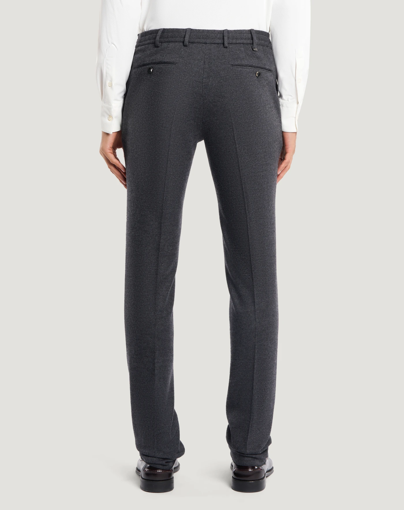 Trousers in deluxe wool jersey with a soft, enveloping feel that guarantees elegance without constraints.The garment is delivered unstitched, so that it can be finished to suit your length and style through simple tailoring. With a smooth front and elasticated drawstring waist, they combine practicality and style.