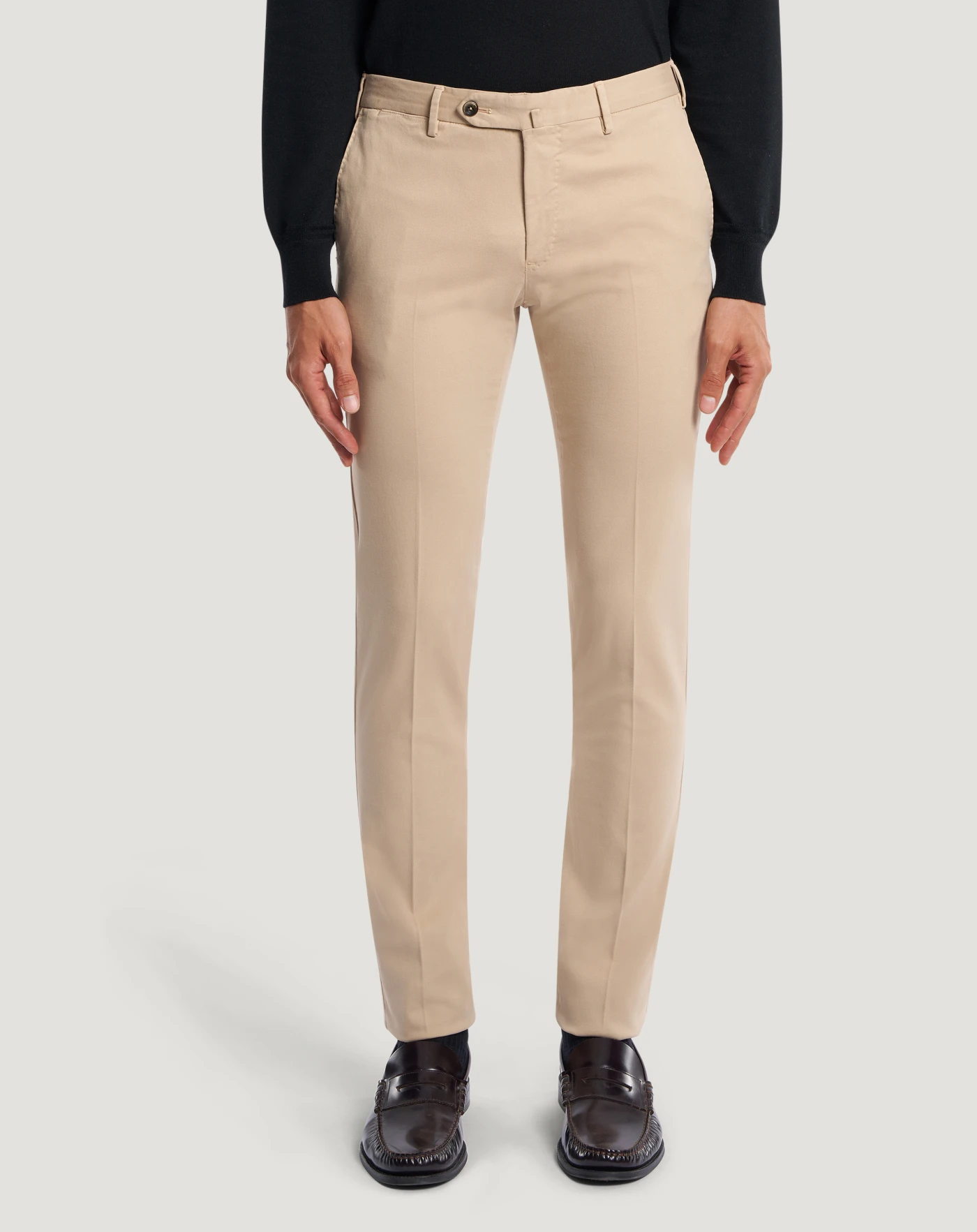 Trousers in stretch cotton and cashmere tricotine, a fine fabric that is pleasant to the touch and combines durability and elasticity.The garment is delivered unstitched, so that it can be finished to suit your length and style by simple tailoring.Choose the safari variant to give formal and everyday looks an original touch.