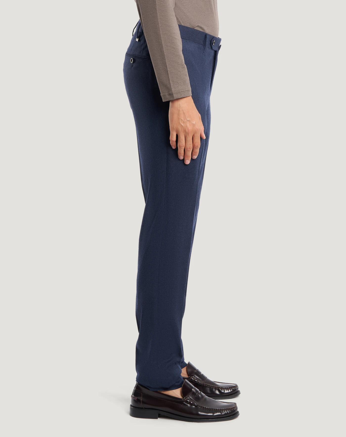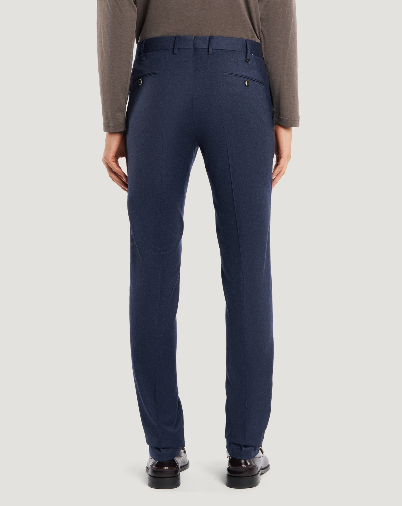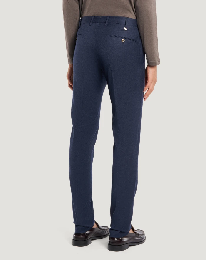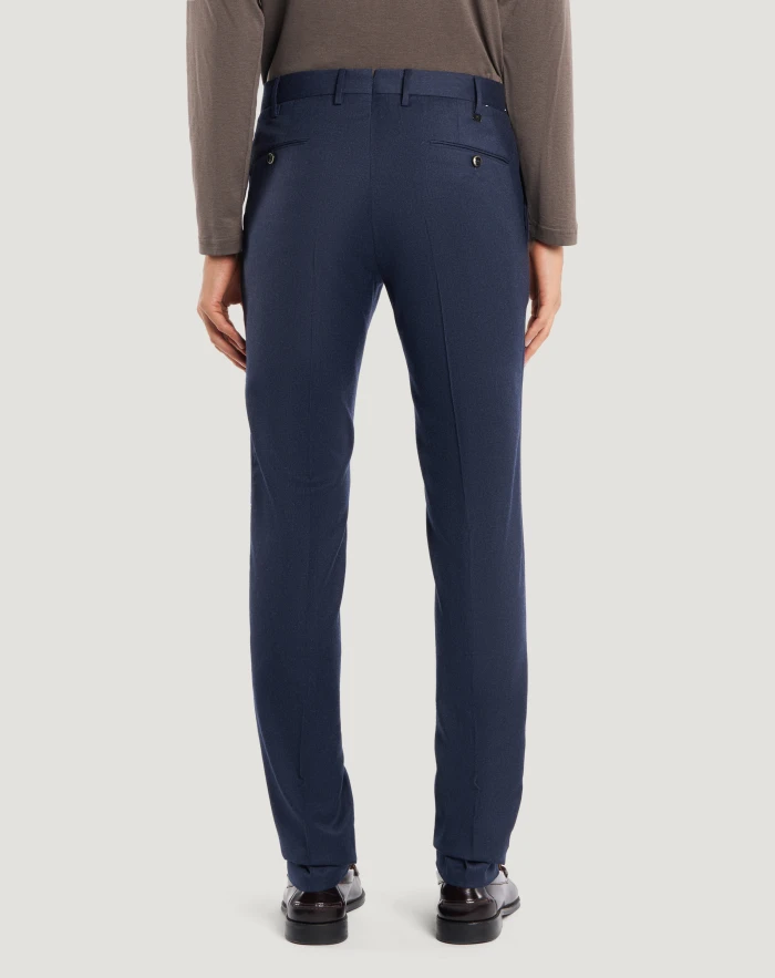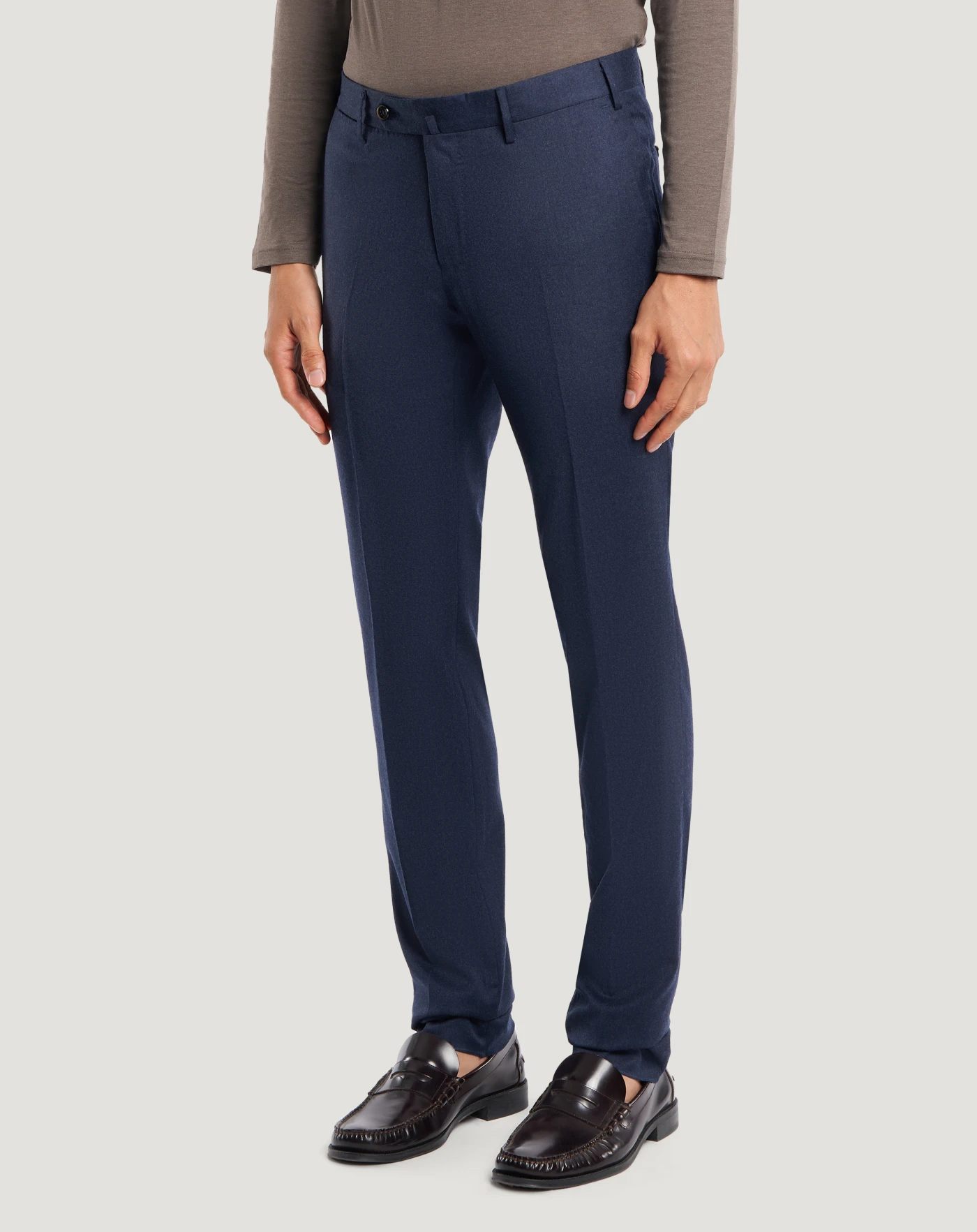 Flannel trousers in lightweight, Super 110 wool with a soft and refined hand. Added stretchiness makes it comfortable and flexible, perfect for tailored garments with a formal yet contemporary style.The garment is delivered unstitched, so that it can be finished to suit your length and style through simple tailoring.Choose the blue variant for versatile flair.