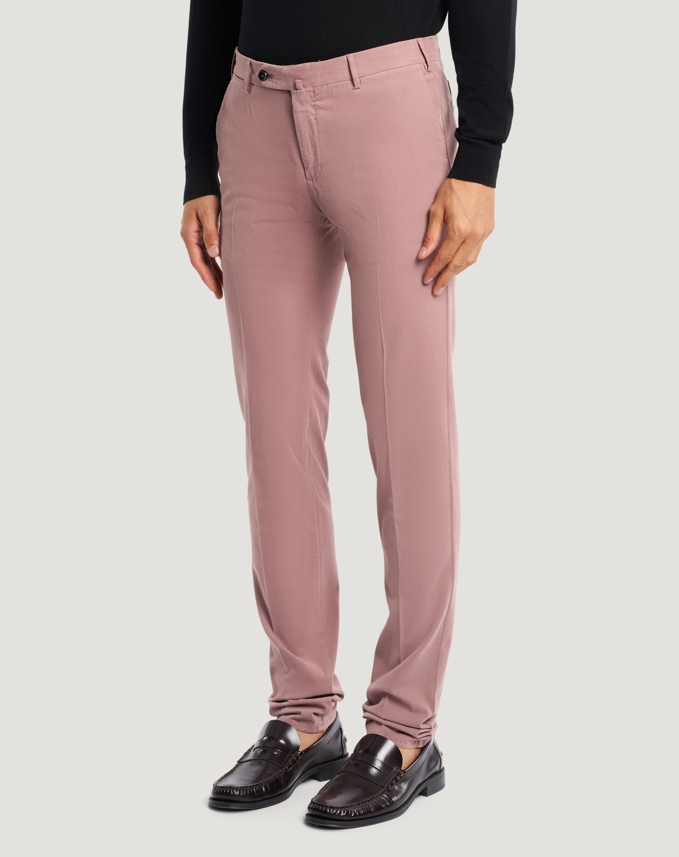 Trousers in stretch gabardine with a soft, enveloping feel. The smooth, compact surface is combined with light elasticity to offer comfort without sacrificing structure. The garment is delivered unstitched, so that it can be finished to suit your length and style through simple tailoring. With a super slim, simple fit and pressed crease, they are perfect for contemporary elegance.
