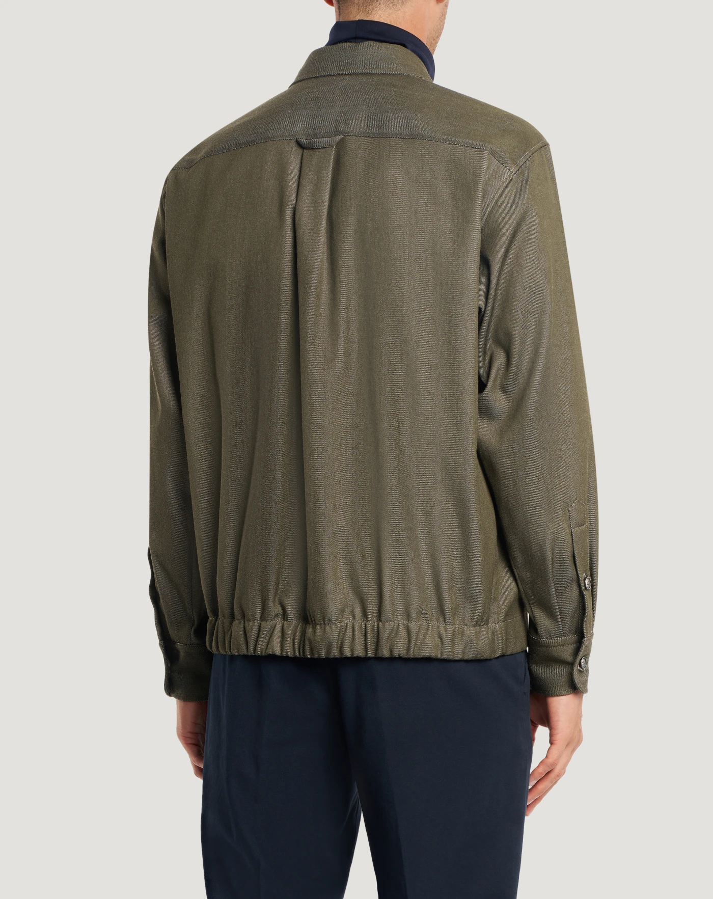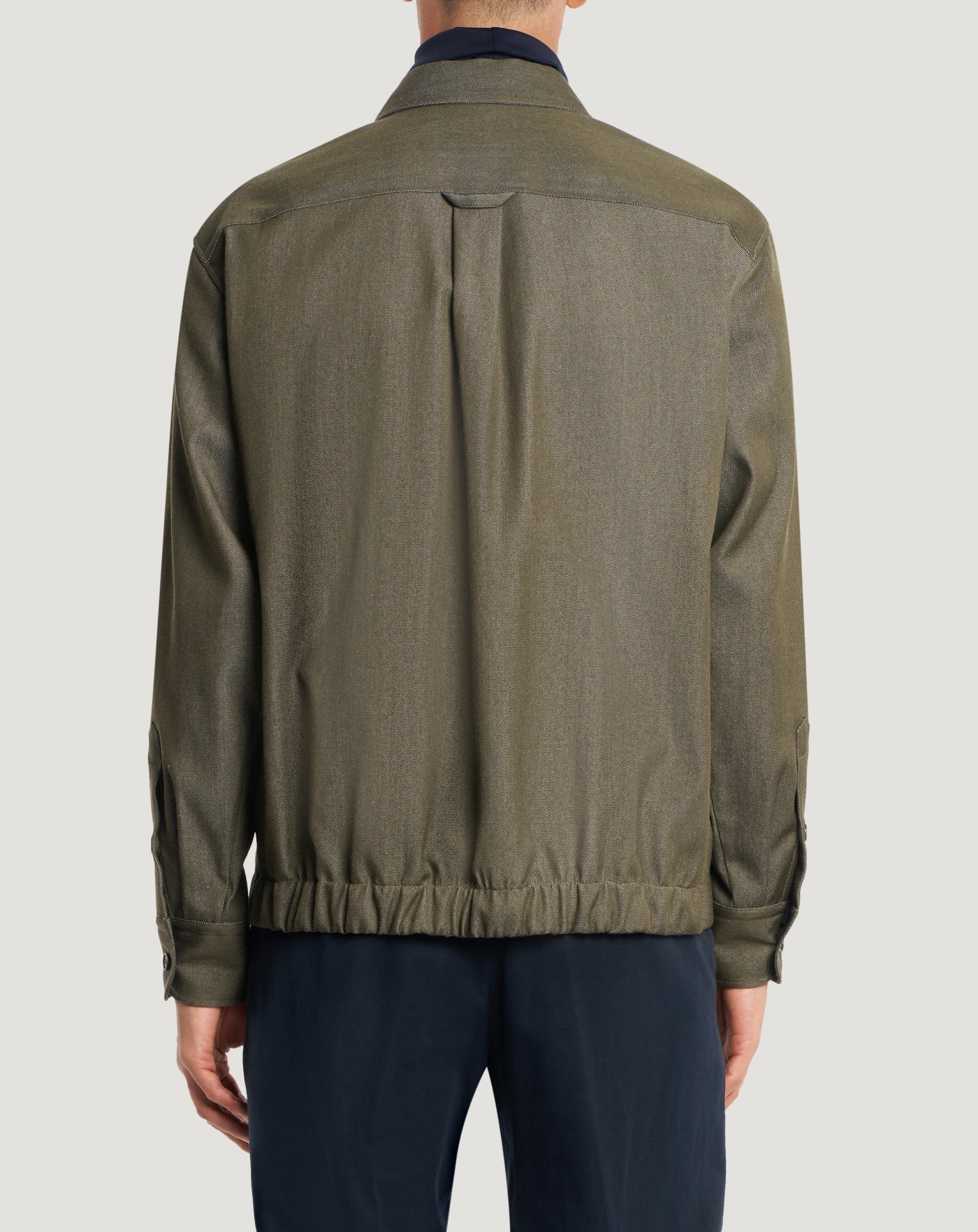 Jacket in wool and cotton, a durable and contemporary denim-effect fabric.Relaxed fit with elasticated hem at the back, for a contemporary utility design. Wear it with matching trousers.