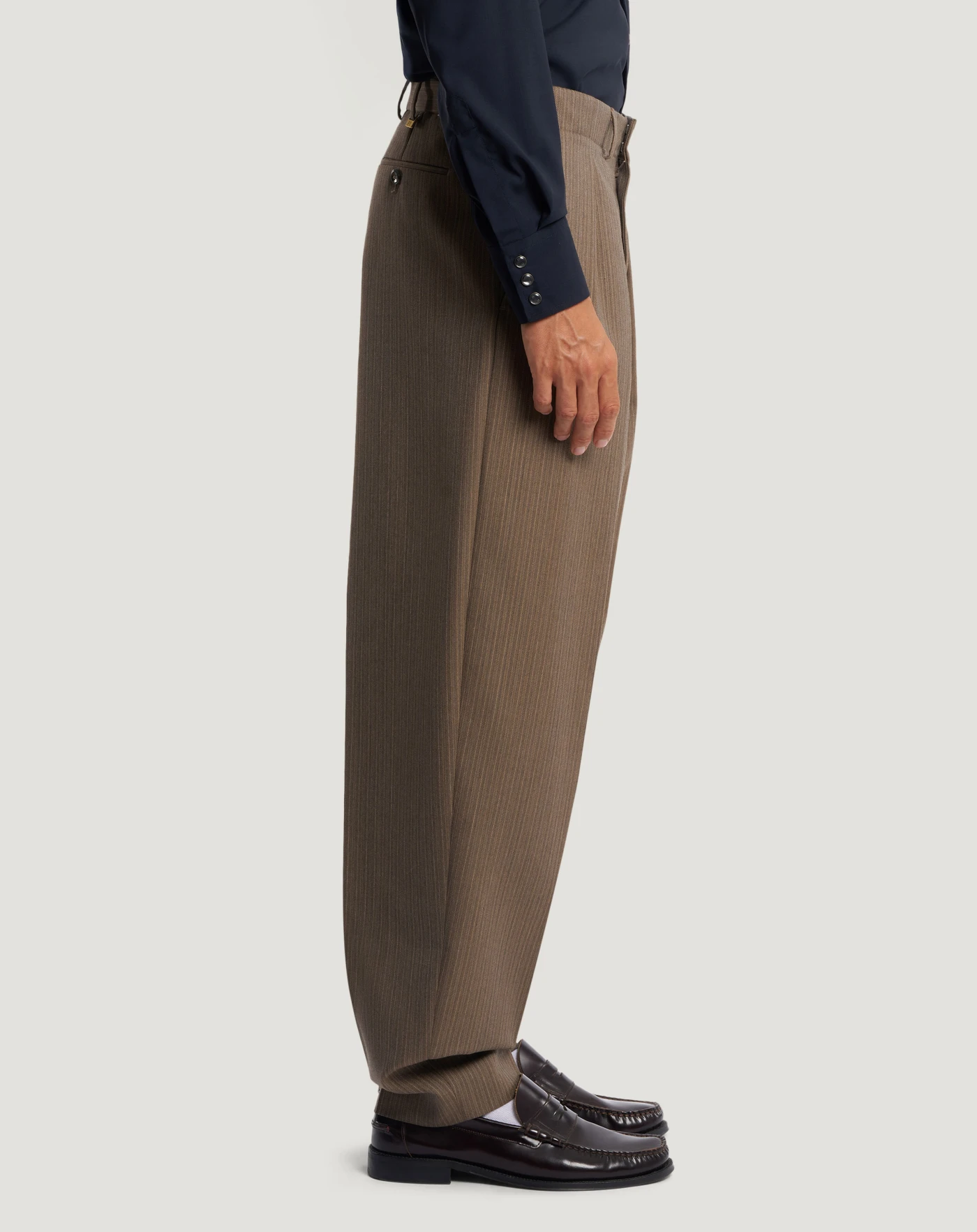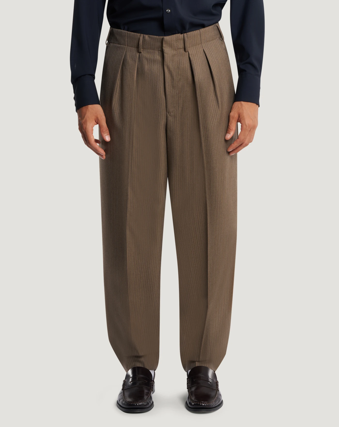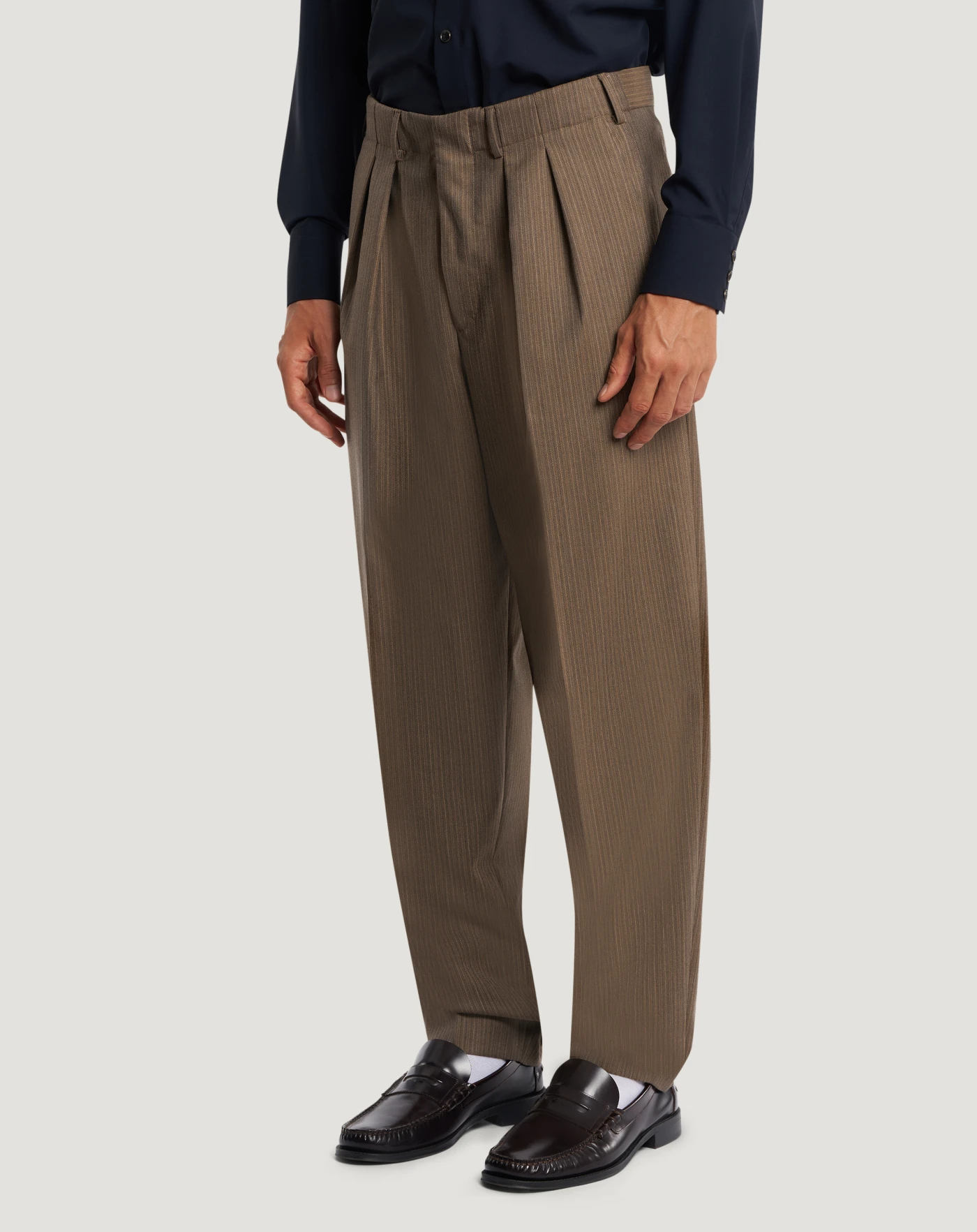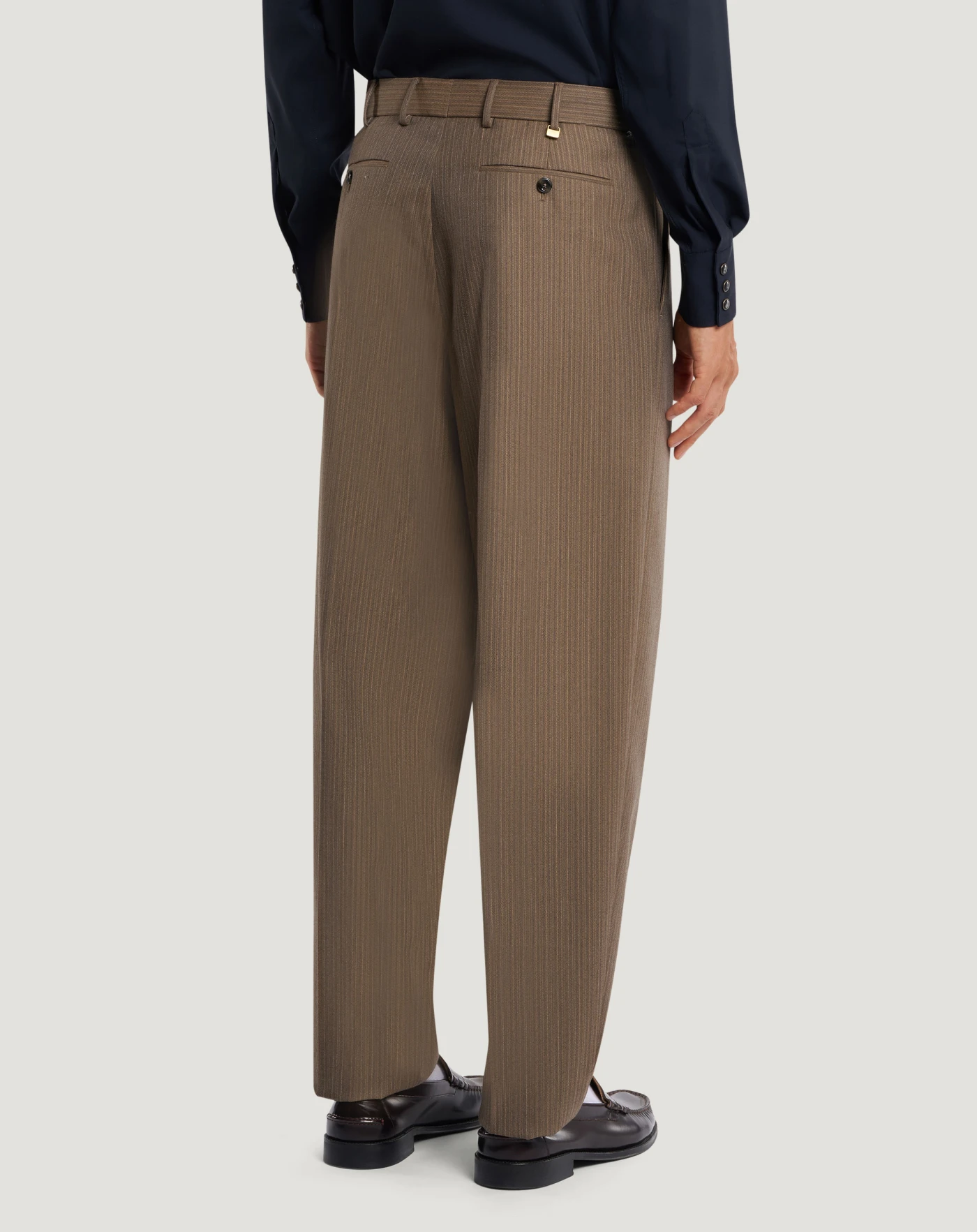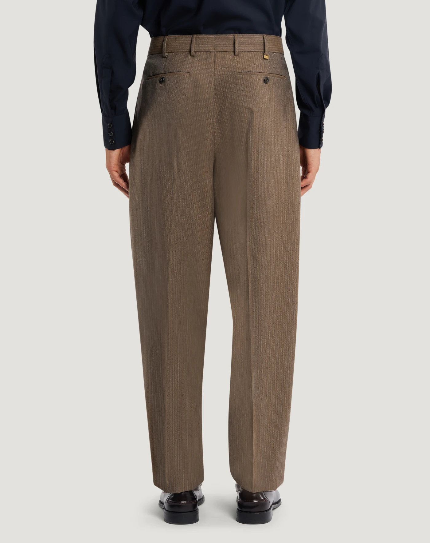 Pure wool trousers with a micro chevron pattern, for a refined look.With a wide fit, double pleat at the front and a regular waist, their contemporary design is perfect for a tone-on-tone look.