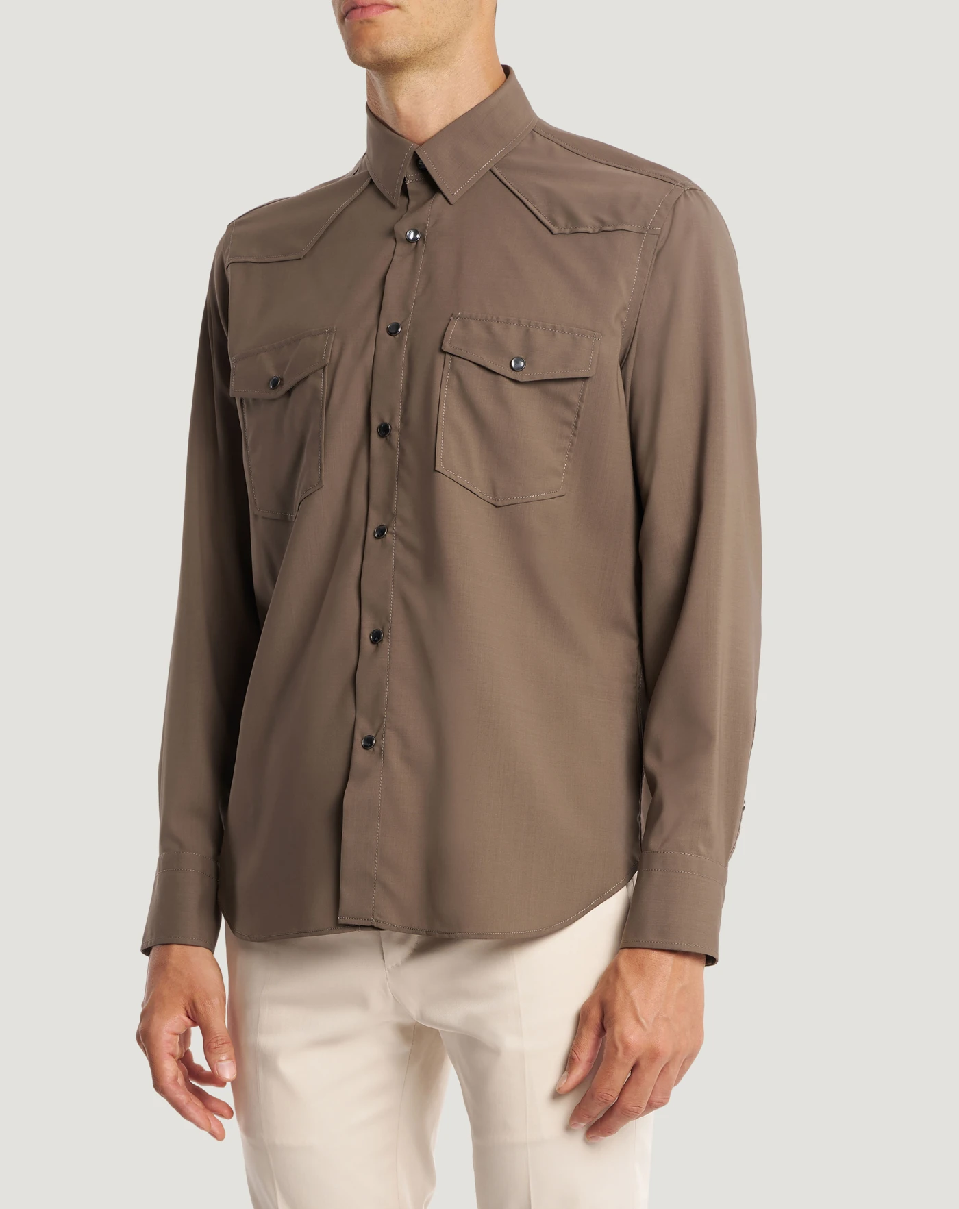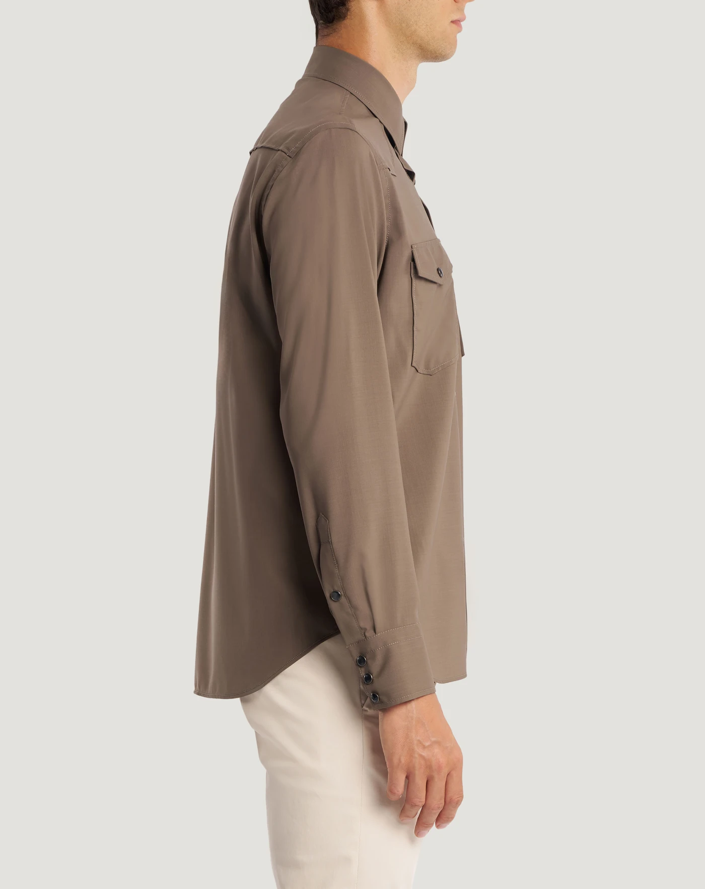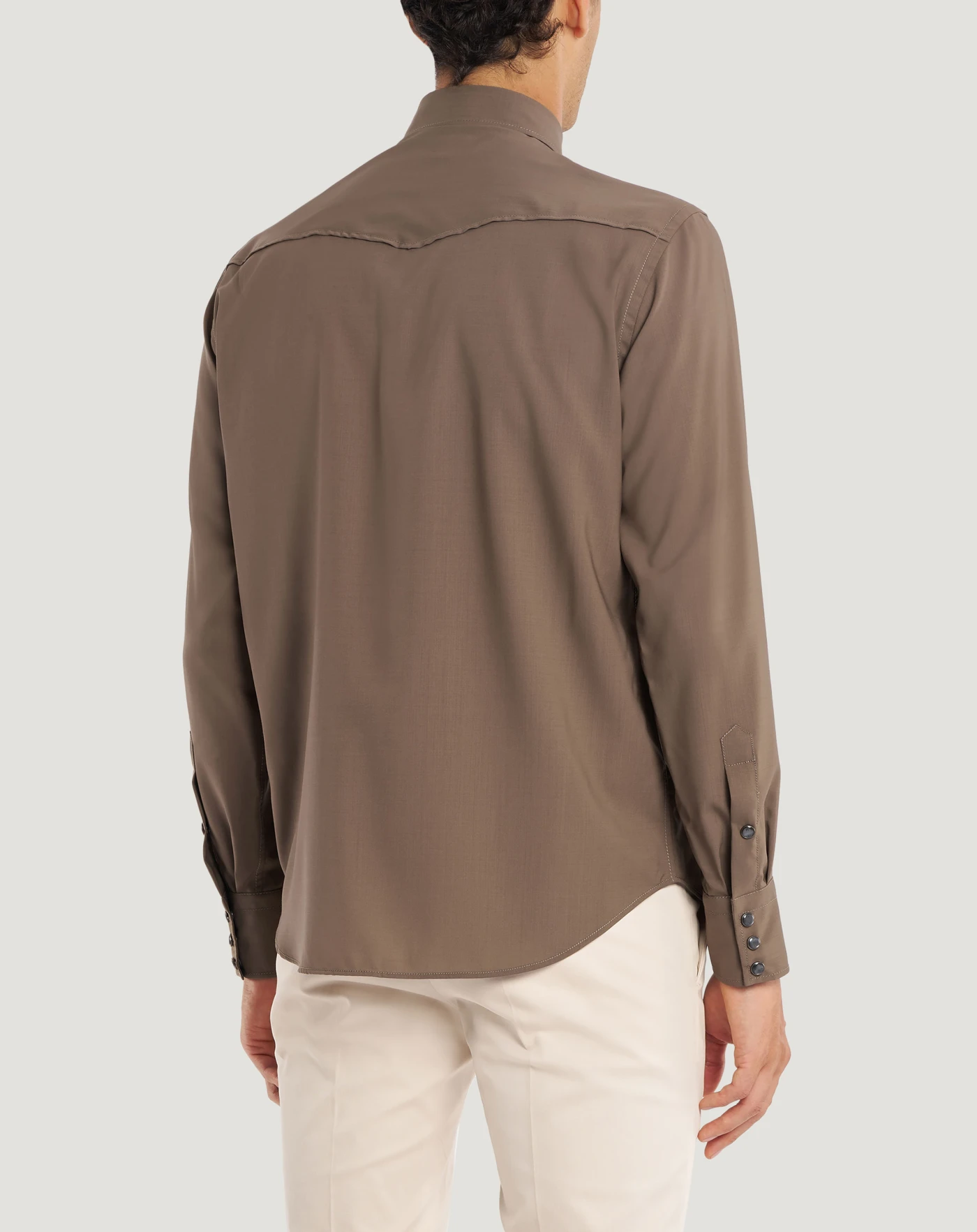 Shirt in deluxe super-light pure wool, an elegant and refined fabric.With a regular fit and an elegantly refined and relaxed design. The hazelnut variant is easy to pair.