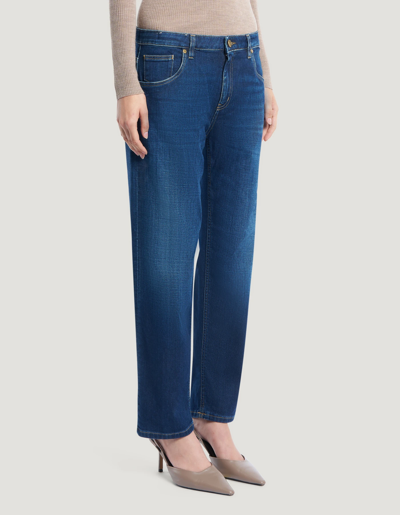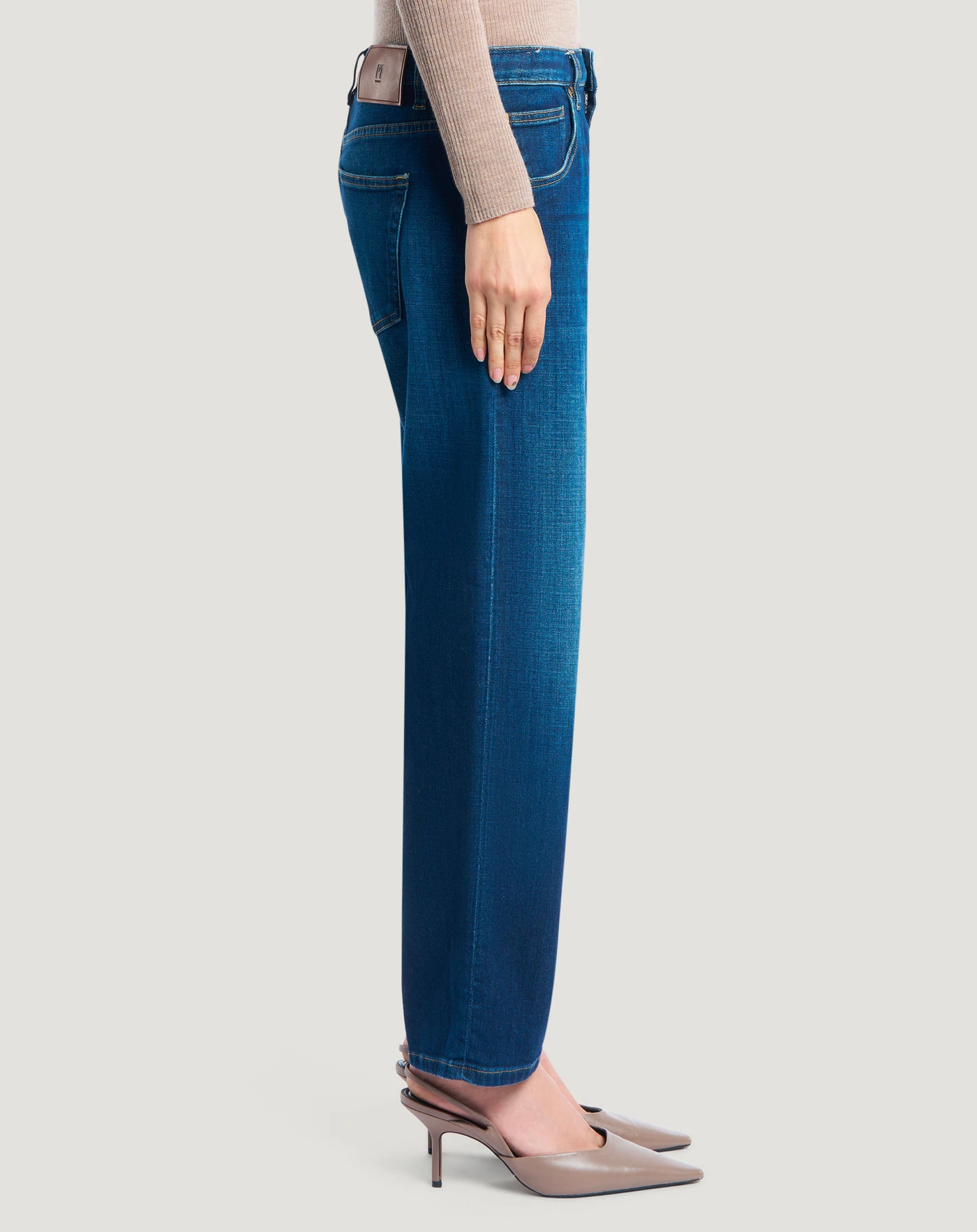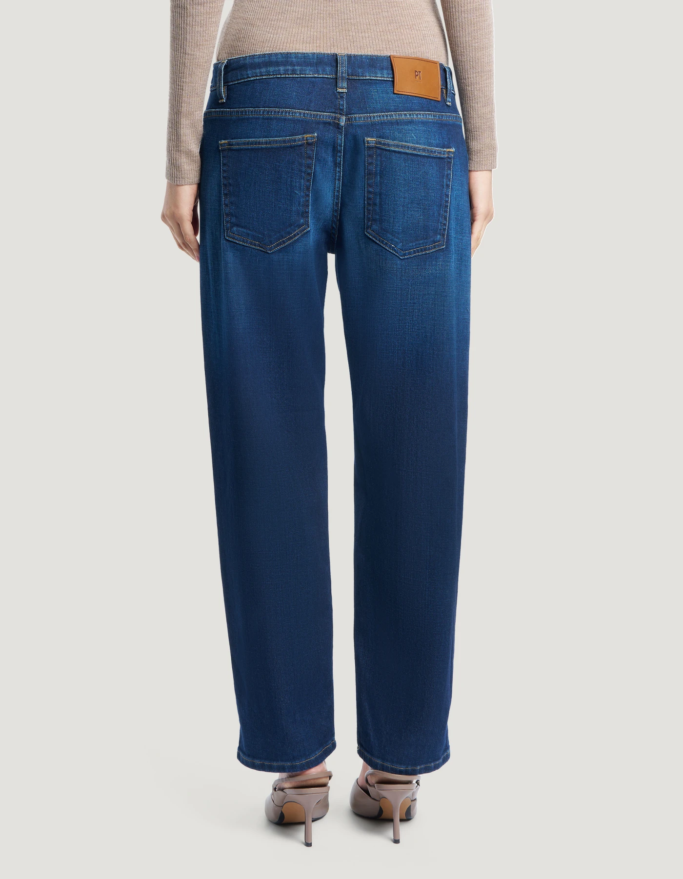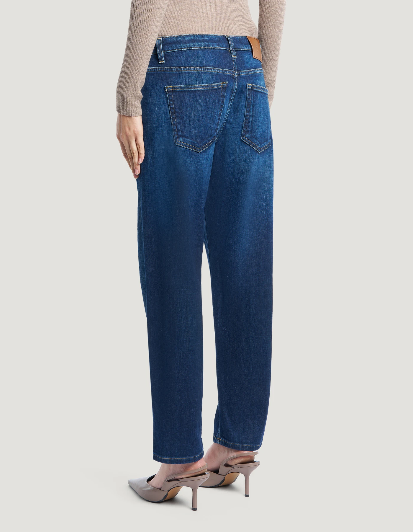 Jeans in denim di cotone stretch una tela morbida, leggera (10 once) e piacevole da indossare, con lavaggio caratterizzato da baffi e schiariture localizzate evidenti.Con vita regular e mom carrot fit, daranno personalità ai tuoi look off duty.