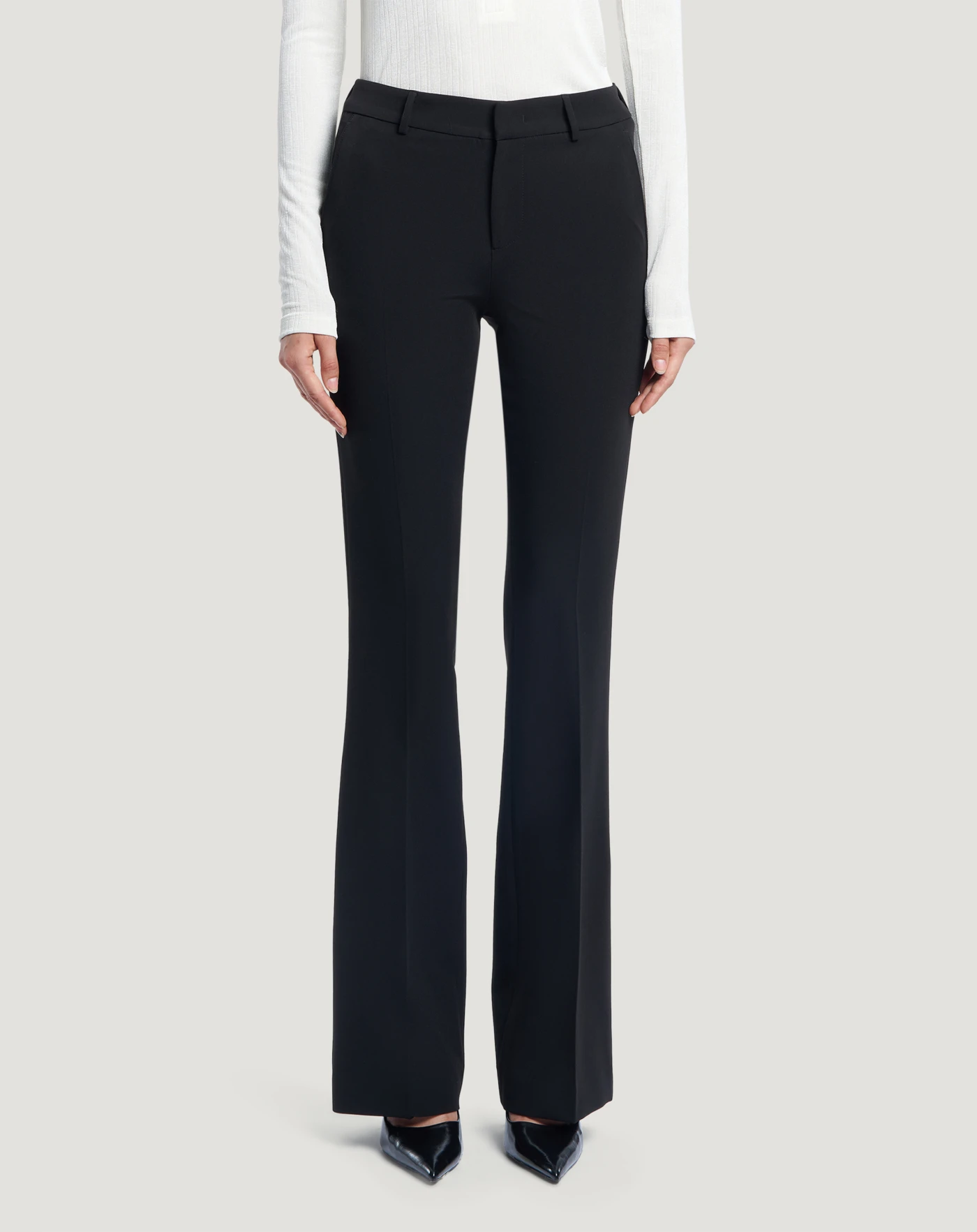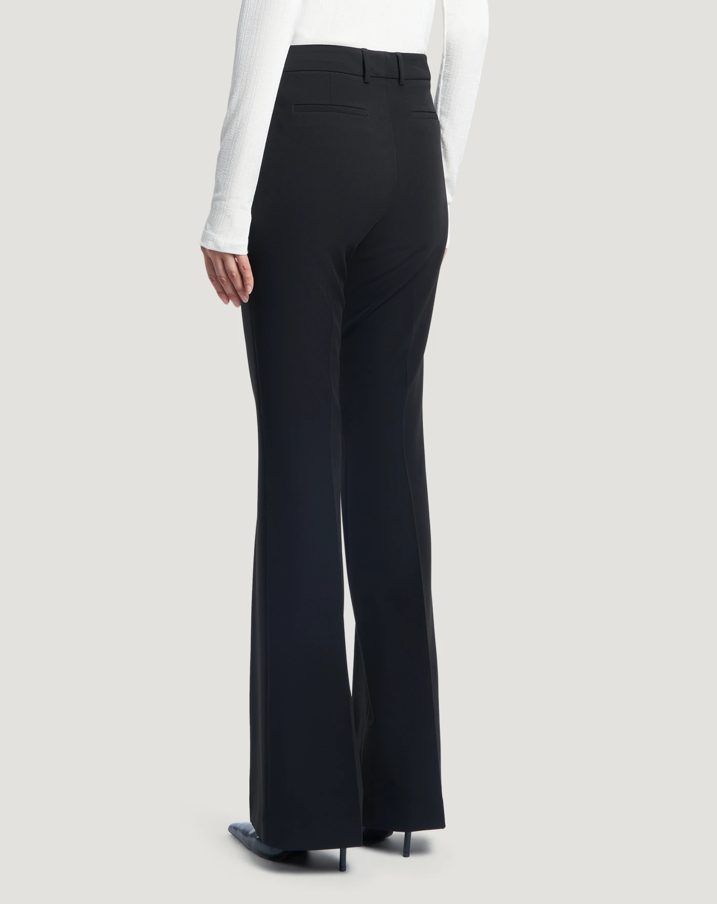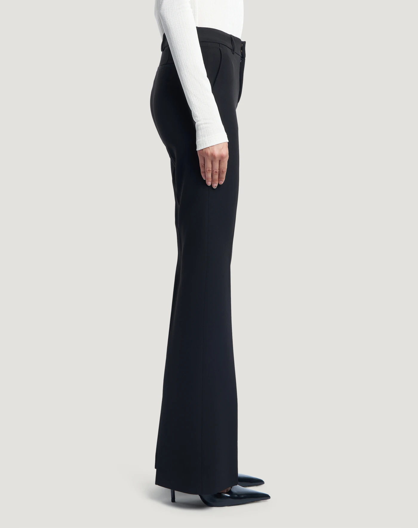 Pantaloni in tricotina stretch fluida, un tessuto molto morbido e piacevole al tatto, che unisce resistenza ed elasticità. Hanno linea slim fit, bacino pulito e piega stirata. Scegli la variante in nero per completare lo stile con una base versatile e raffinata.