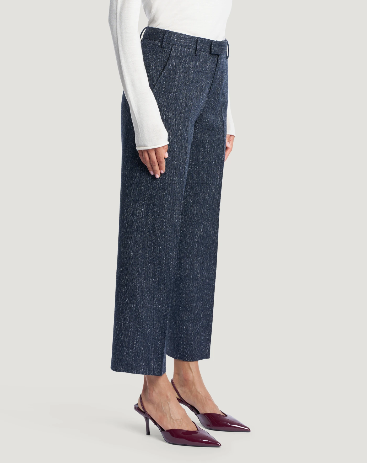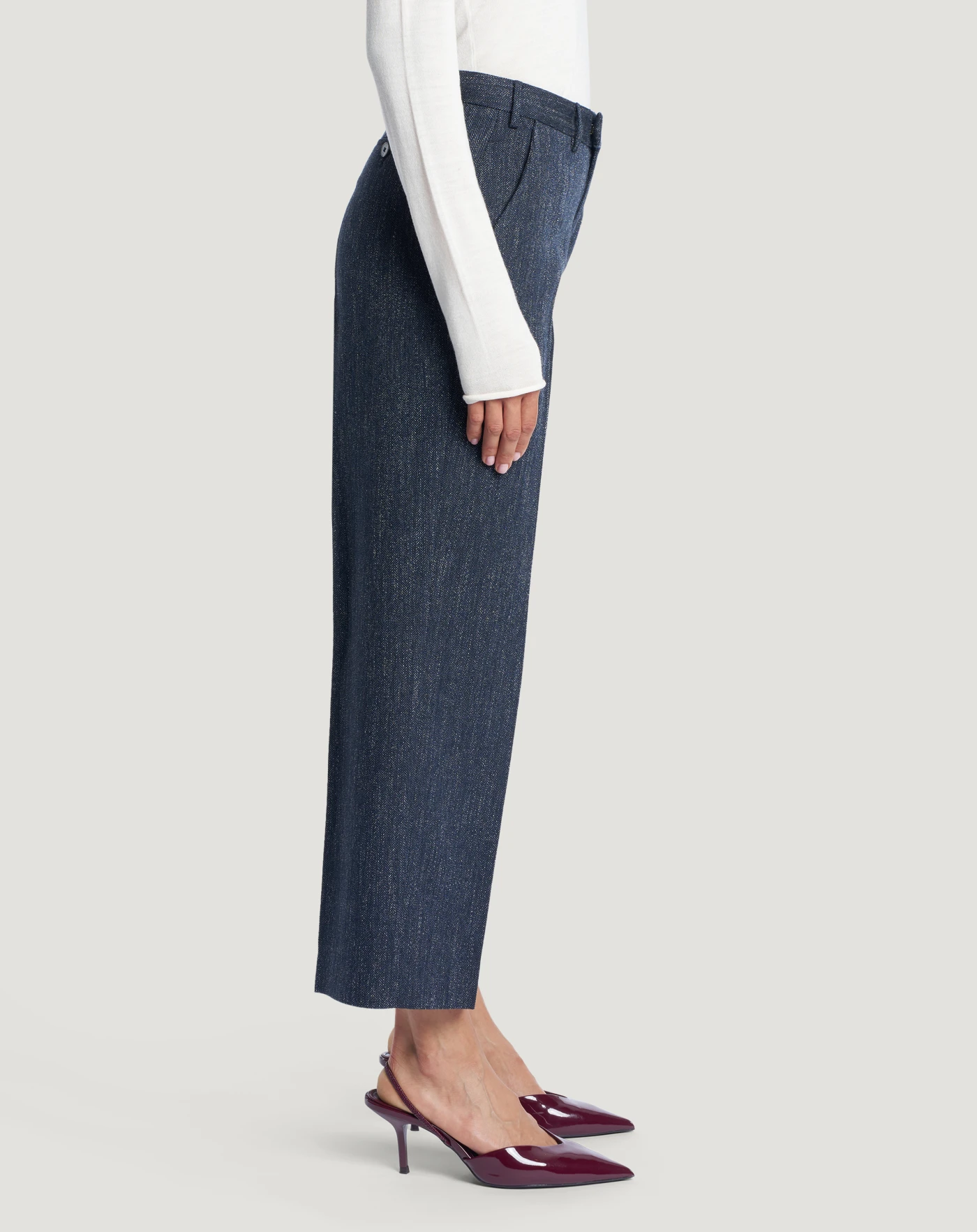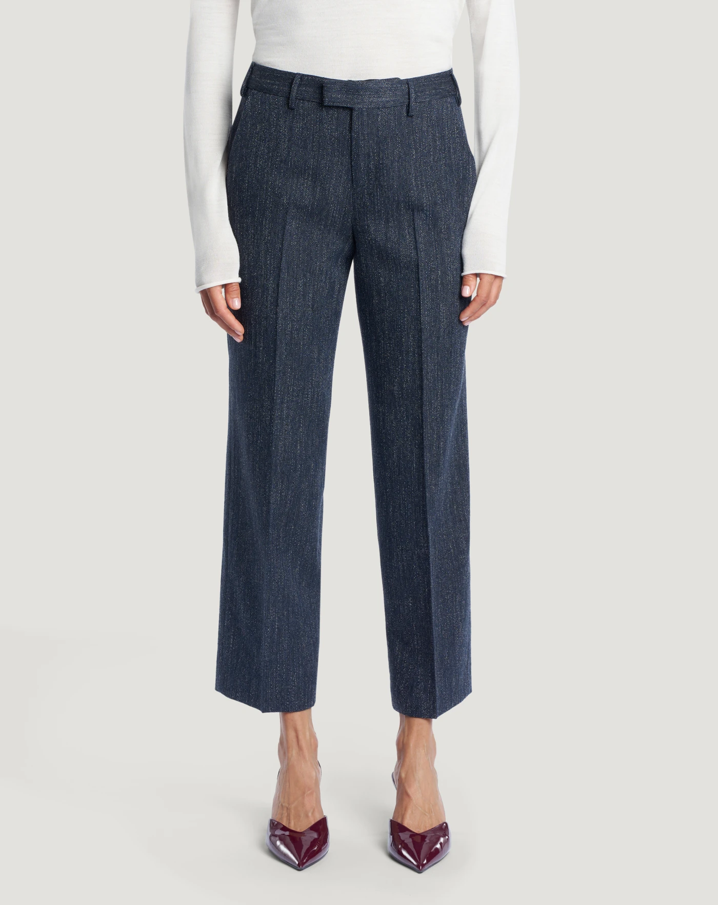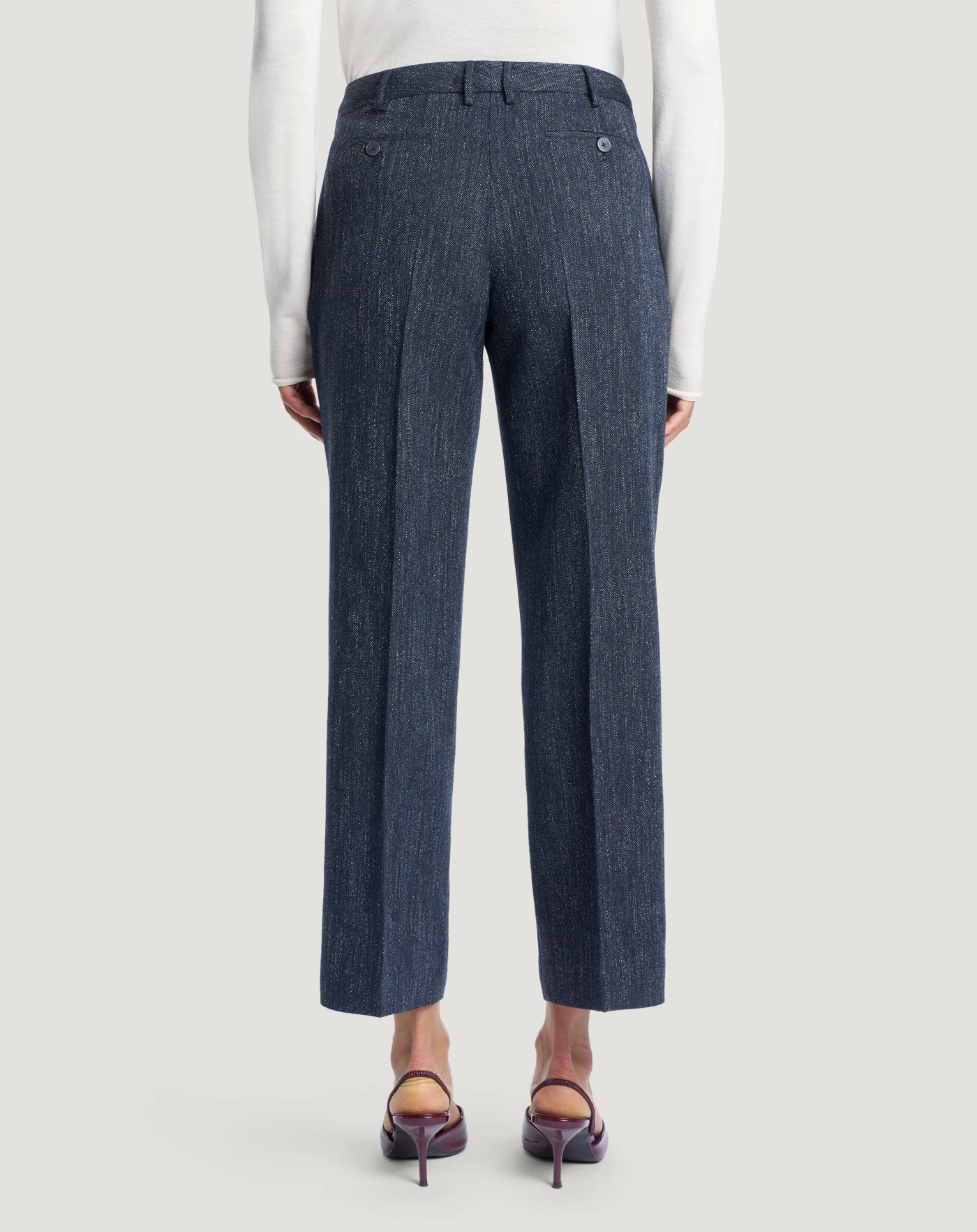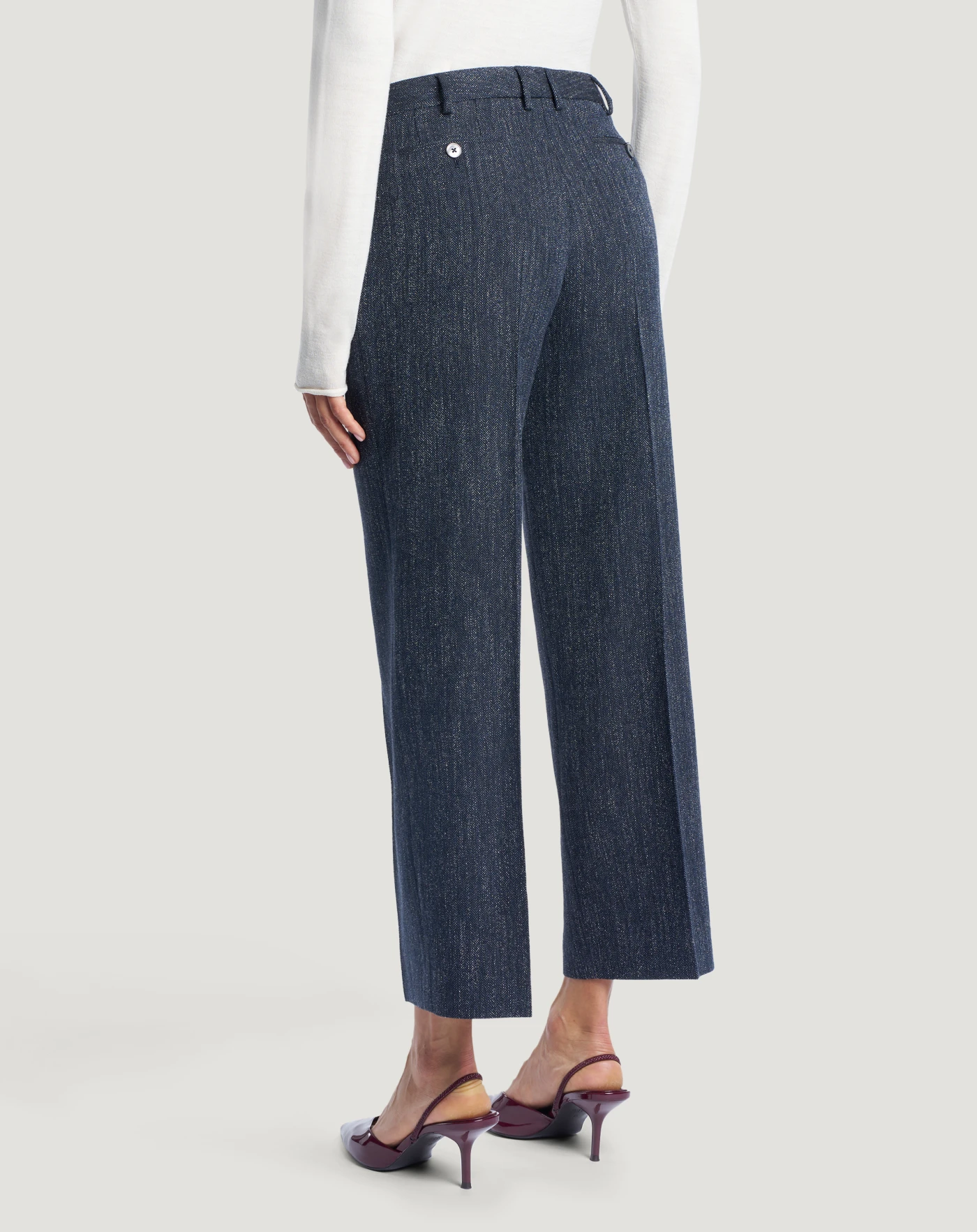 Pantaloni in lana e viscosa con fantasia herringbone, dall'aspetto elegante e sartoriale. Con linea dritta e slim, ha un design essenziale che puoi interpretare in look casual e speciali.