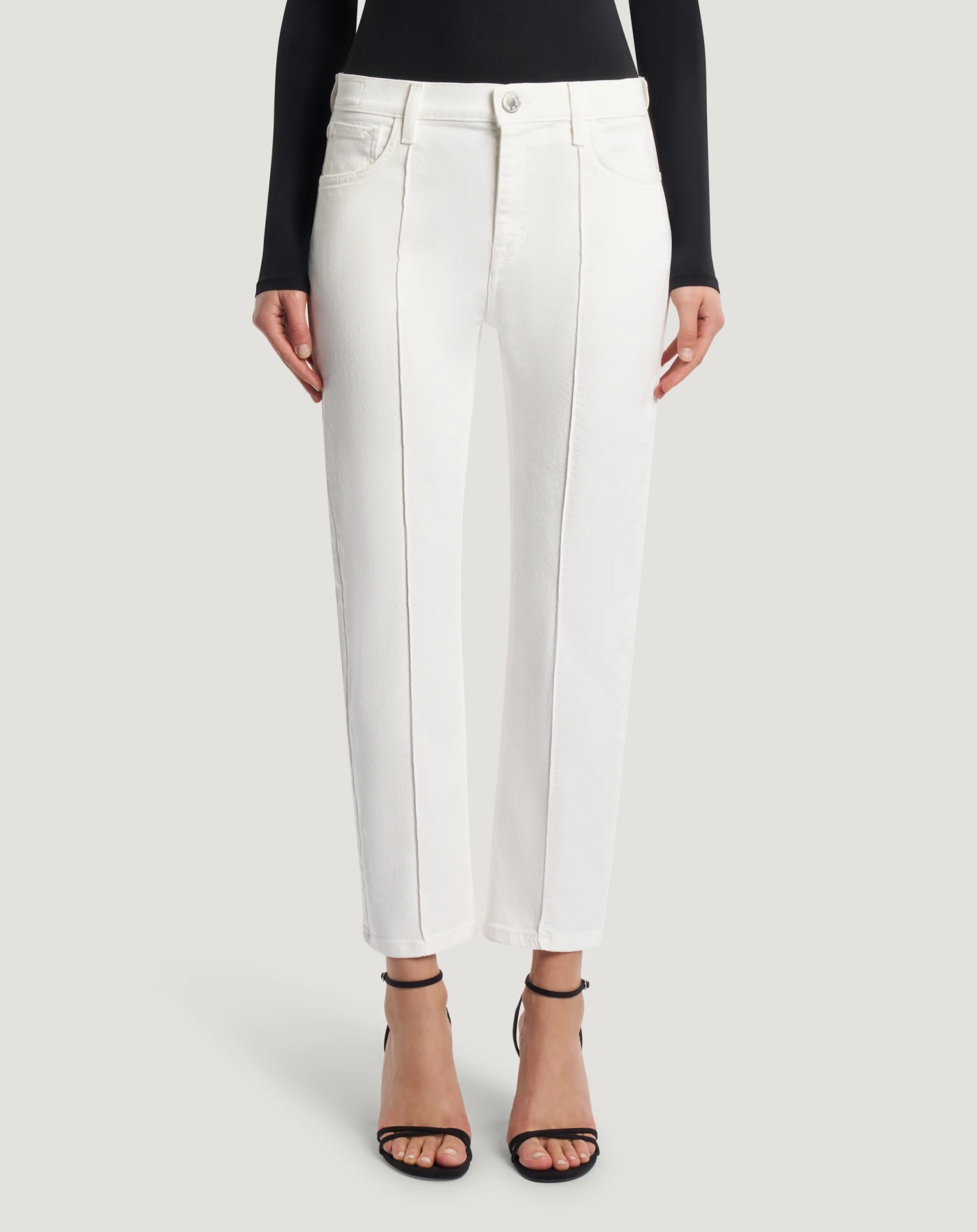 Trousers in stretch cotton bull denim, a compact and durable fabric that is perfect for your everyday style. Urban attitude and tailored design unite with central ribbing in a model for 24-hour looks.
