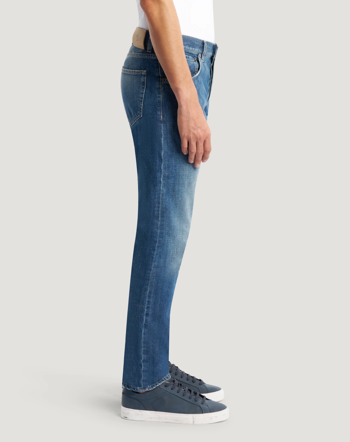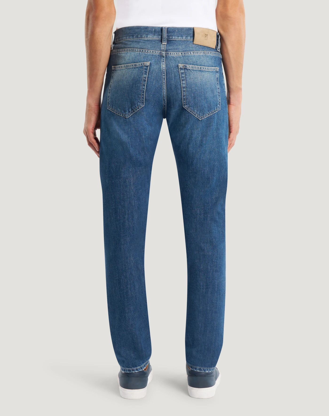 Jeans in cotton denim, a medium weight (11 oz), firm fabric for an all-seasons garment.With a straight, regular fit, they will give a contemporary urban touch to your everyday outfits.