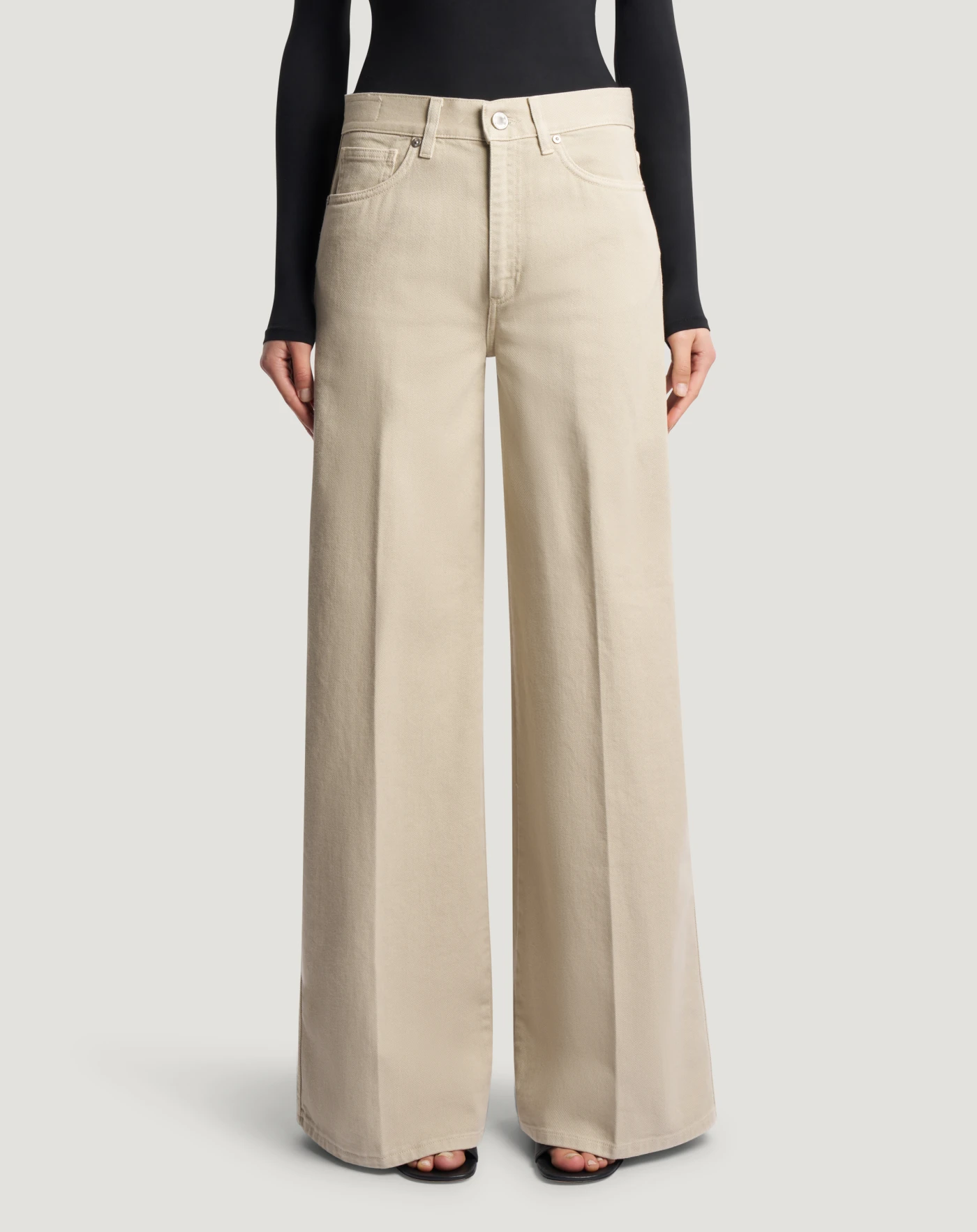 Jeans in cotton bull denim, a strong, stable fabric that is perfect when the need is for structure and performance but with a clean, minimal aspect. With a regular waist and wide fit, choose the light grey variant to complete your style with a modern twist.