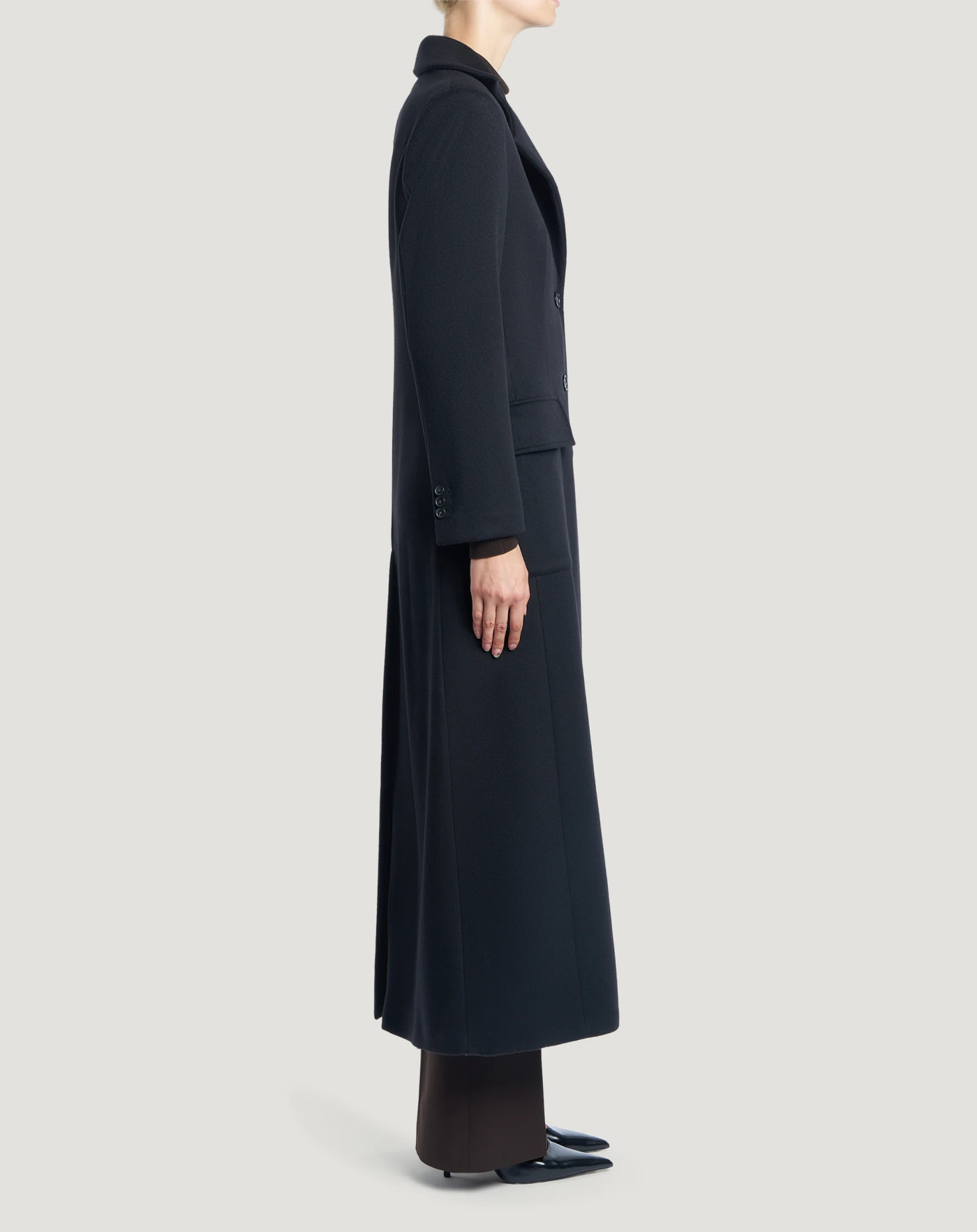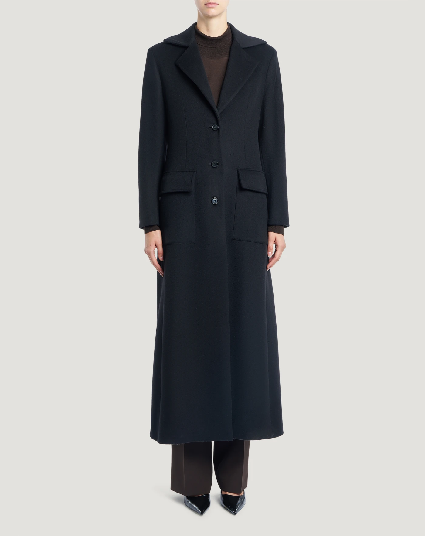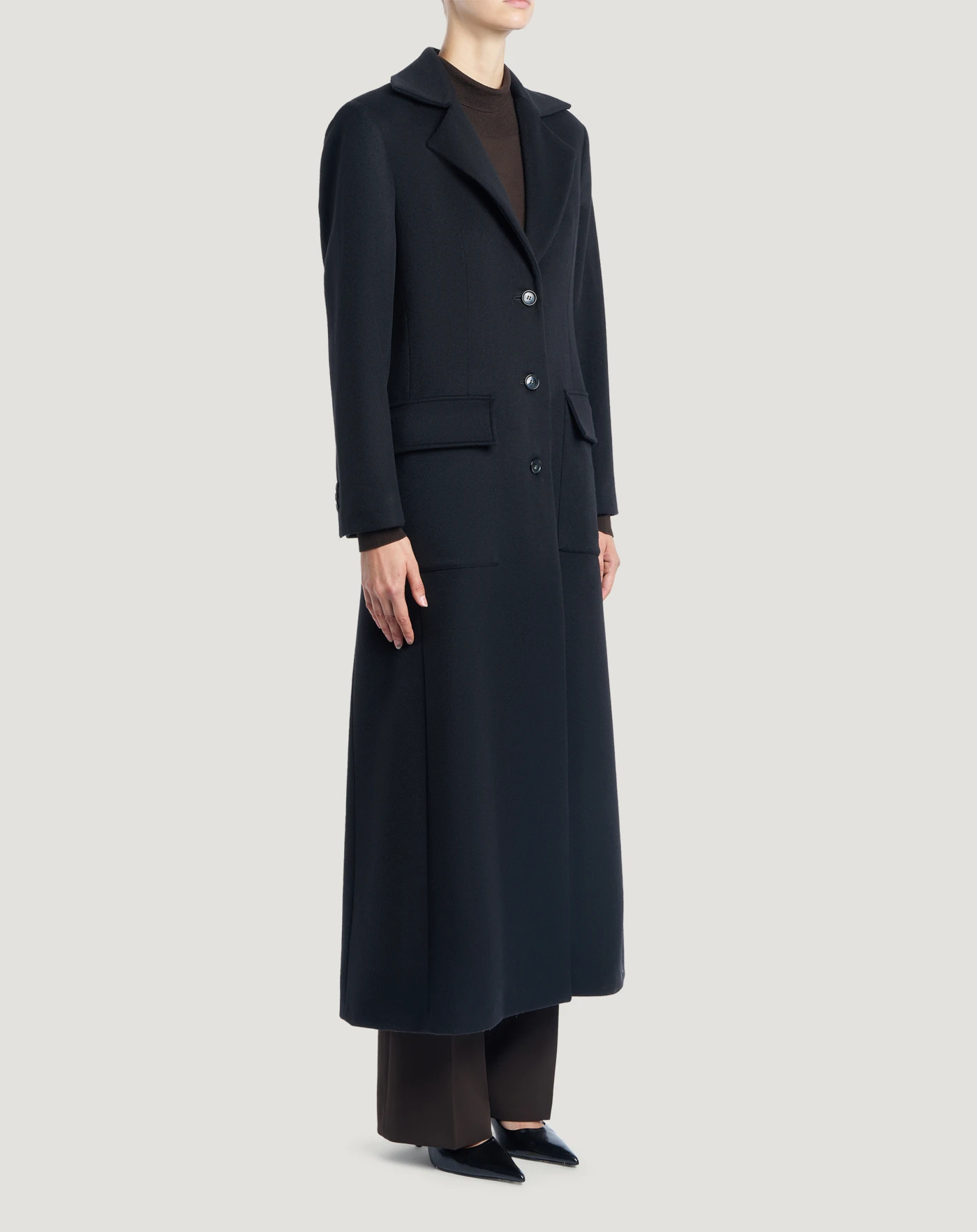 Coat in wool and cashmere drap, a fine, warm and comfortable fabric.With a slim fit, wide lapels and three buttons, it will perfectly complement your formal and business looks. Choose the black variant for easy pairing.