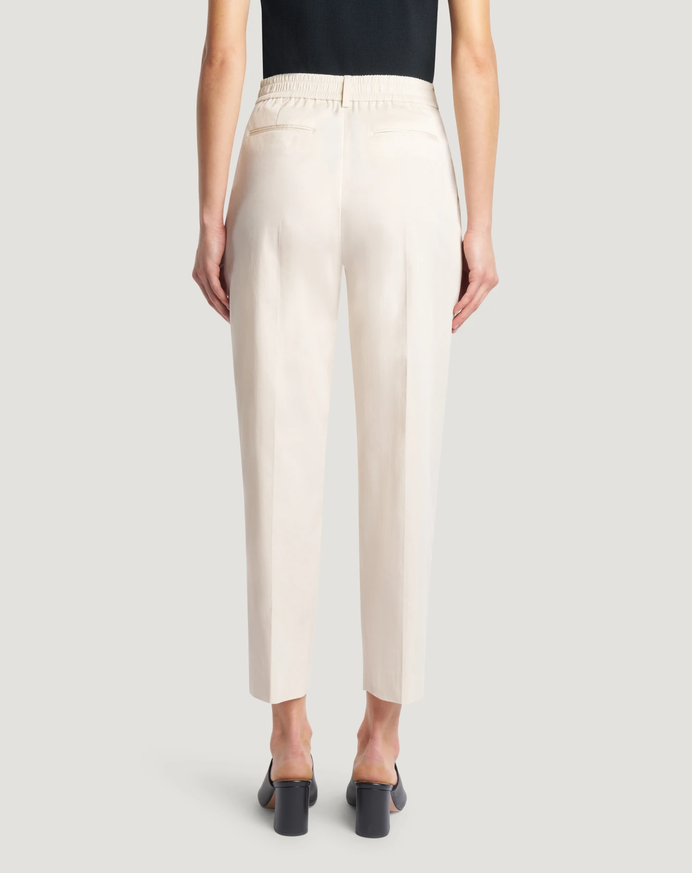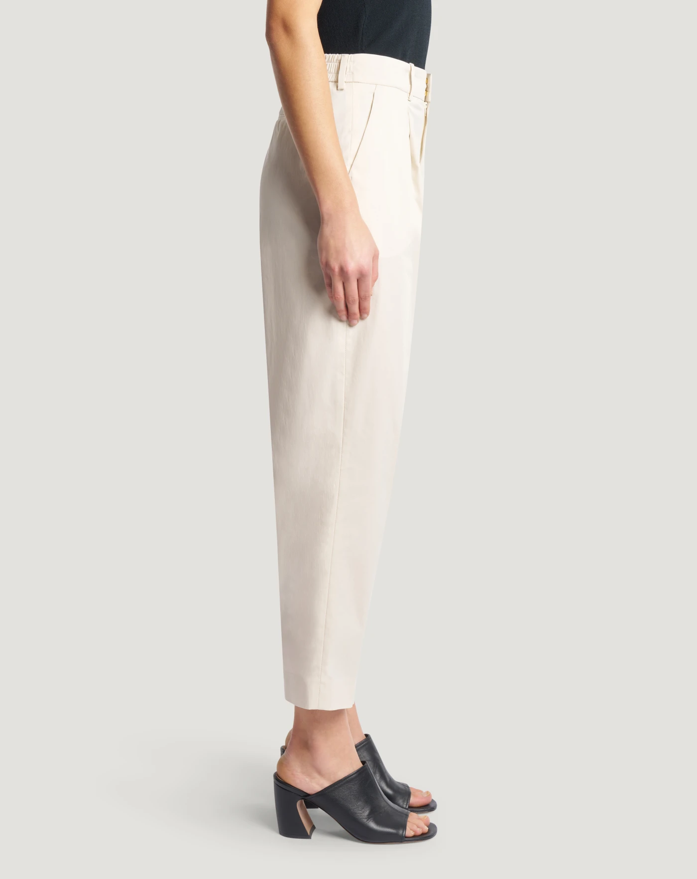 Trousers in superlight techno poplin, a fabric with a modern look that is breathable, durable and has an urban attitude. With ankle length carrot fit, choose them in white to give your style a bright note.