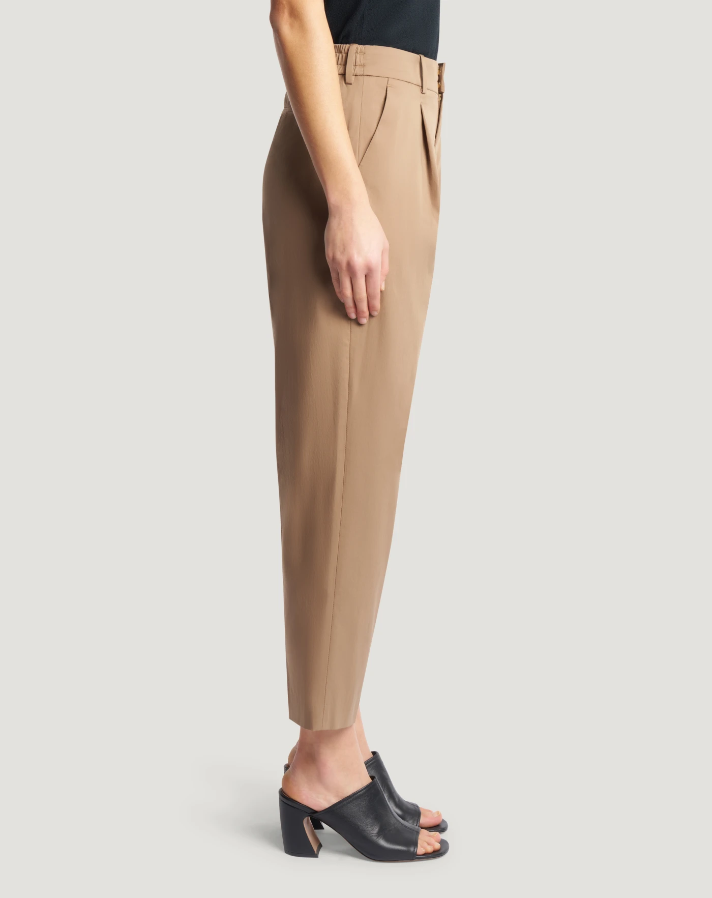 Trousers in superlight techno poplin, a fabric with a modern look that is breathable, durable and has an urban attitude. With ankle length carrot fit, choose them in rope to complete your elegant and casual looks.