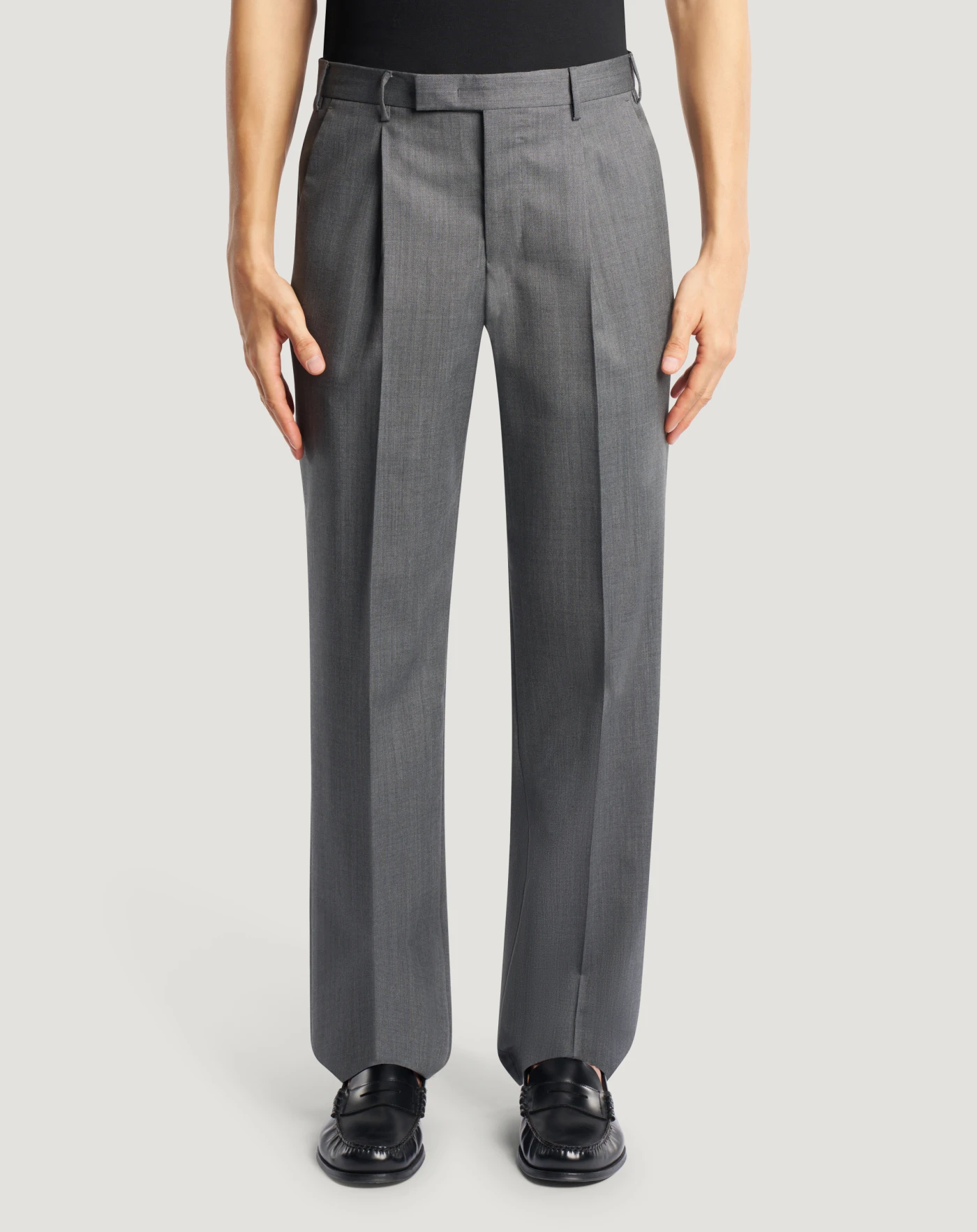 Trousers in high-quality pure wool in a classic plain weave that guarantees a clean, balanced and timeless look. They have a straight fit with a pleat at the front, perfect for completing your formal and casual looks. Pair them with the matching jacket.