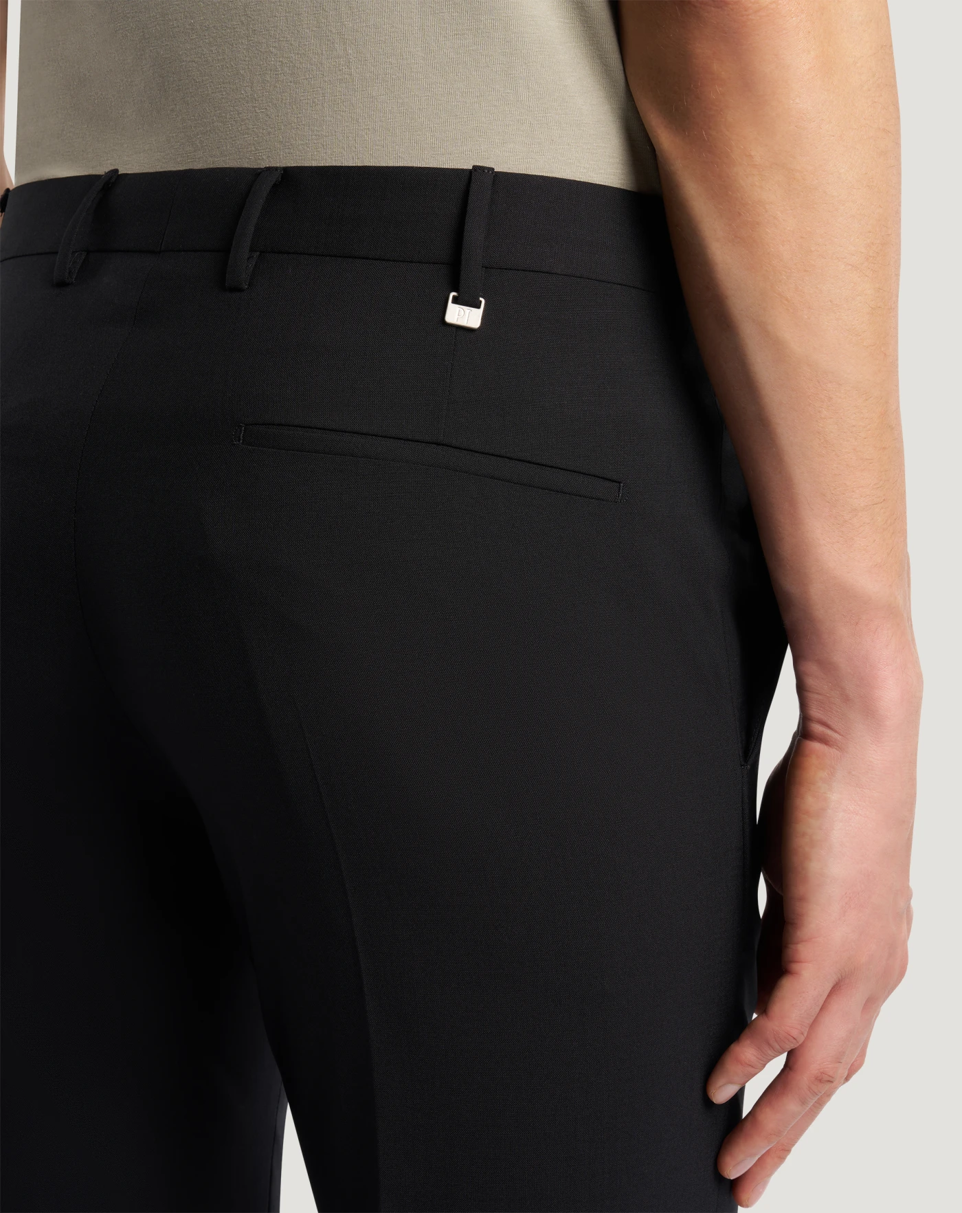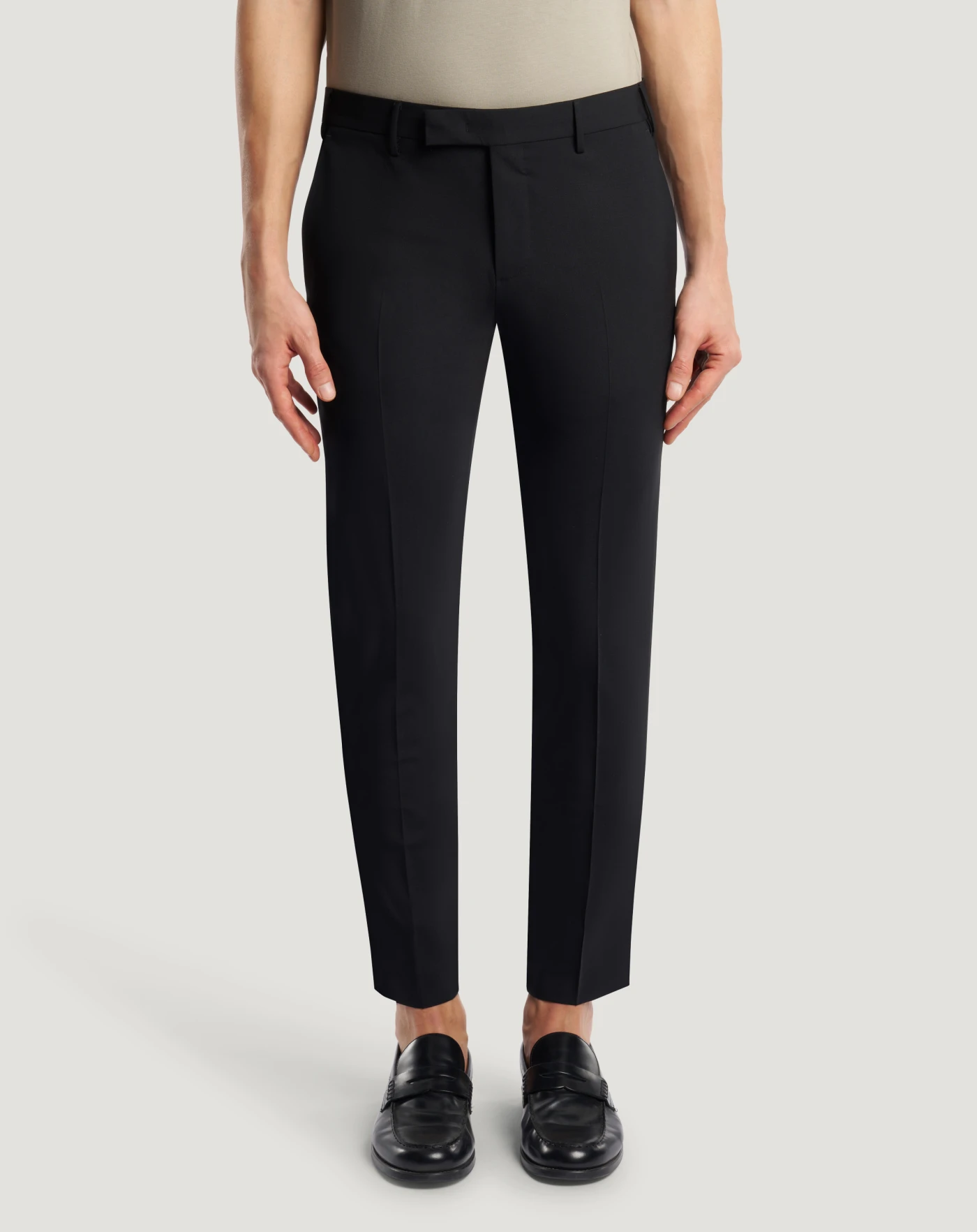 Trousers in tropical bi-stretch virgin wool, a fresh plain weave fabric ideal for the season.With a smooth front and skinny fit, these ankle-length trousers feature a simple, tailored design. Choose the black version to pair with the matching jacket.