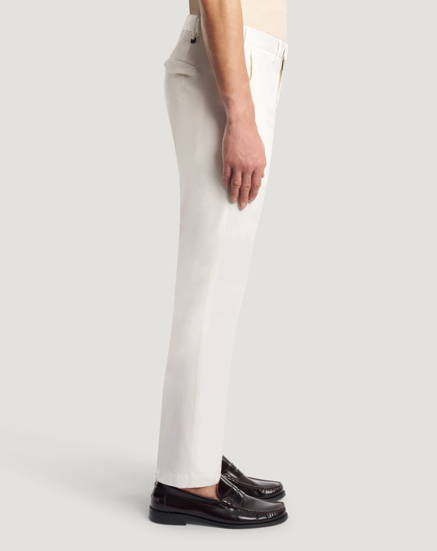 Trousers in stretch cotton gabardine, a soft, durable and easy-to-pair everyday fabric. They have a smooth front, side pockets and a super slim fit. In white to create refined and characterful looks.