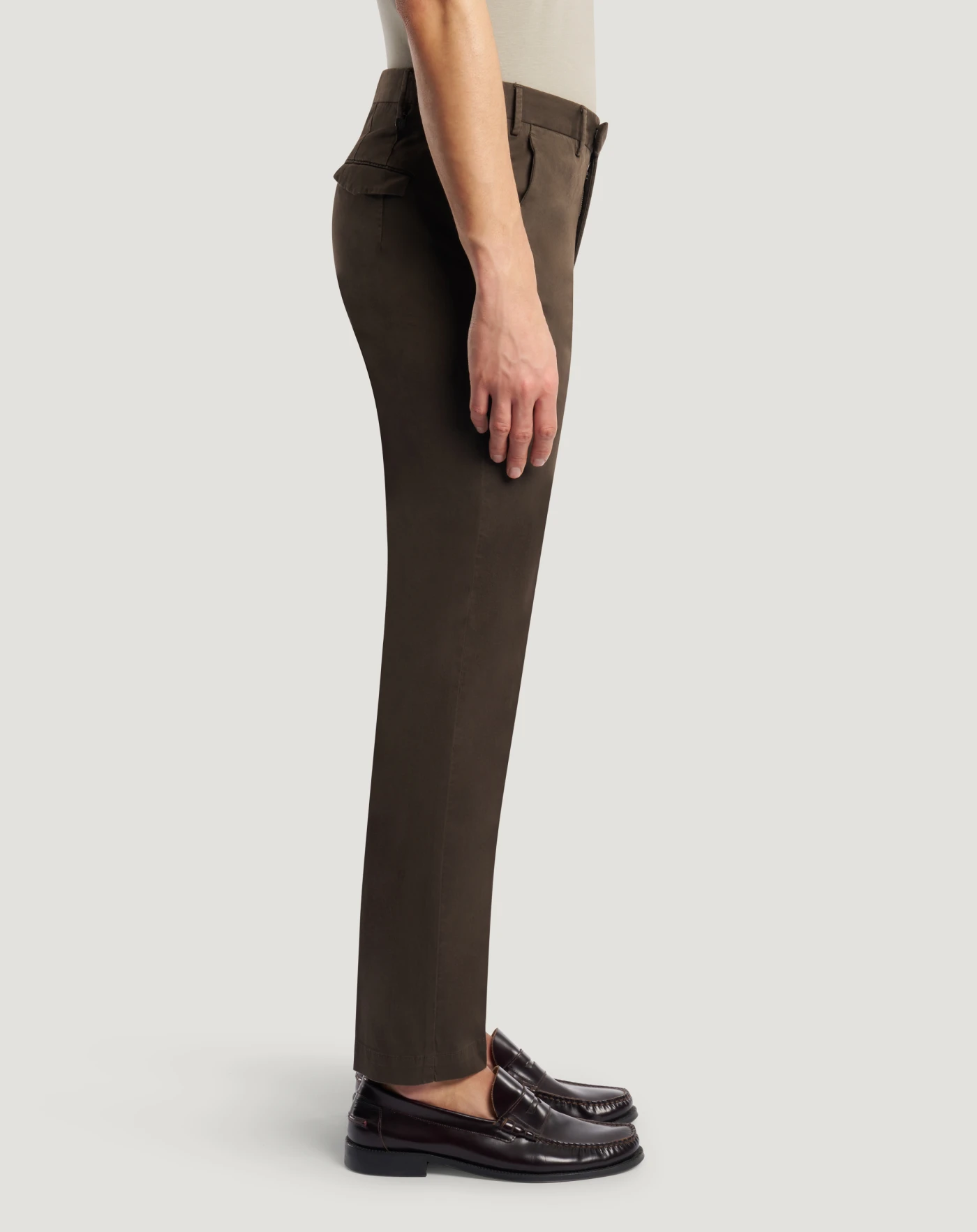 Trousers in stretch cotton gabardine, a soft, durable and easy-to-pair everyday fabric. They have a smooth front, side pockets and a super slim fit. The brown variant will add an urban touch to your style.