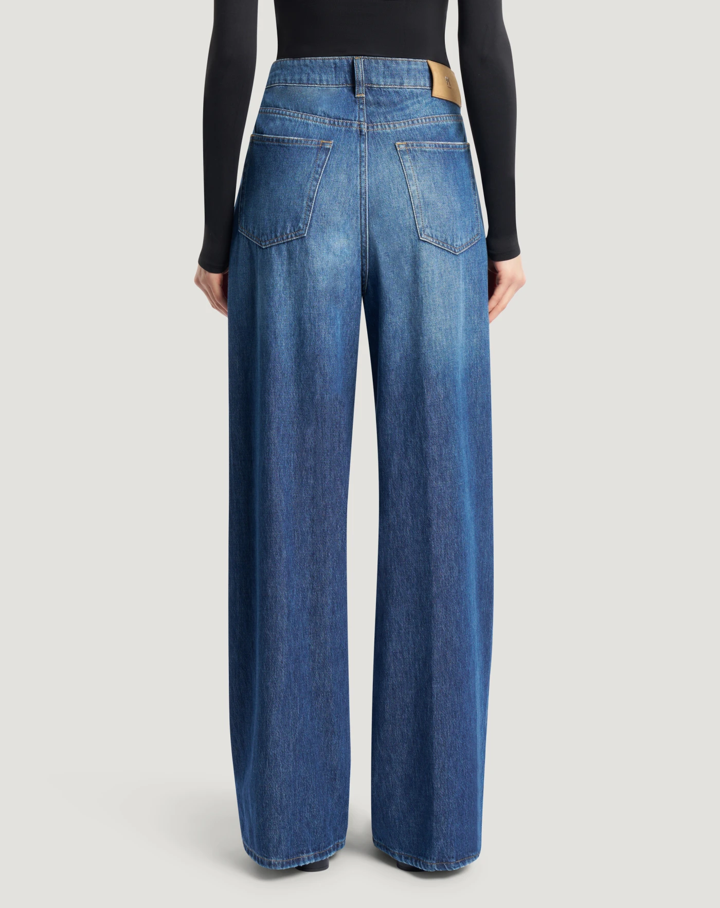 Jeans in cotton denim, a firm medium weight (10 oz) fabric featuring a wash with fading and whiskering at the front. With a low waist and boyfriend fit, they have a unique character that will complement your style with a contemporary touch.