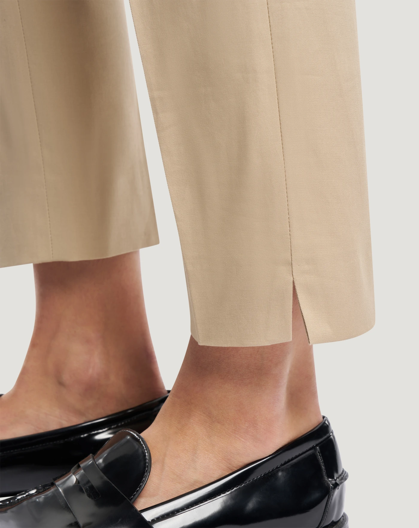 Trousers in stretch cotton gabardine, an elegant yet durable fabric that is perfect for versatile looks with a clean, contemporary style. Slim fit with slits at the hem, this essential model in beige will be a versatile base for completing myriad looks.