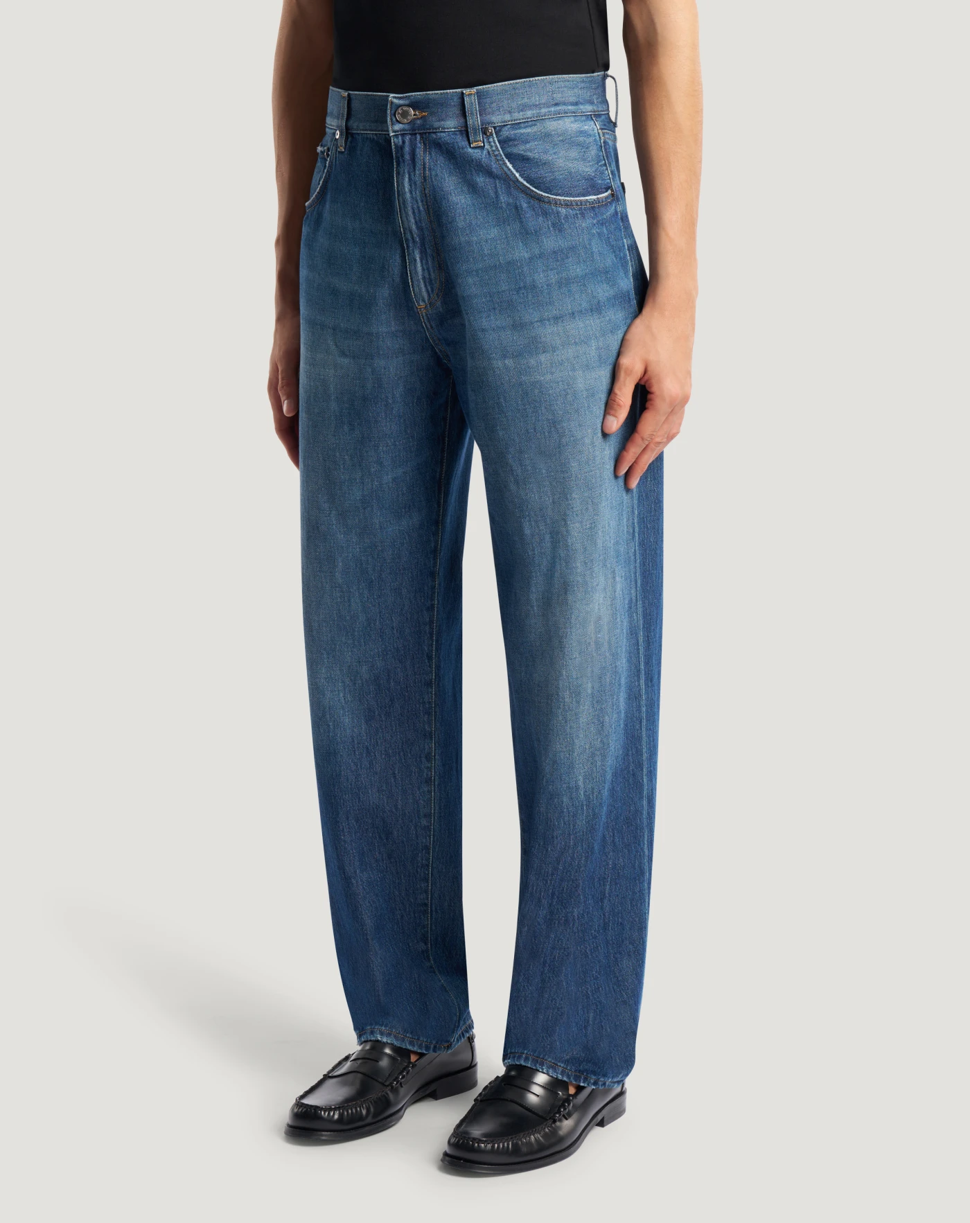 Jeans in cotton denim, a firm, medium weight (10 oz) fabric featuring a wash with slight fading at the front.With five pockets and a soft fit, they will give your everyday outfits a sophisticated, urban touch.