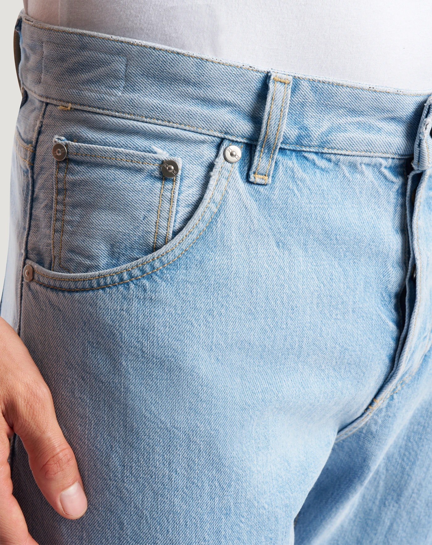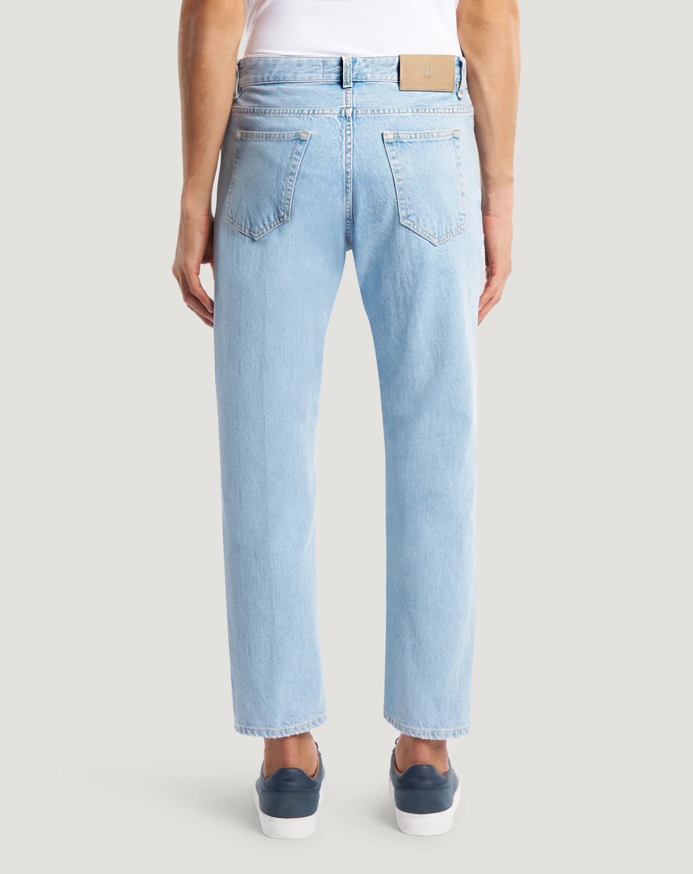 Jeans in cotton denim, a firm and structured fabric (13 oz) with a very light, even wash.With five pockets and a carrot fit, they have a contemporary urban look that immediately gives your outfit a trendy touch.