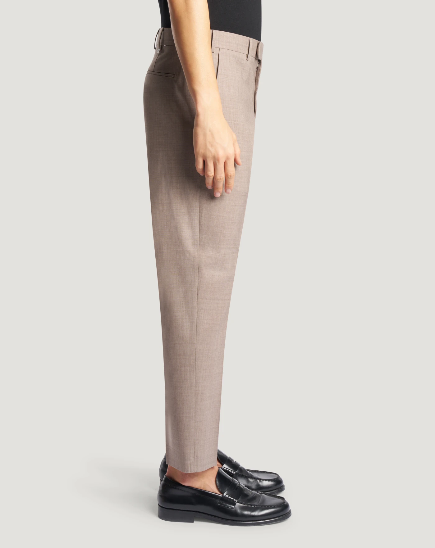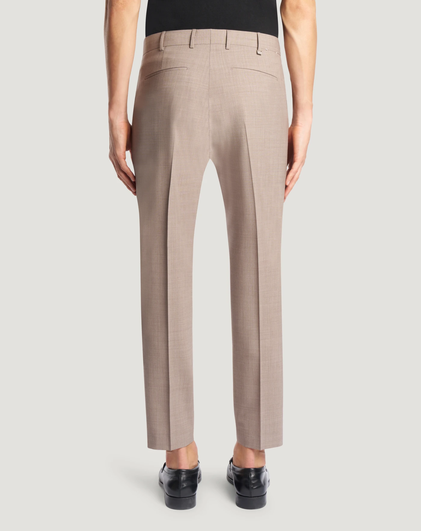 Trousers in tropical bi-stretch virgin wool, a cool plain weave fabric ideal for the season.Featuring a relaxed tailored design, these ankle-length trousers with a smooth front are perfect too add a casual touch to workwear or to complete your everyday style.