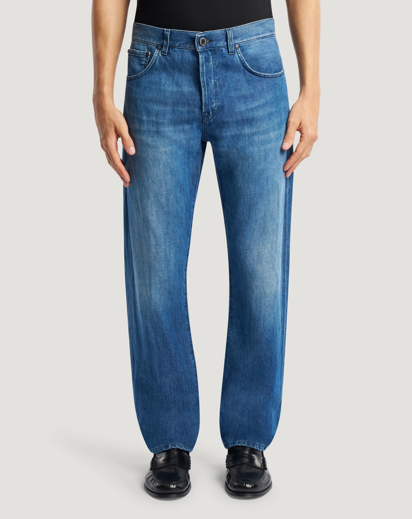 Jeans in lightweight denim made from a blend of cotton and linen that gives the fabric a natural look, a cool finish and superior breathability compared to traditional denim.With a straight, regular fit, their texture characterizes your style.