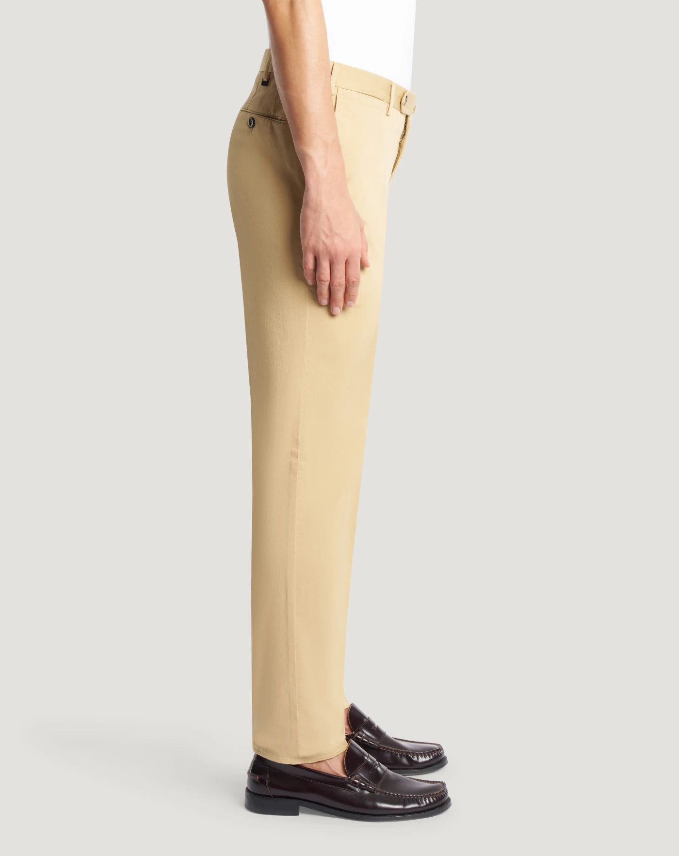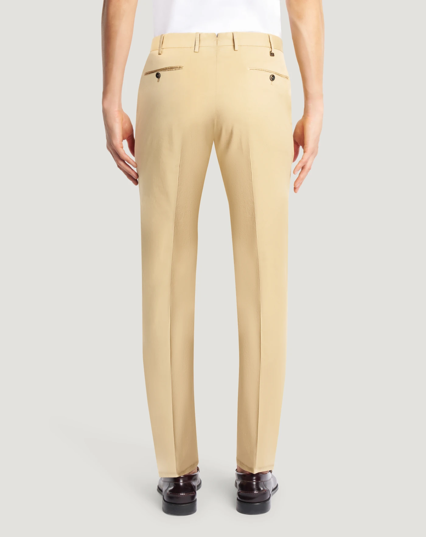 Trousers in stretch cotton gabardine, a soft, durable and easy-to-pair everyday fabric. The garment is delivered unstitched, so that it can be finished to suit your length and style through simple tailoring. In beige for a versatile everyday wardrobe.