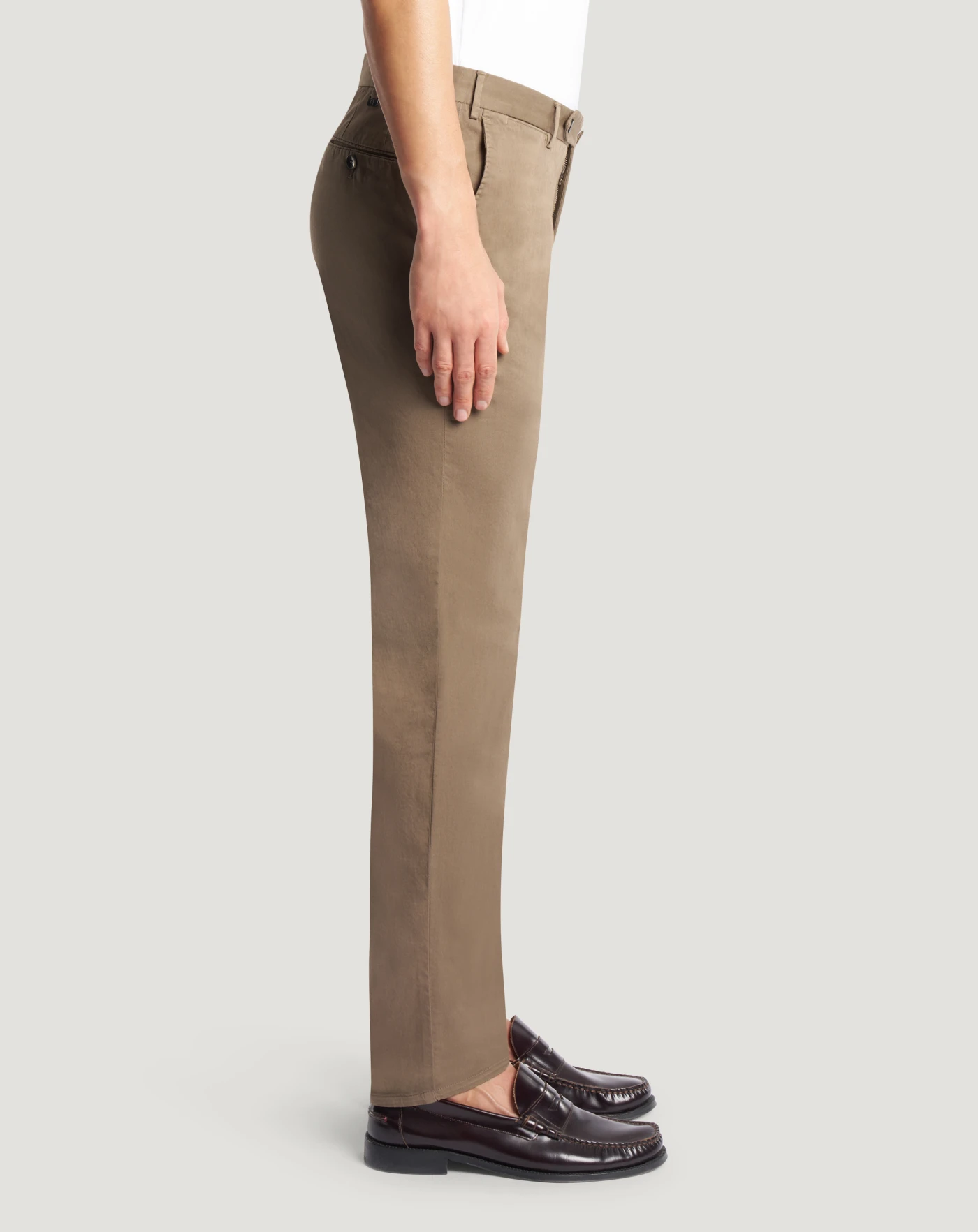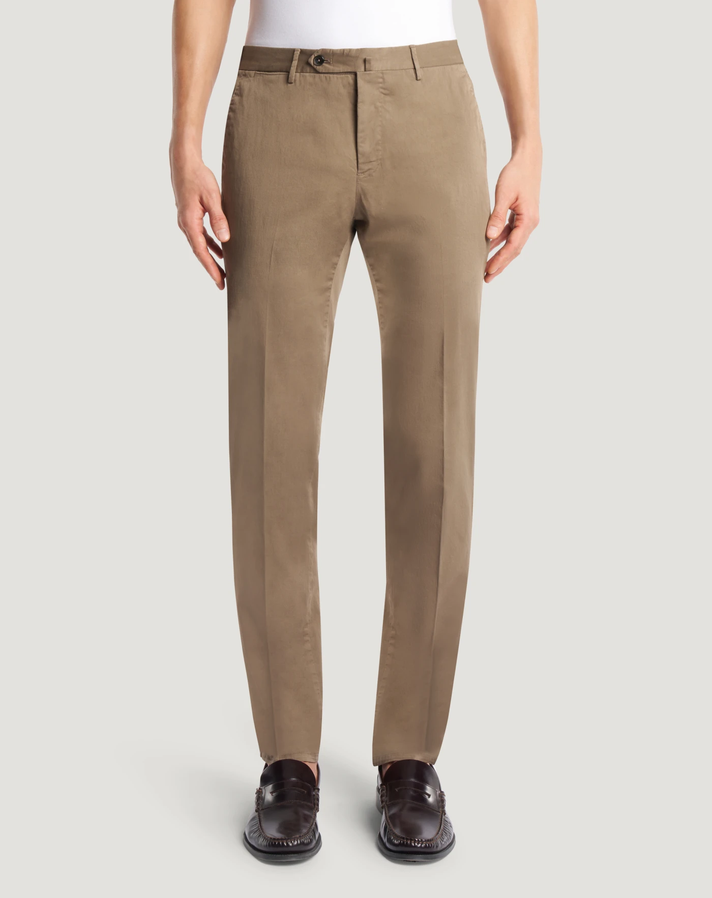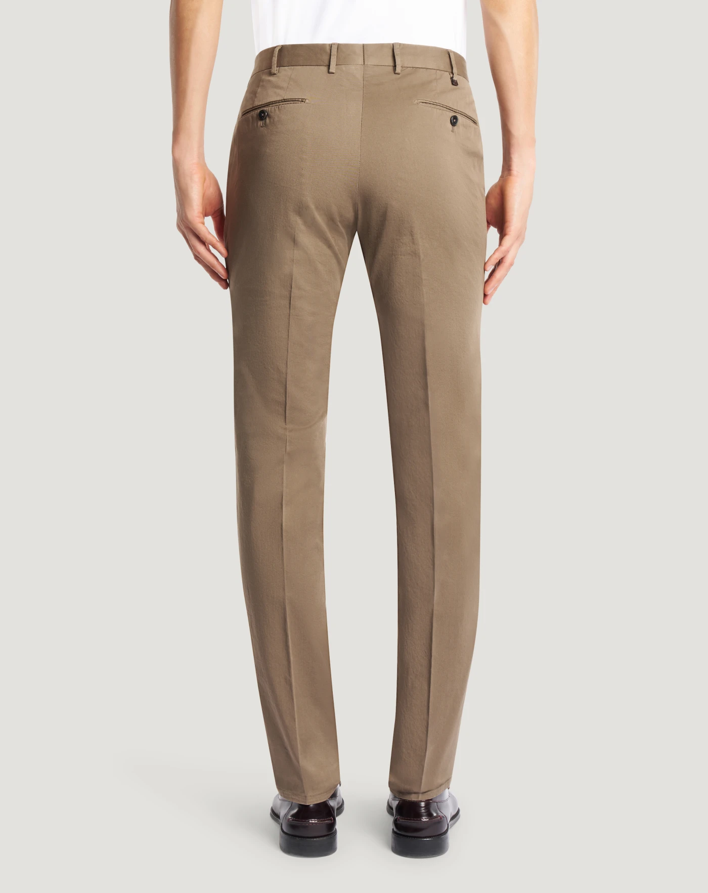 Trousers in stretch cotton gabardine, a soft, durable and easy-to-pair everyday fabric. The garment is delivered unstitched, so that it can be finished to suit your length and style through simple tailoring. In beige for a versatile everyday wardrobe.