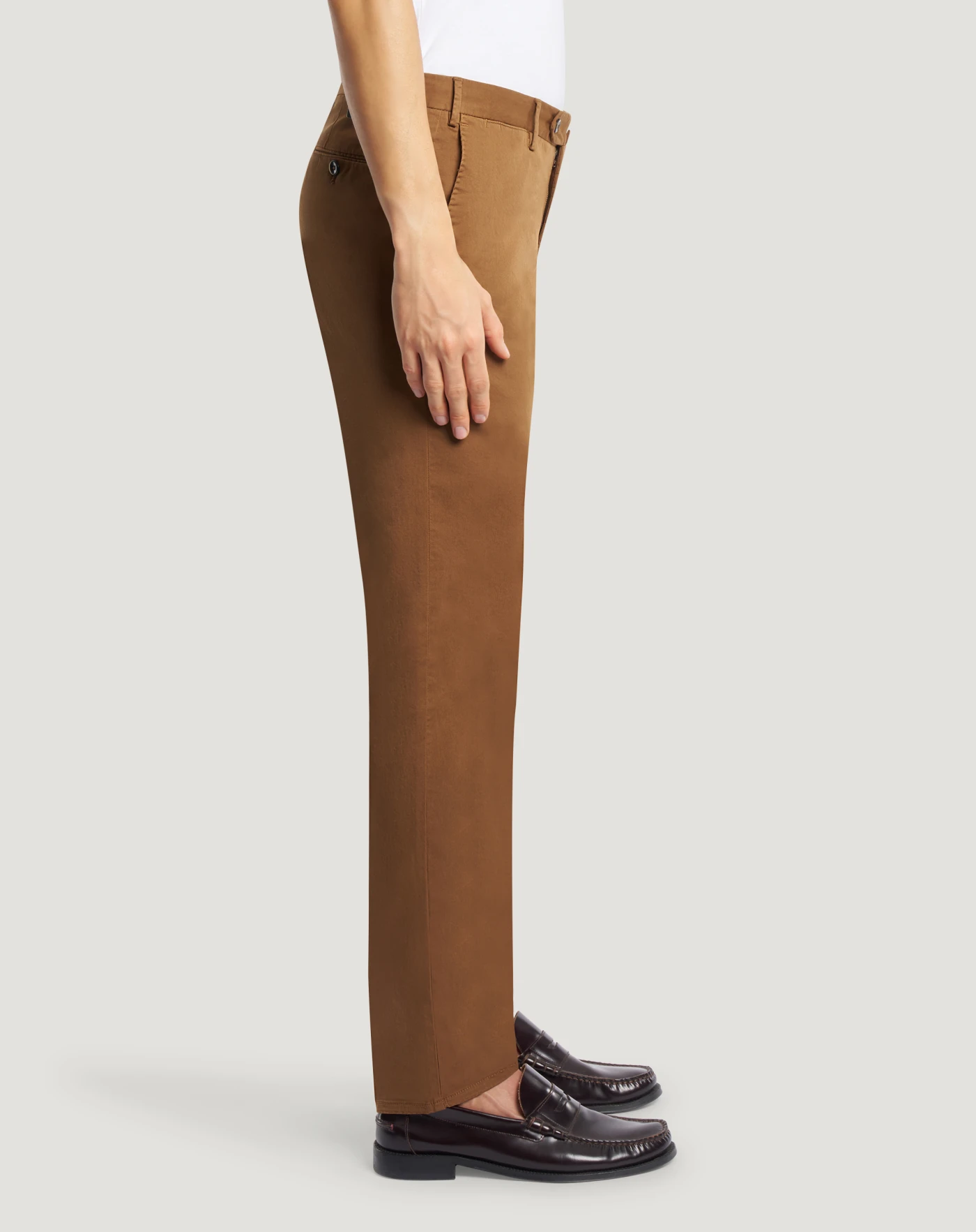 Trousers in stretch cotton gabardine, a soft, durable and easy-to-pair everyday fabric. The garment is delivered unstitched, so that it can be finished to suit your length and style through simple tailoring. In beige for a versatile everyday wardrobe.