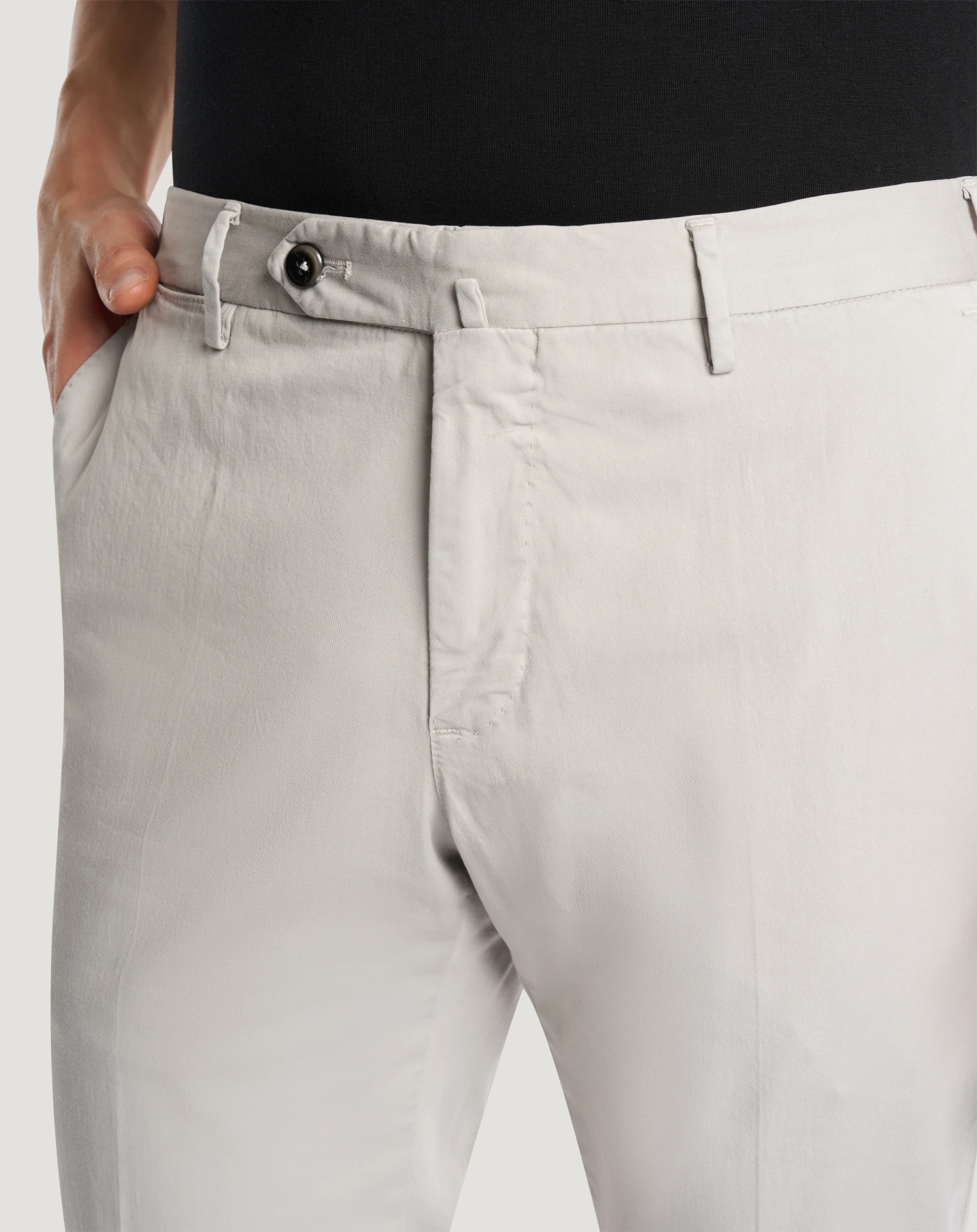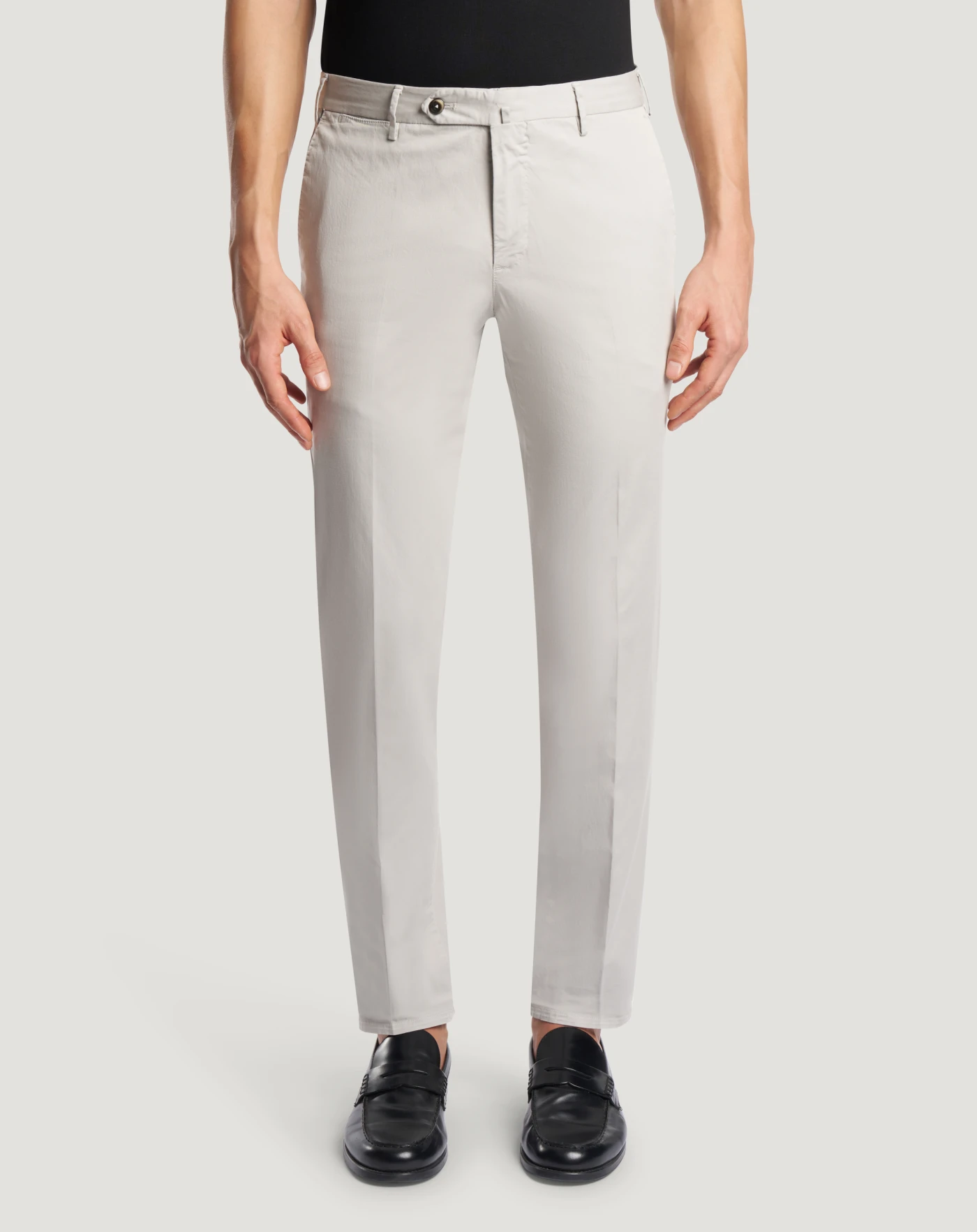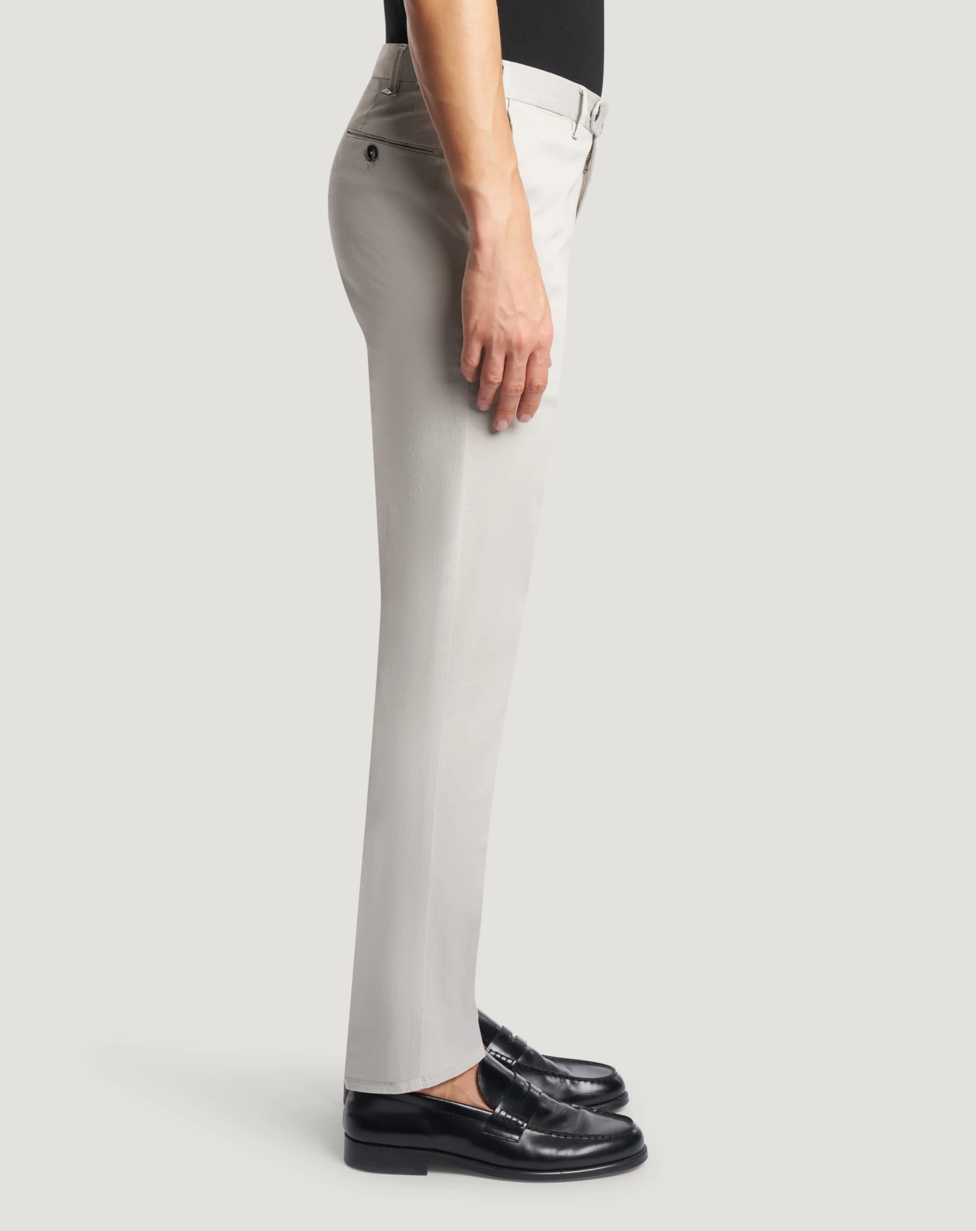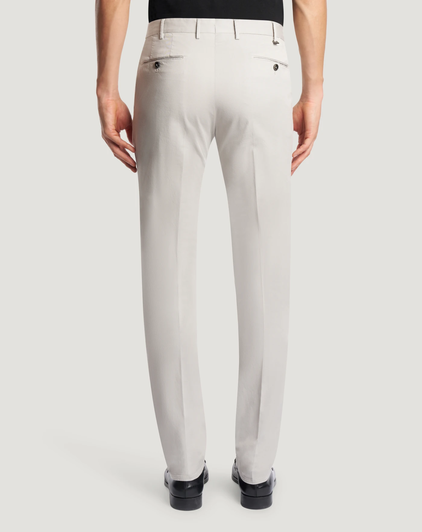Trousers in stretch cotton gabardine, a soft, durable and easy-to-pair everyday fabric. The garment is delivered unstitched, so that it can be finished to suit your length and style through simple tailoring. Choose grey for a look with contemporary touch.