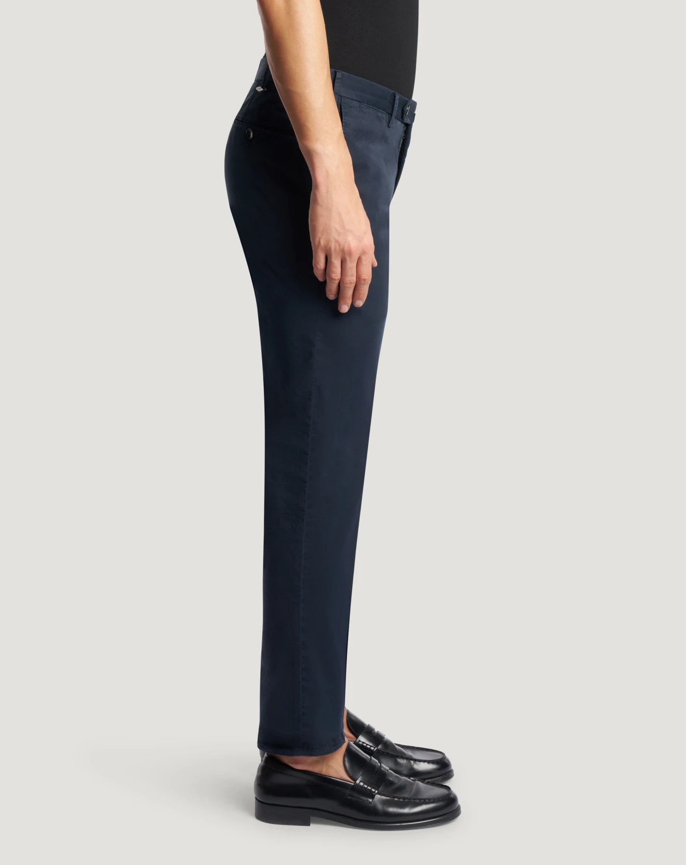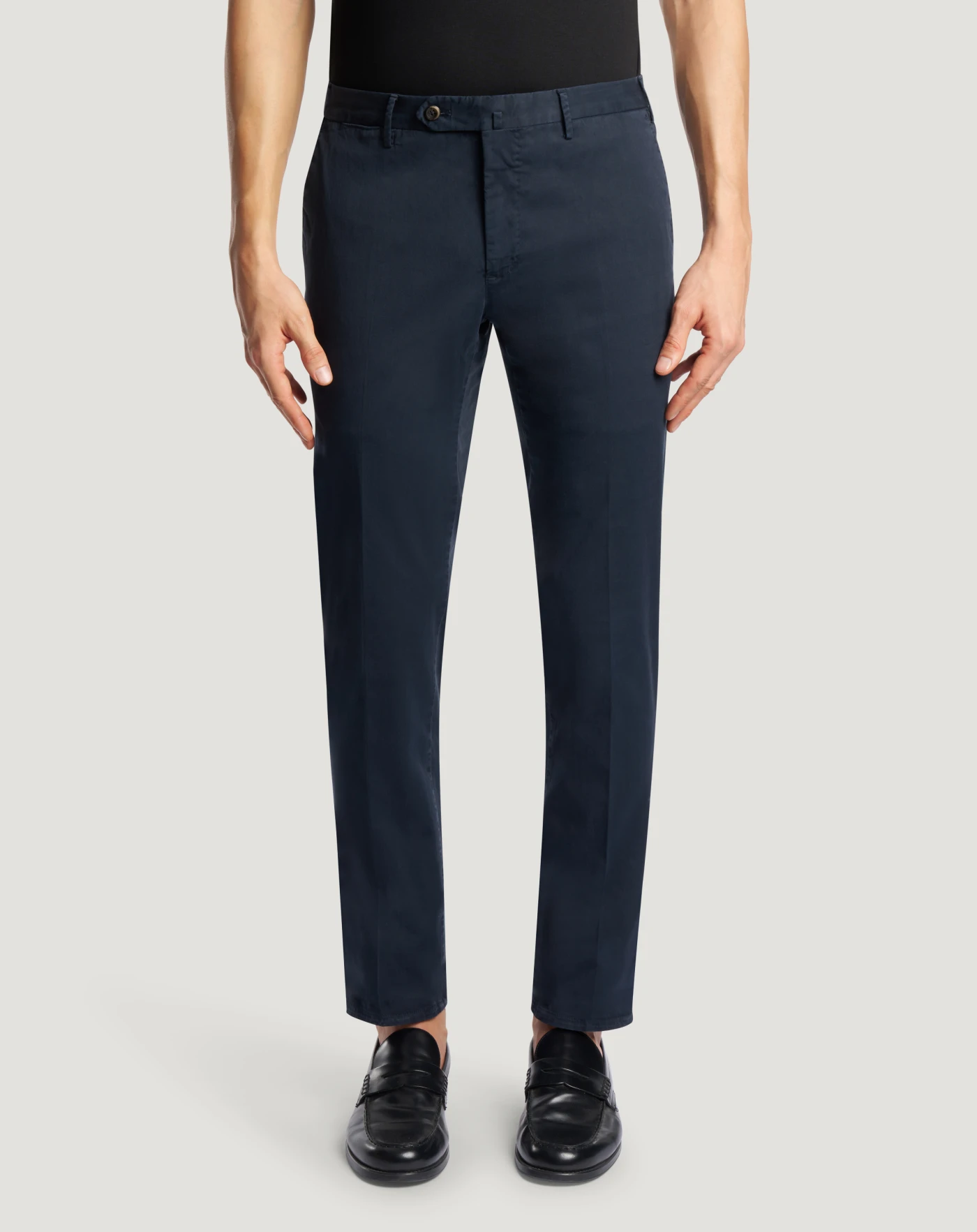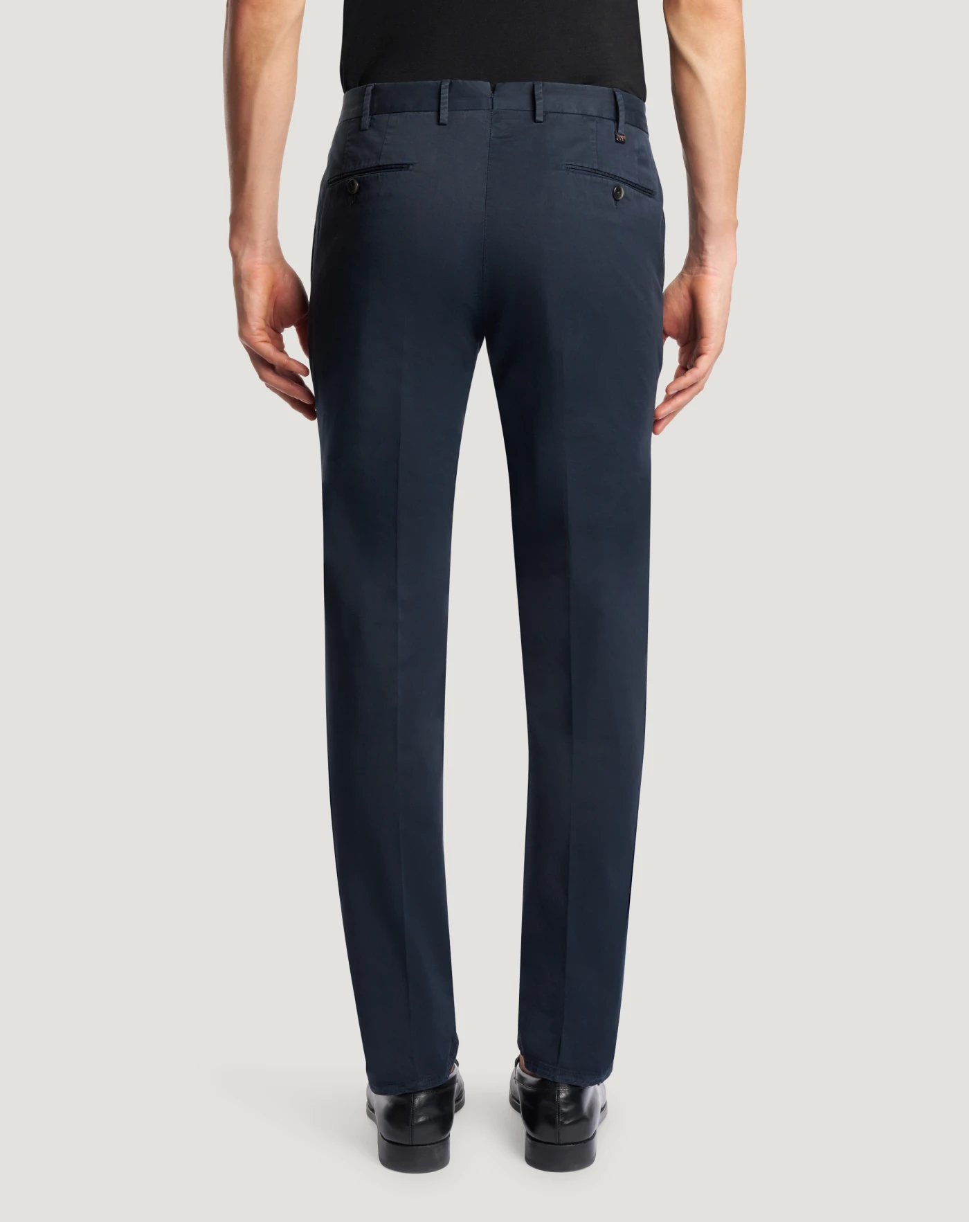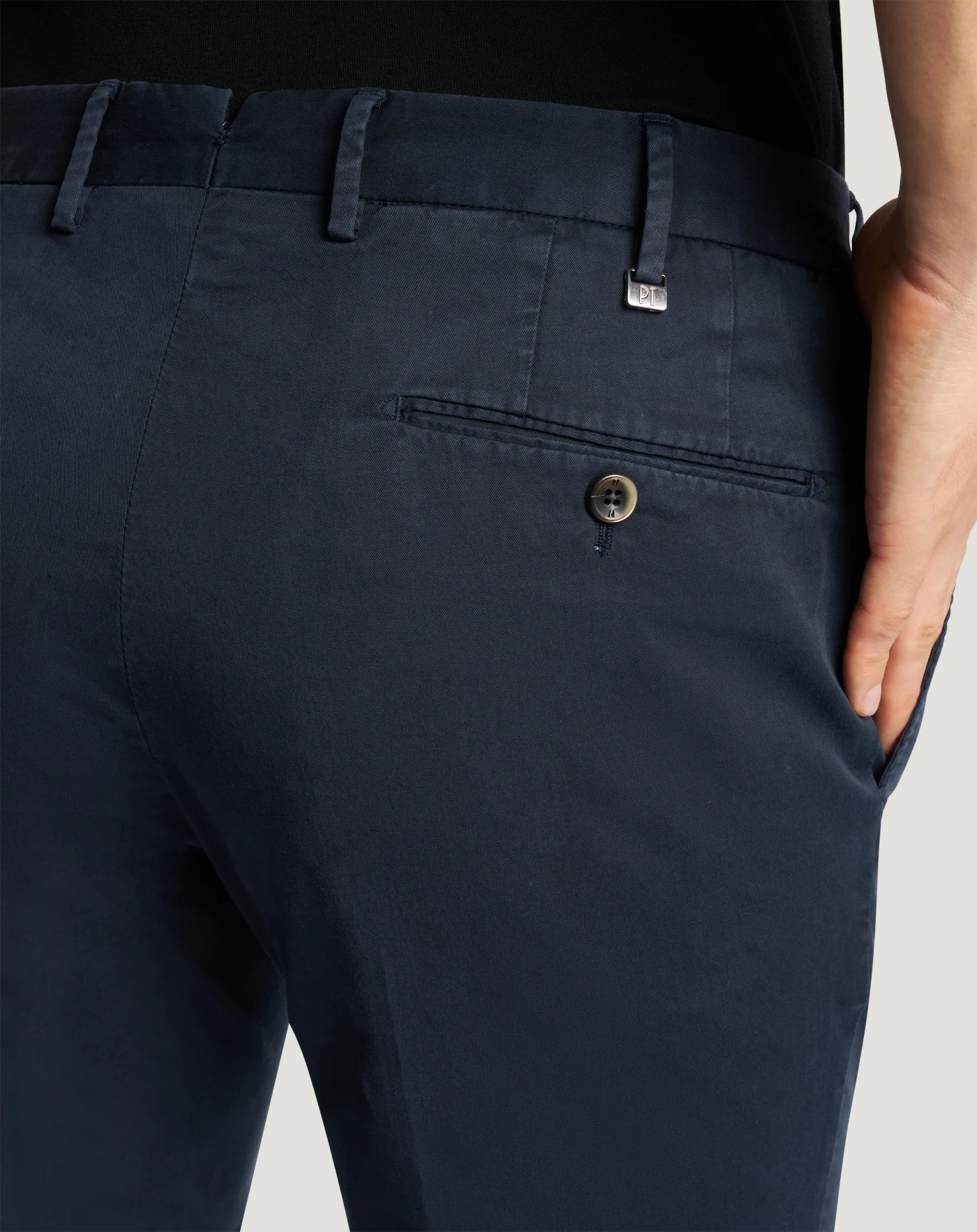 Trousers in stretch cotton gabardine, a soft, durable and easy-to-pair everyday fabric. The garment is delivered unstitched, so that it can be finished to suit your length and style through simple tailoring. The navy blue variant will be perfect for formal and office looks.