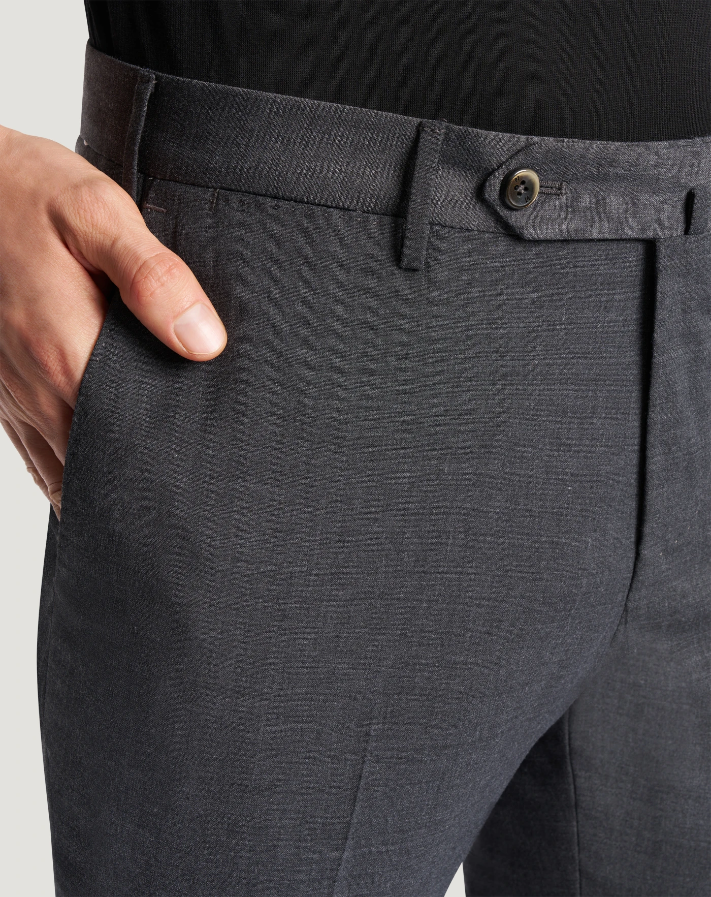 Trousers in a lightweight, modern techno fabric in plain weave that features elasticity and is completely washable in water without losing performance or appearance.The garment is delivered unstitched, so that it can be finished to suit your length and style through simple tailoring. The grey variant will complete your style with refined elegance.
