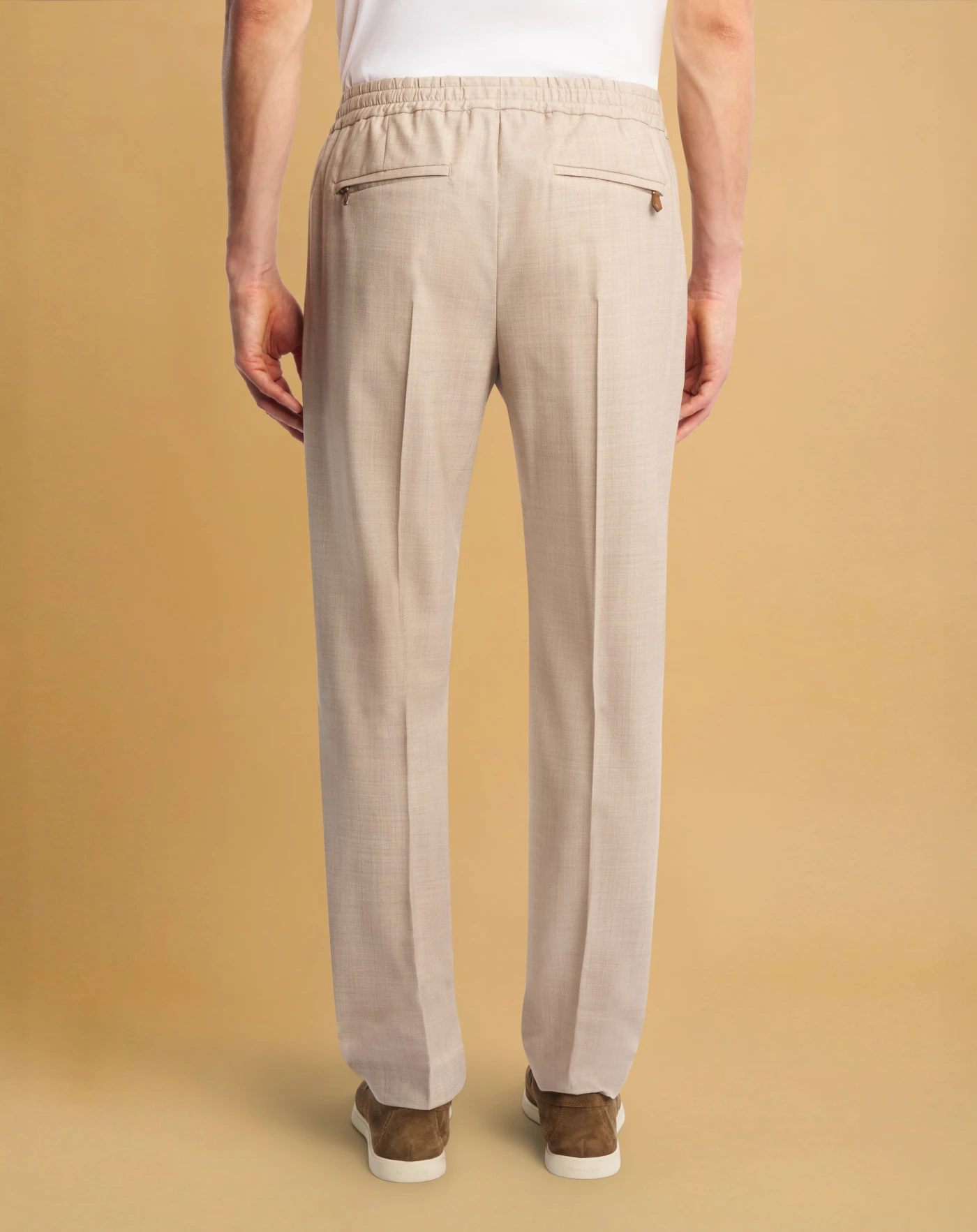 Trousers in a wool and silk blend, a fine fabric with a plain weave that combines sartorial elegance, comfort and lightness.Relaxed fit with an elasticated waist and drawstring. The beige variant will complete your off-duty looks with style.