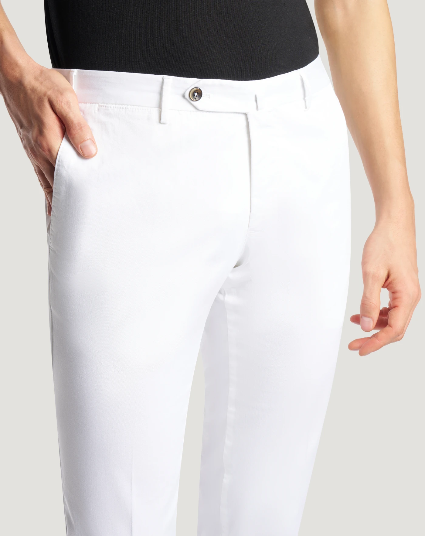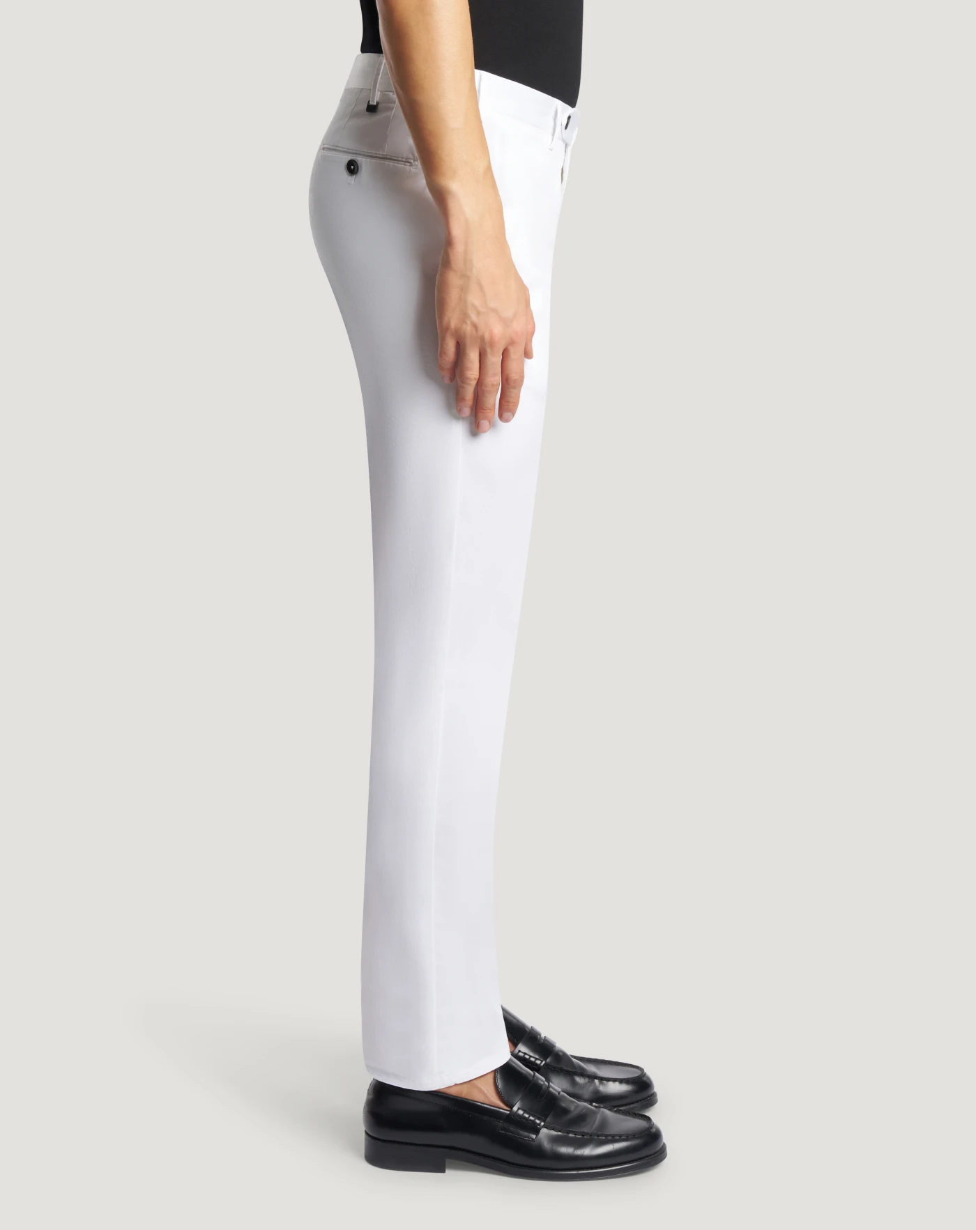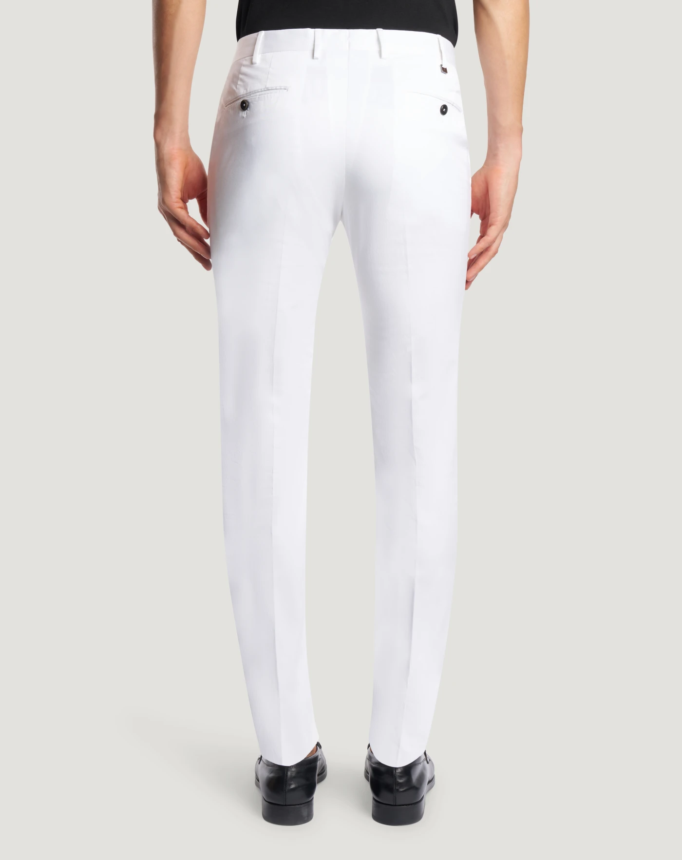 Trousers in stretch cotton gabardine, a soft, durable and easy-to-pair everyday fabric. The garment is delivered unstitched, so that it can be finished to suit your length and style through simple tailoring. The white variant makes for refined seasonal looks.