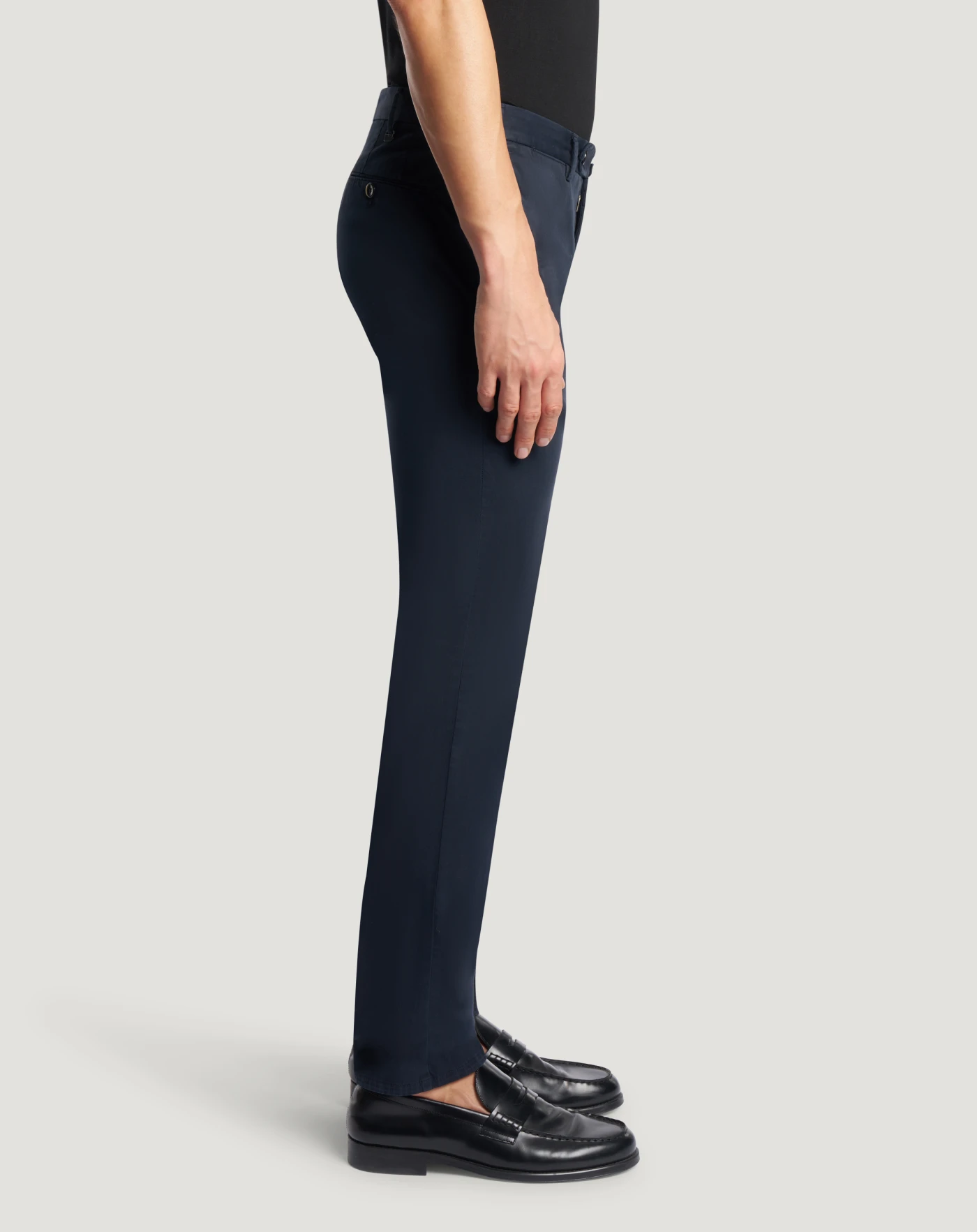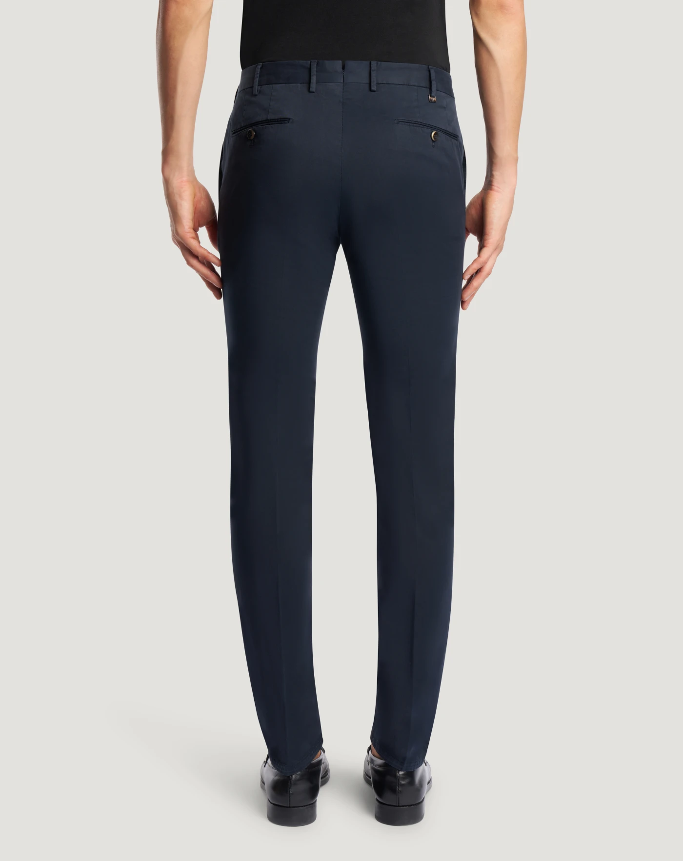 Trousers in stretch cotton gabardine, a soft, durable and easy-to-pair everyday fabric. The garment is delivered unstitched, so that it can be finished to suit your length and style through simple tailoring. In the navy variant for versatile everyday looks.