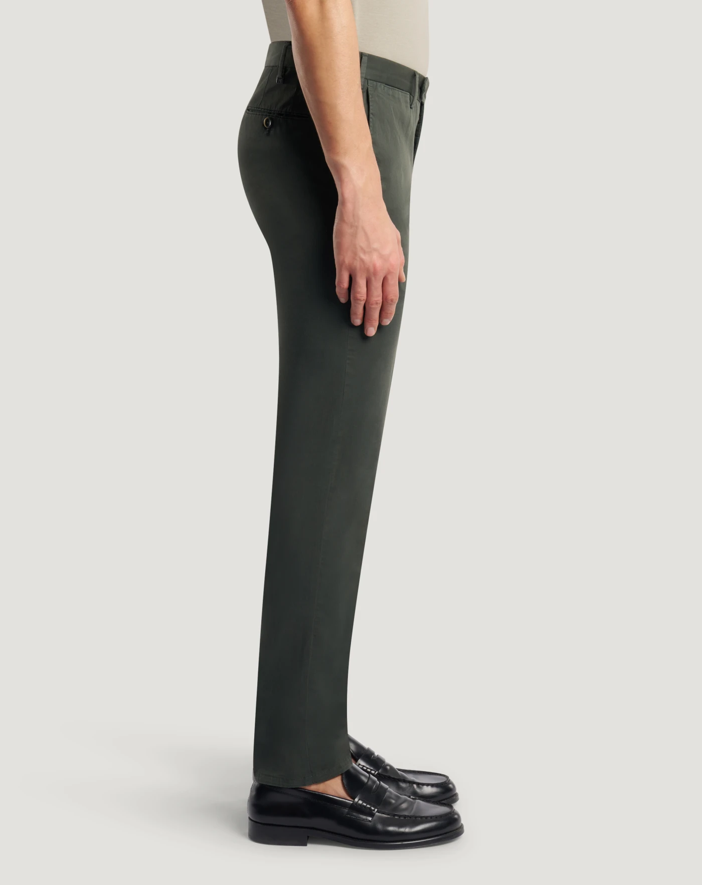 Trousers in stretch cotton gabardine, a soft, durable and easy-to-pair everyday fabric. The garment is delivered unstitched, so that it can be finished to suit your length and style through simple tailoring.