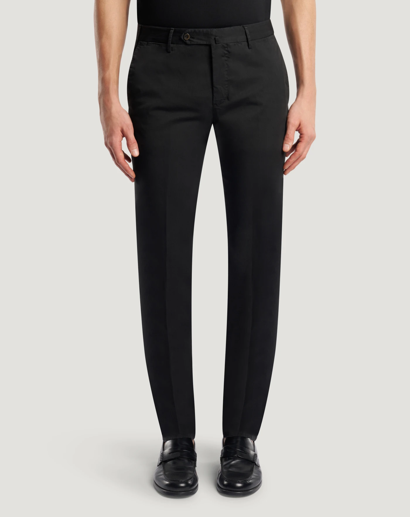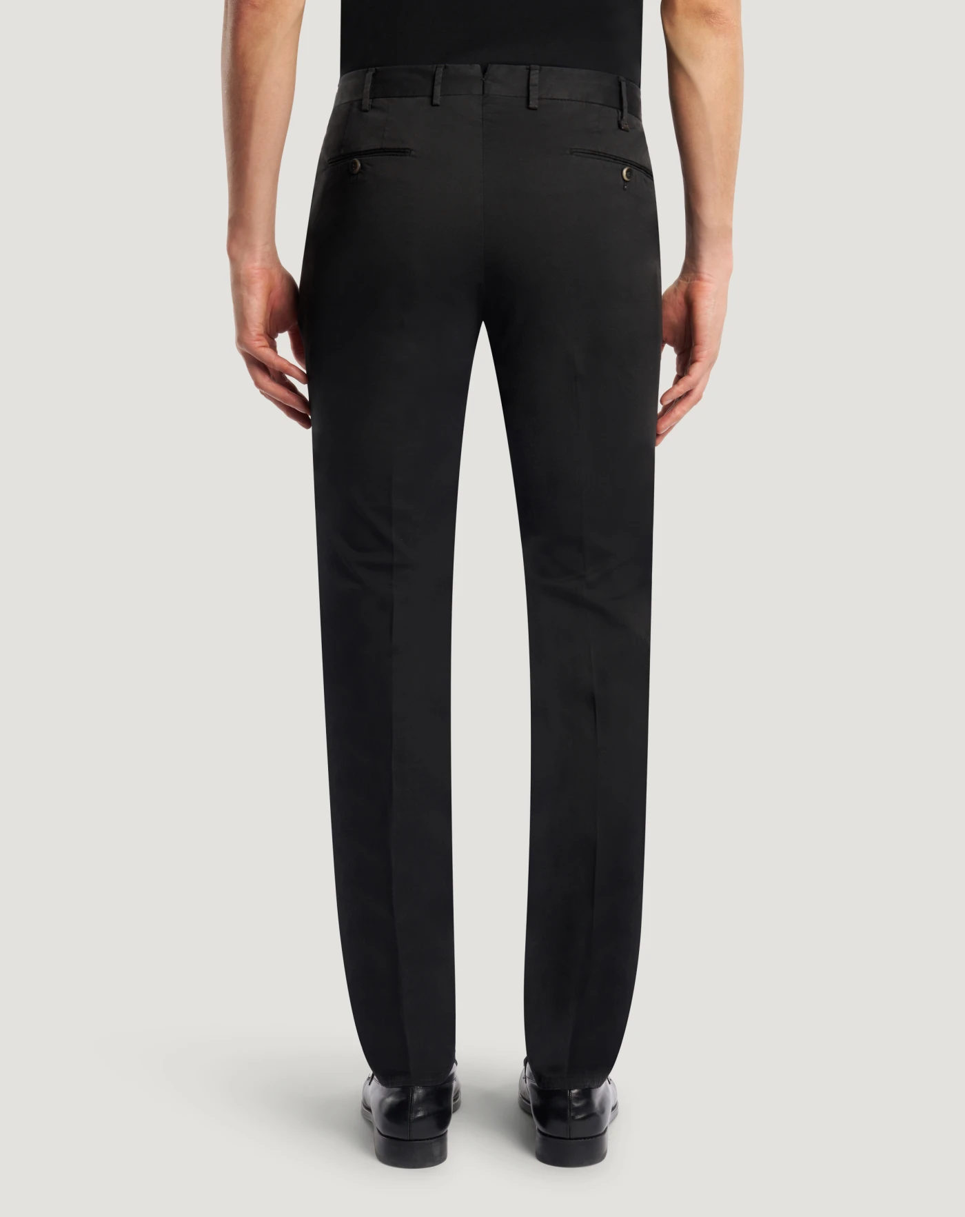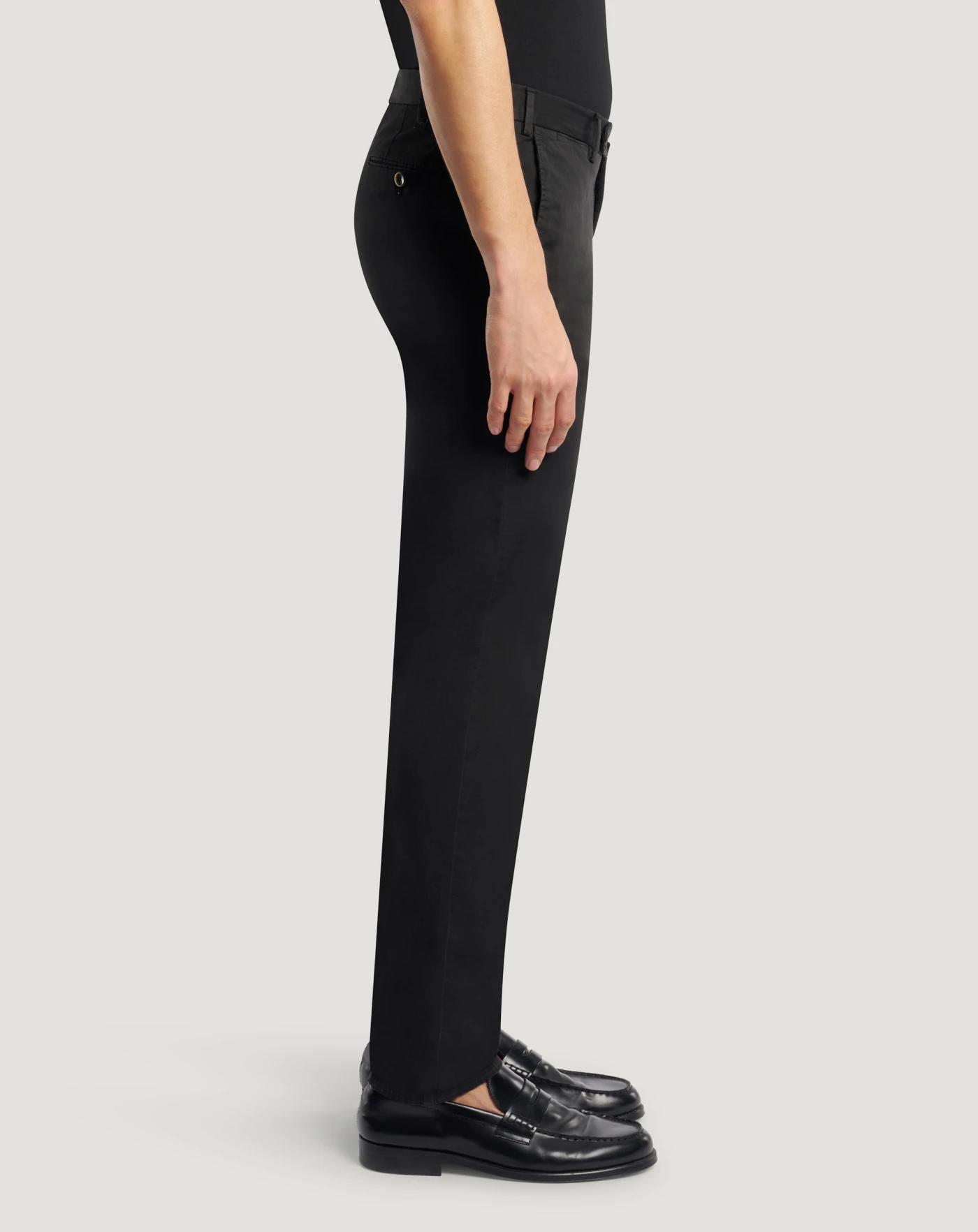 Trousers in stretch cotton gabardine, a soft, durable and easy-to-pair everyday fabric. The garment is delivered unstitched, so that it can be finished to suit your length and style through simple tailoring. In the black variant for versatile everyday looks.