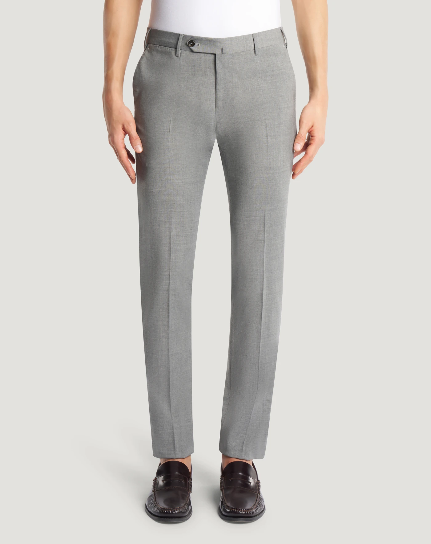 Trousers in a lightweight, modern techno fabric in plain weave that features elasticity and is completely washable in water without losing performance or appearance.The garment is delivered unstitched, so that it can be finished to suit your length and style through simple tailoring. Choose the blue-grey variant for delicate formal looks.