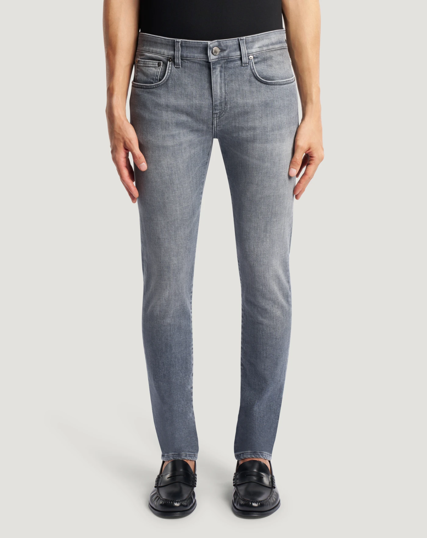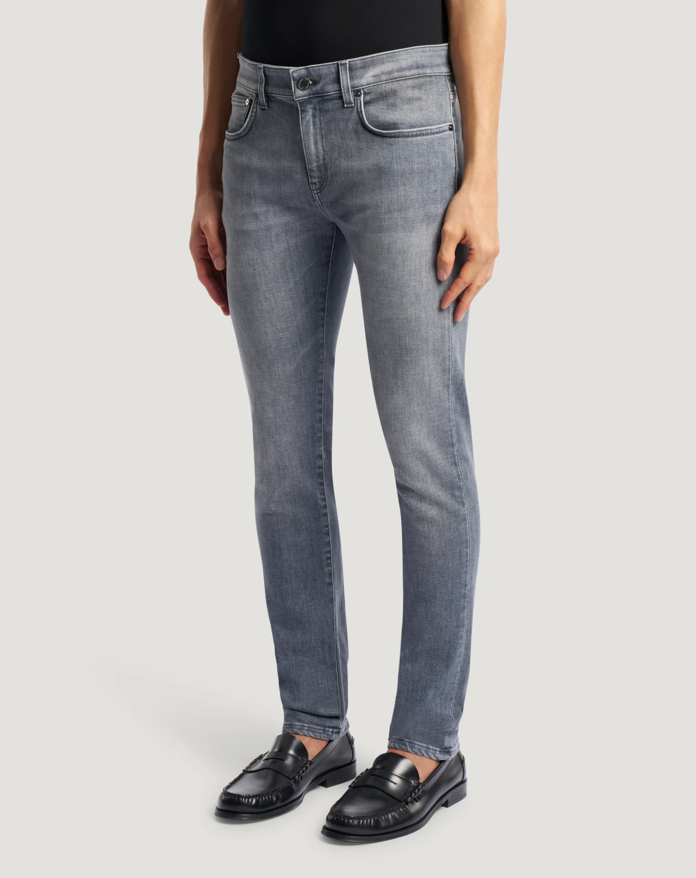 Jeans in responsible cotton denim, a sturdy, medium-heavy weight (13 oz) fabric with elasticity that ensures comfort without sacrificing structure. The neutral and sophisticated grey colour is easy to pair.With a regular waist and super slim fit, they instantly elevate your everyday style.