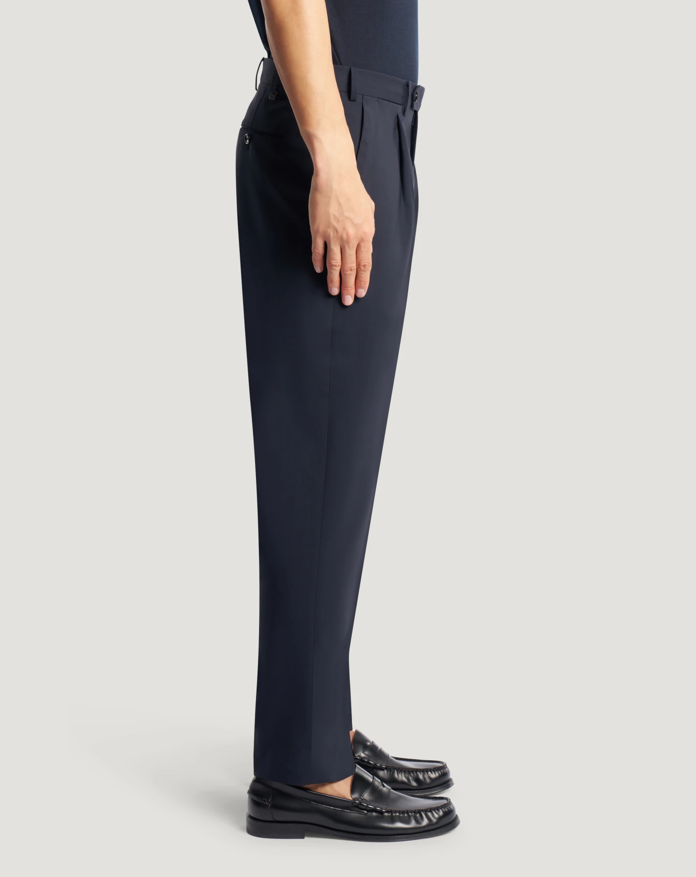 Trousers in superlight fine wool featuring a refined finish and natural comfort that makes them elegant and created for the warm season.The garment is delivered unstitched, so that it can be finished to suit your length and style through simple tailoring.With a pleat at the front and comfortable fit, choose blue to add a touch of elegance to your outfit.